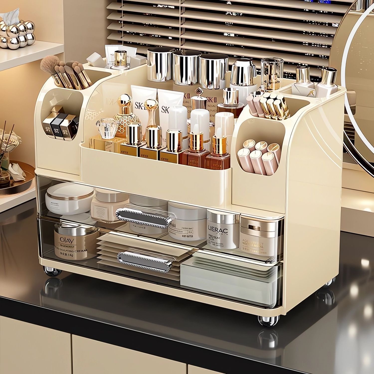 데스크탑 화장품 서랍 보관함 대용량 스킨 케어 제품 립스틱 눈썹 연필 보관함 다기능 화장품 상자