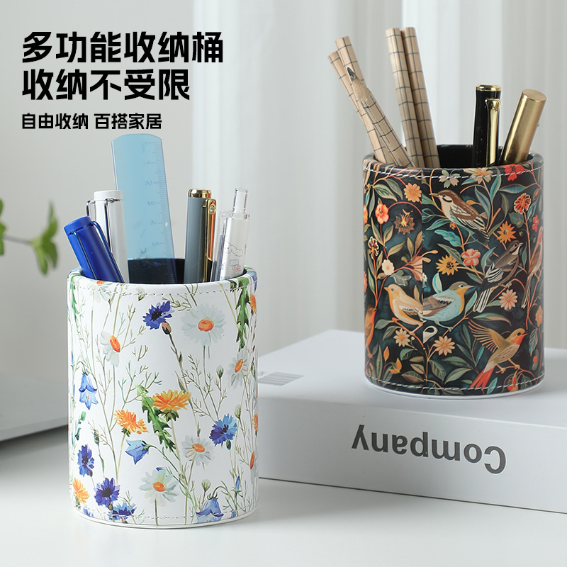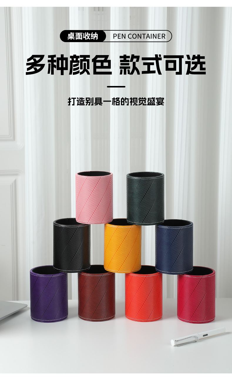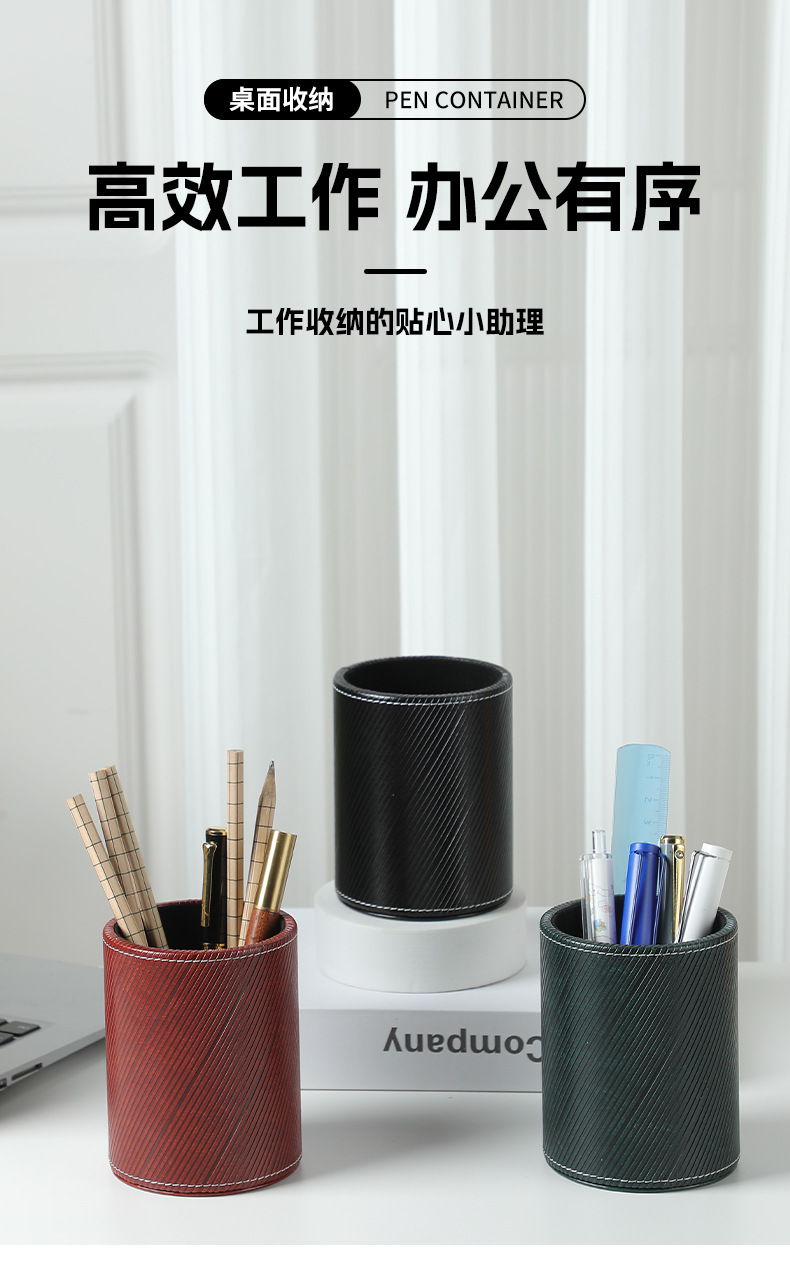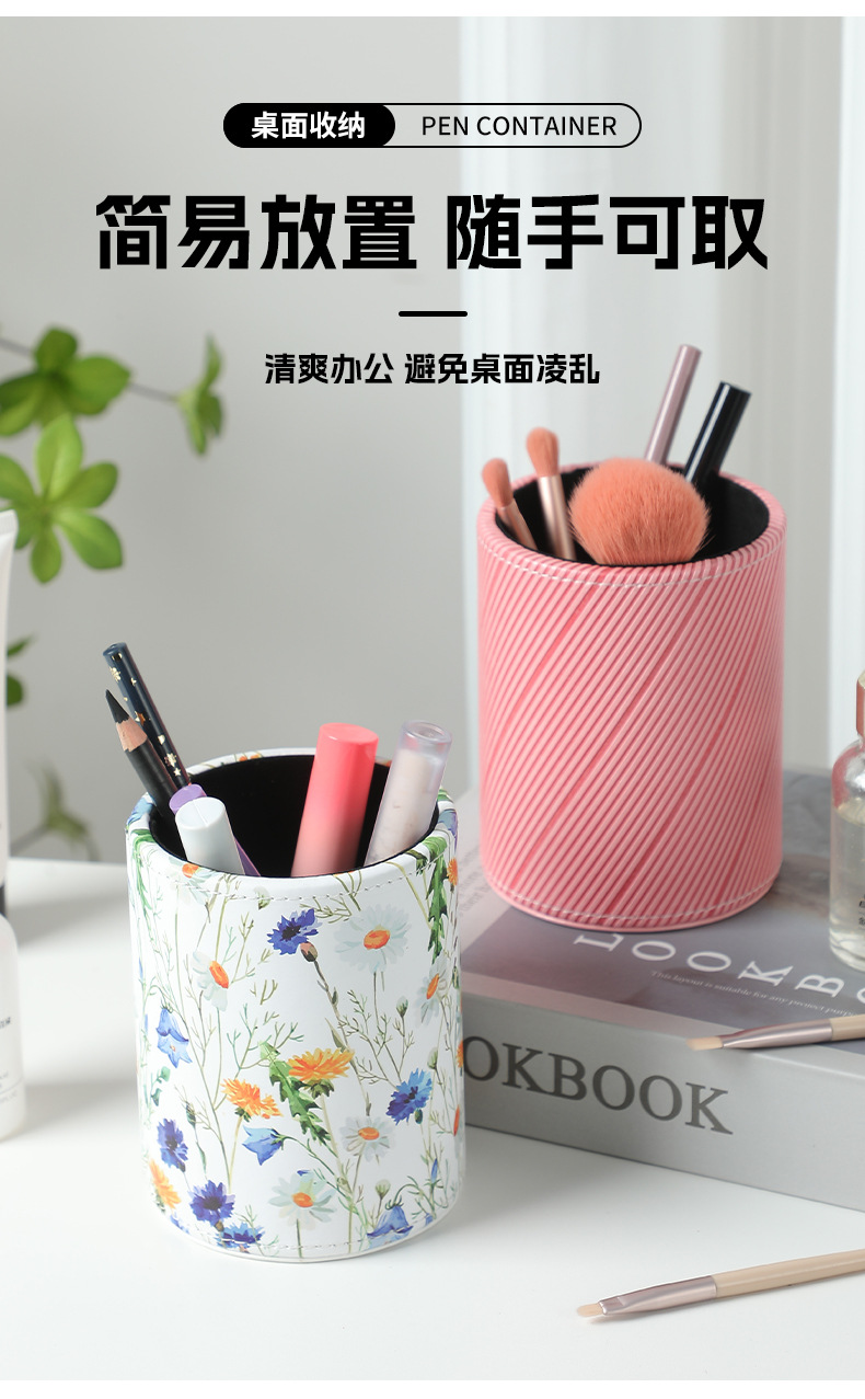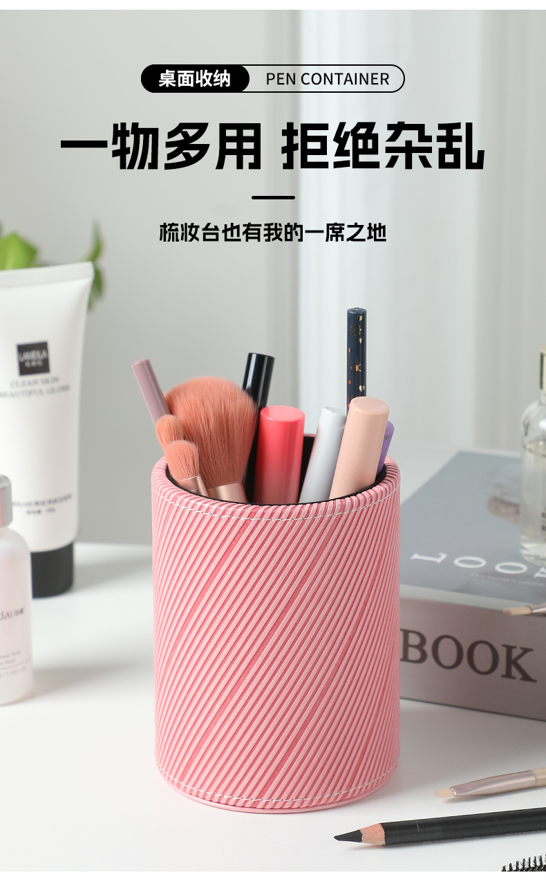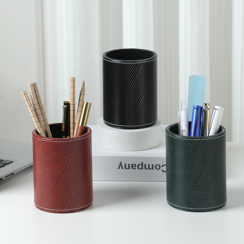 펜 홀더 맞춤형 로고 학생용 문구류 창의적인 사무용품 원형 가죽 화장 브러쉬 보관함 도매 비즈니스 선물