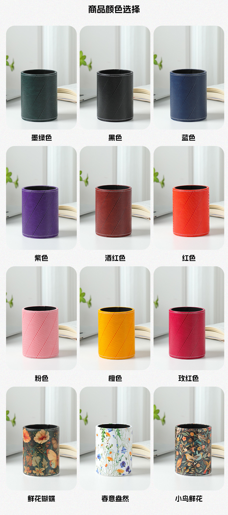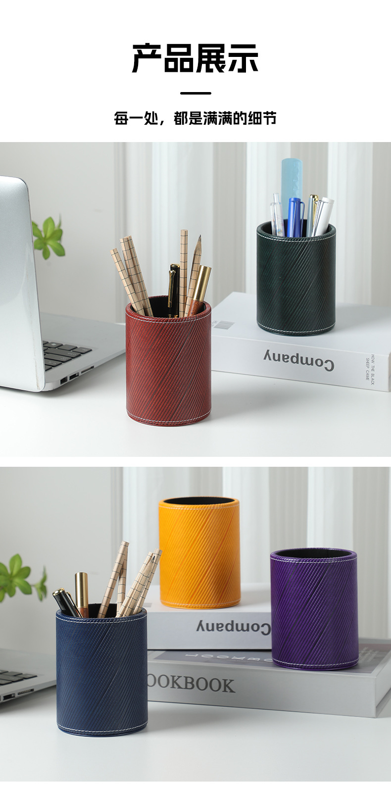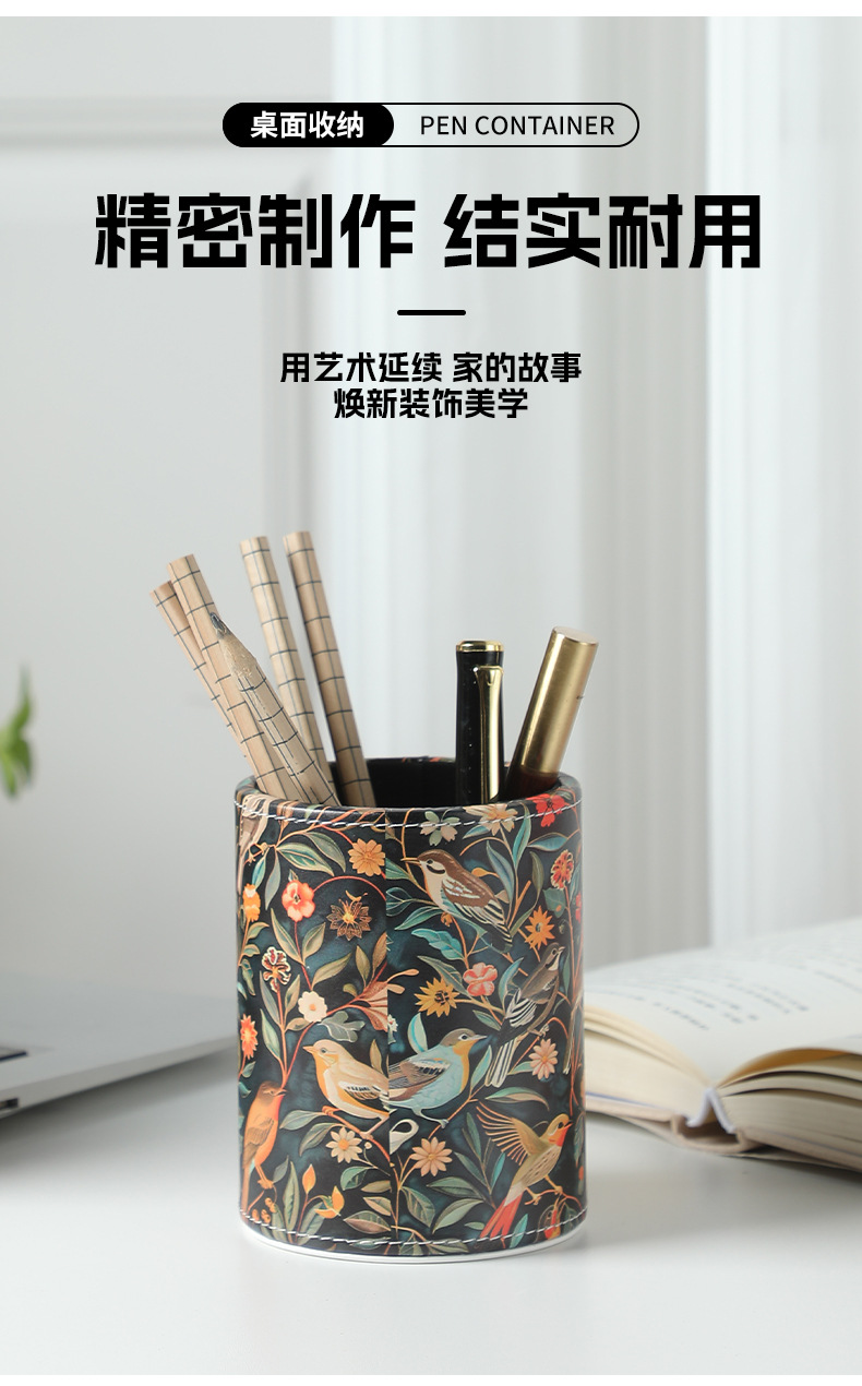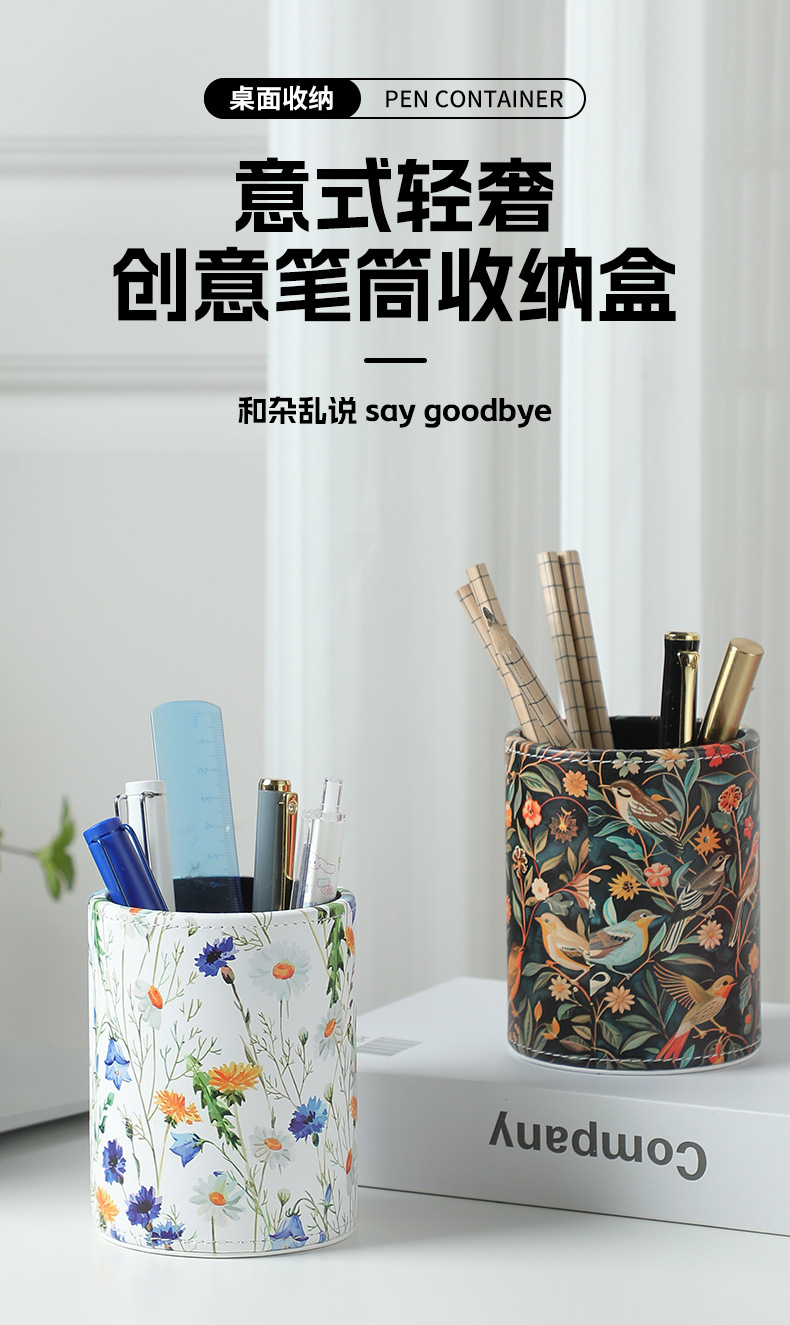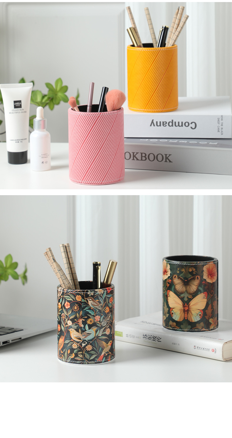 펜 홀더 맞춤형 로고 학생용 문구류 창의적인 사무용품 원형 가죽 화장 브러쉬 보관함 도매 비즈니스 선물
