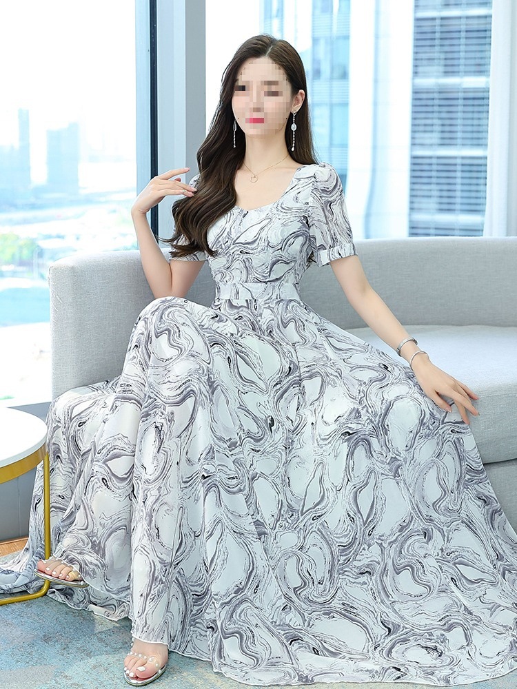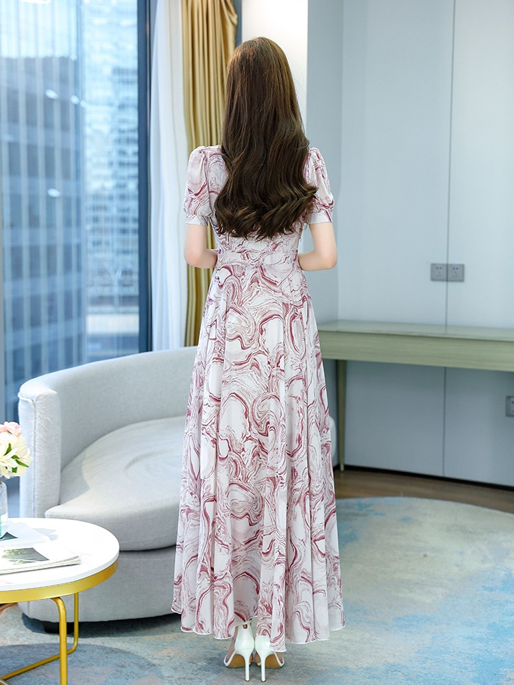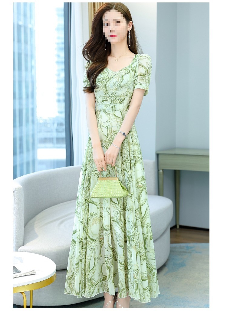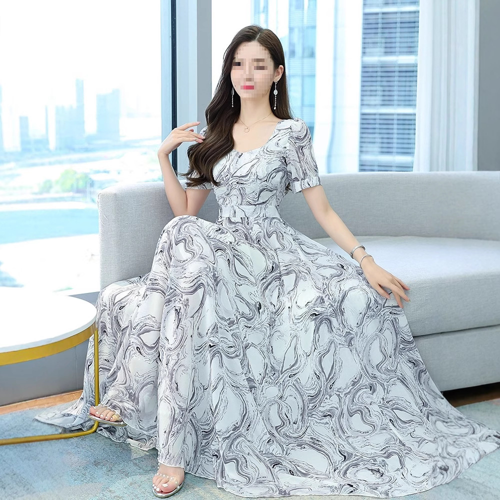 여름 산야 해변 휴가를위한 대외 무역 새 드레스 뚱뚱한 기질 꽃무늬 해변 드레스 기질 여성 긴 드레스