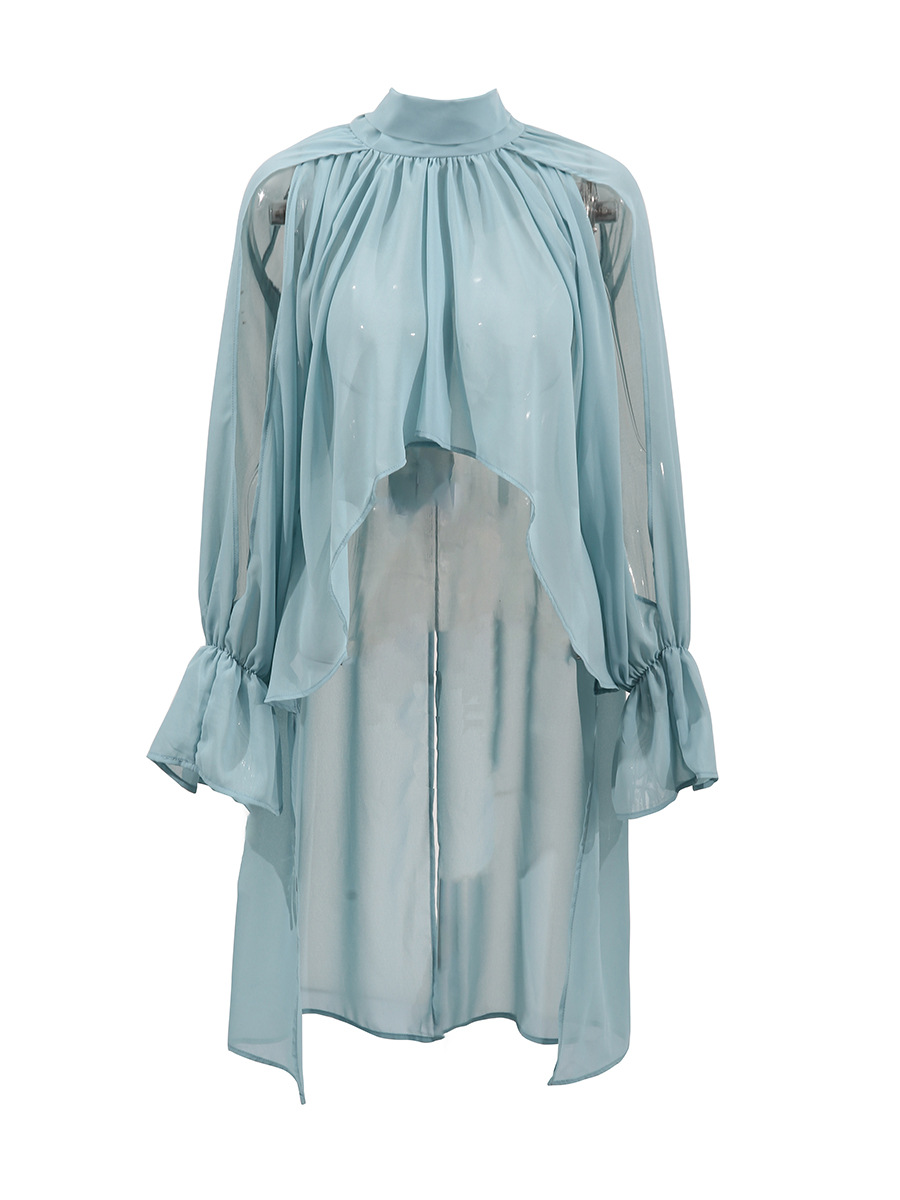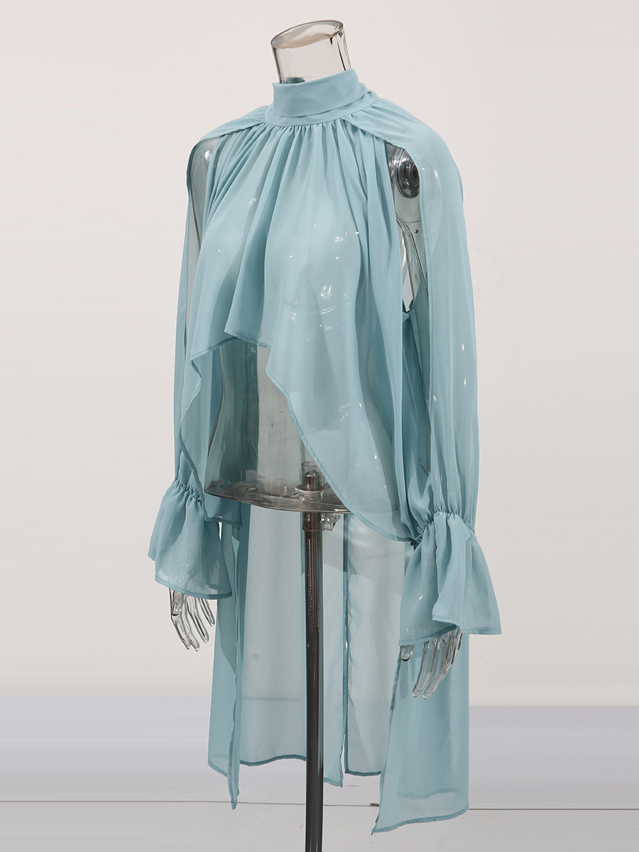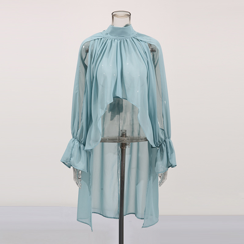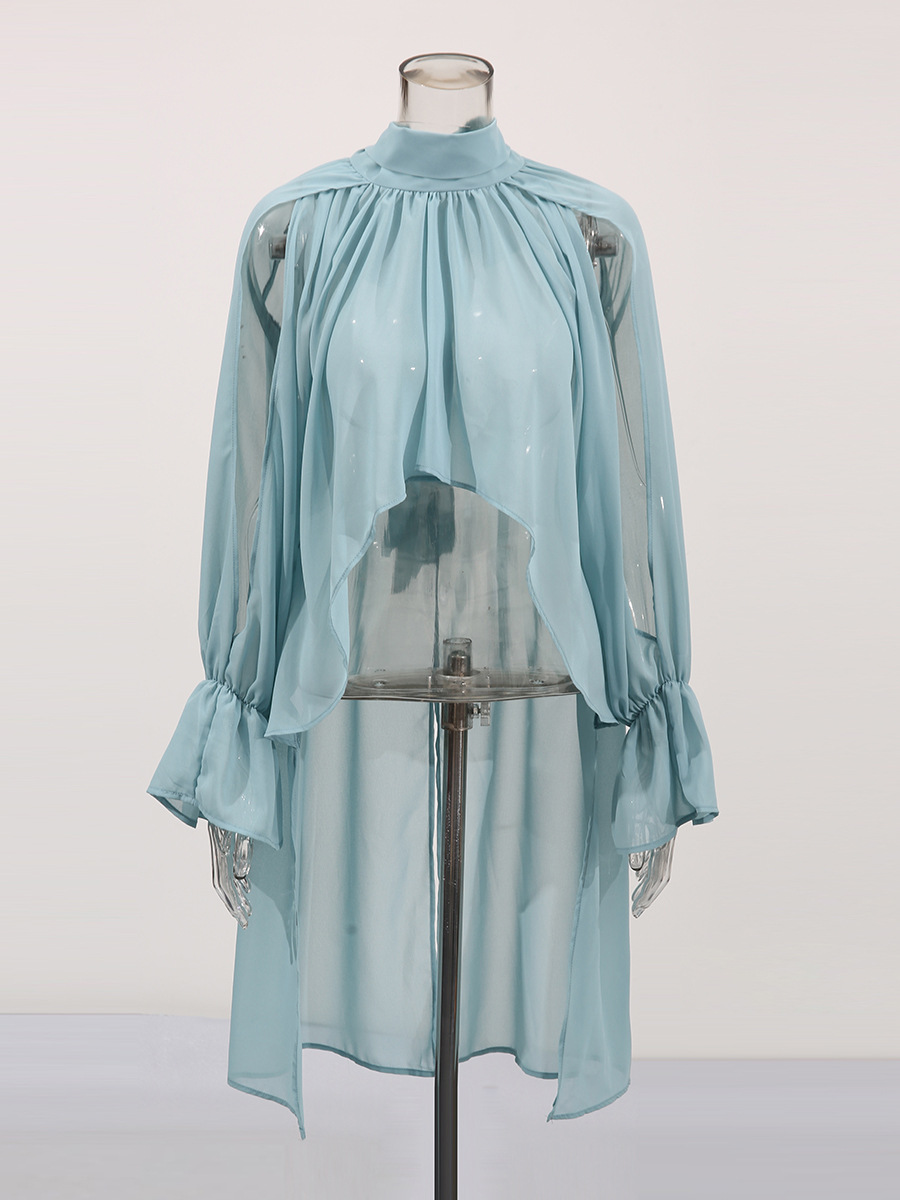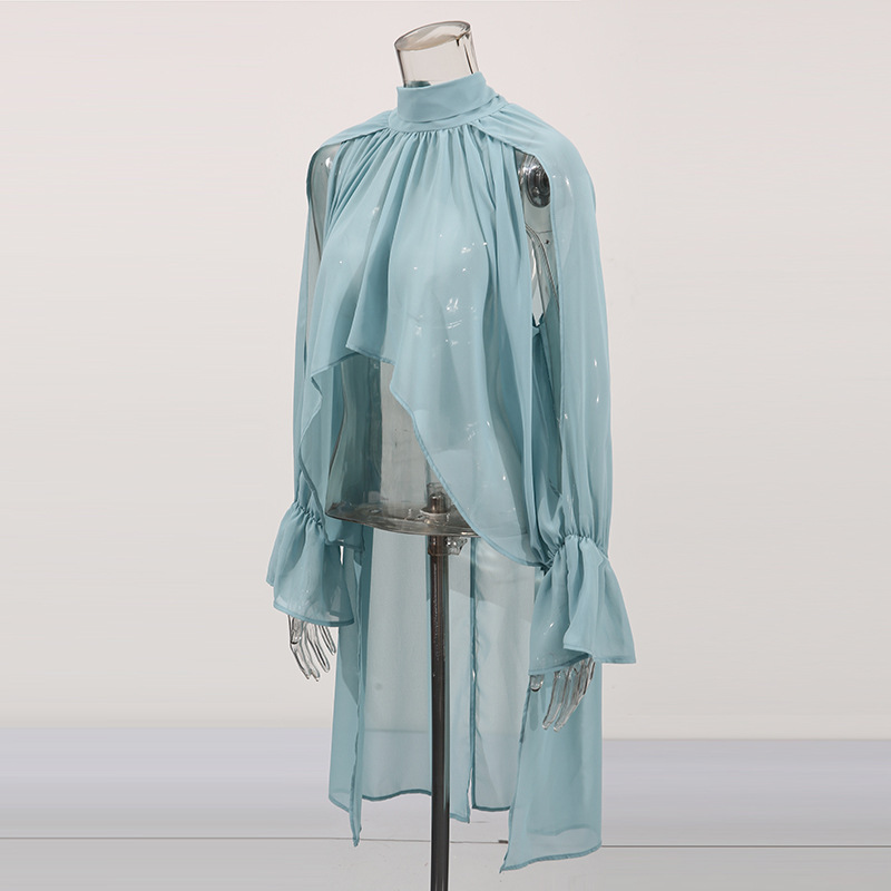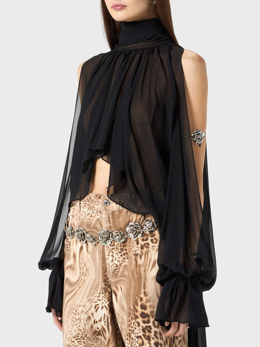 오스카 위험미학 쉬폰 셔츠 불규칙 탑 2026 봄 스타일 스탠드 칼라 민소매 솔리드 컬러 숏 셔츠