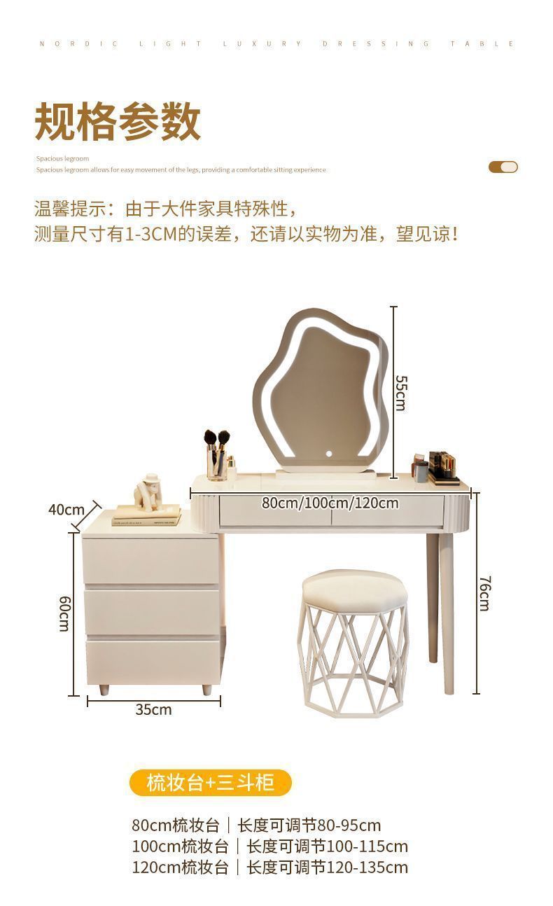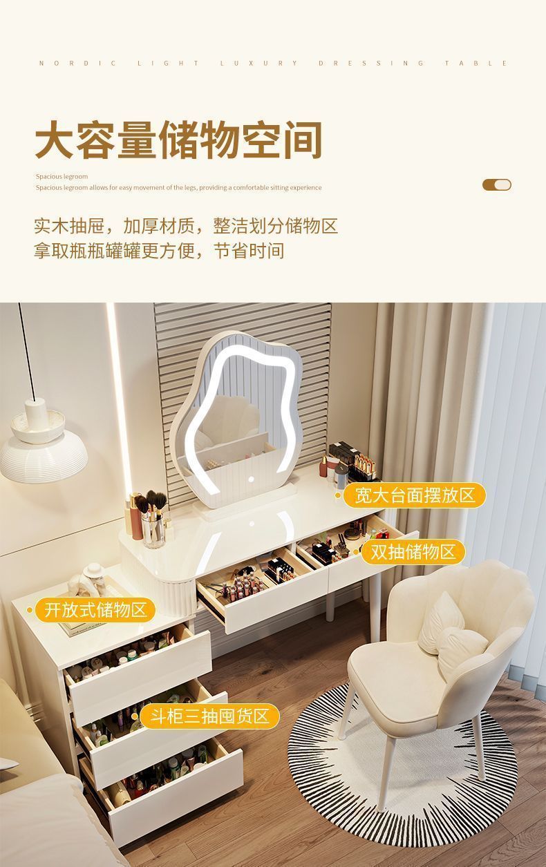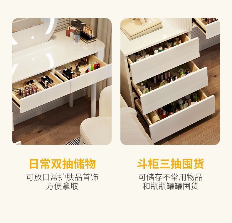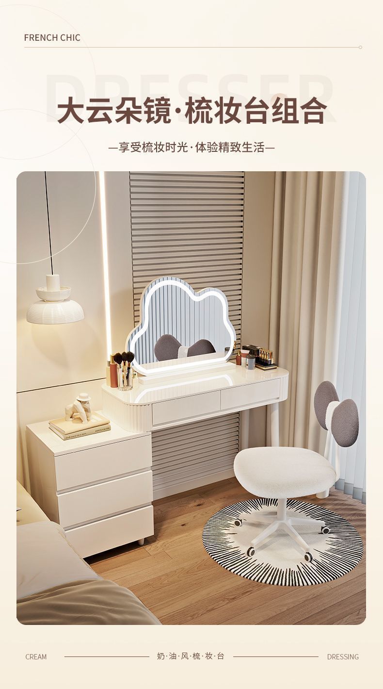 새로운 크림 스타일 드레싱 테이블 침실 현대 간단한 가벼운 럭셔리 드레싱 테이블 스토리지 캐비닛 통합 작은 아파트 메이크업 테이블