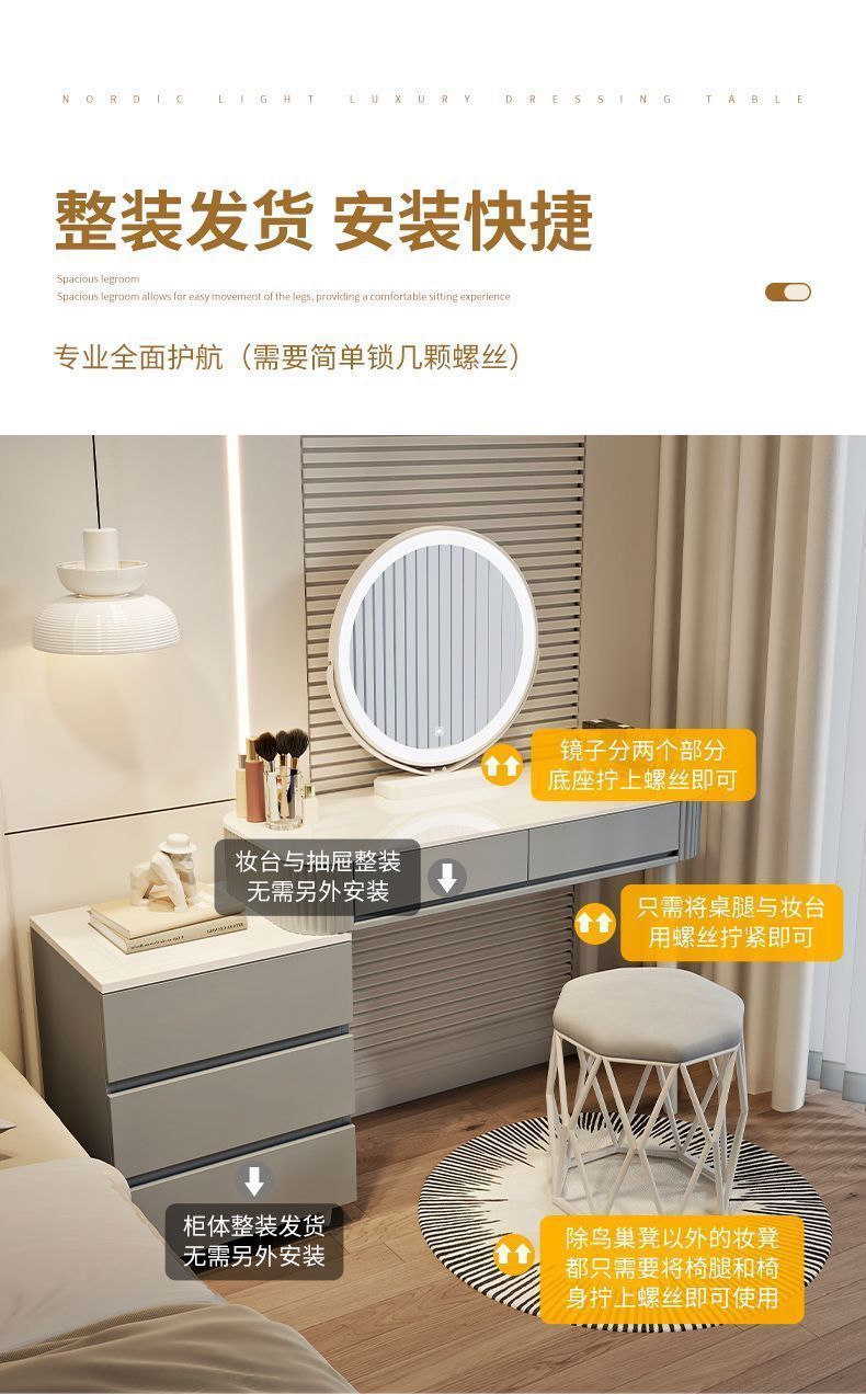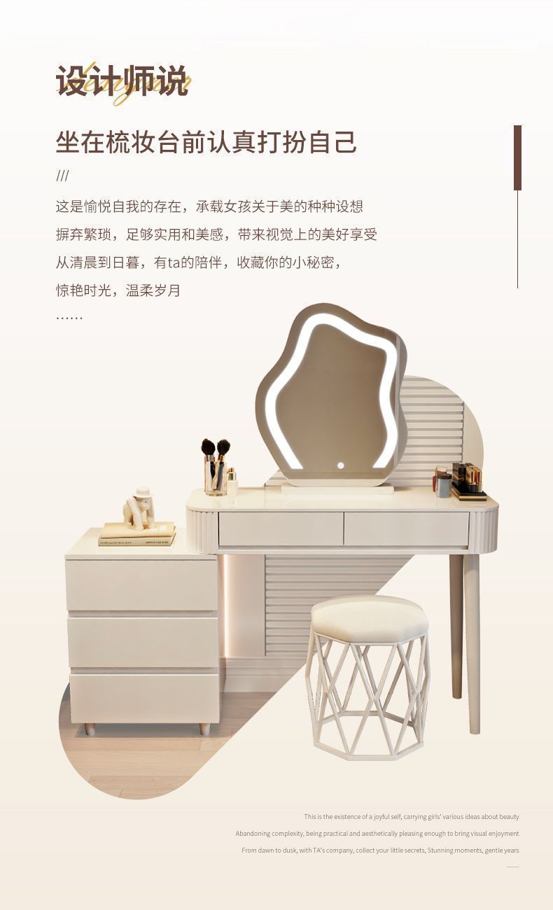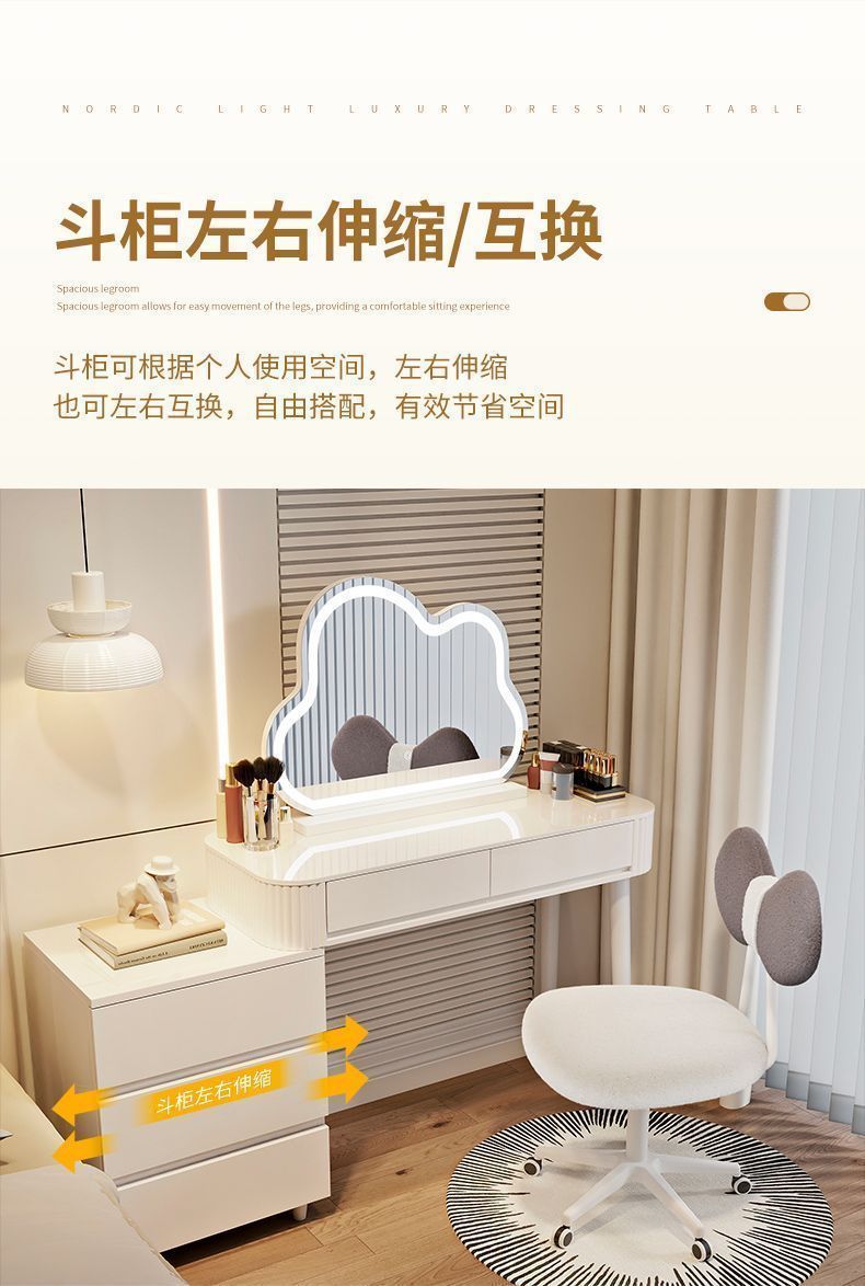 새로운 크림 스타일 드레싱 테이블 침실 현대 간단한 가벼운 럭셔리 드레싱 테이블 스토리지 캐비닛 통합 작은 아파트 메이크업 테이블