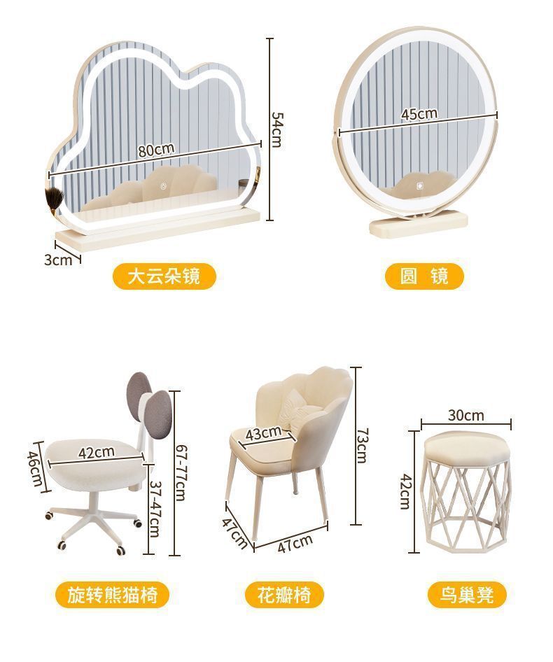 화이트 80 테이블 + 캐비닛 + 거울 + 꽃잎 의자