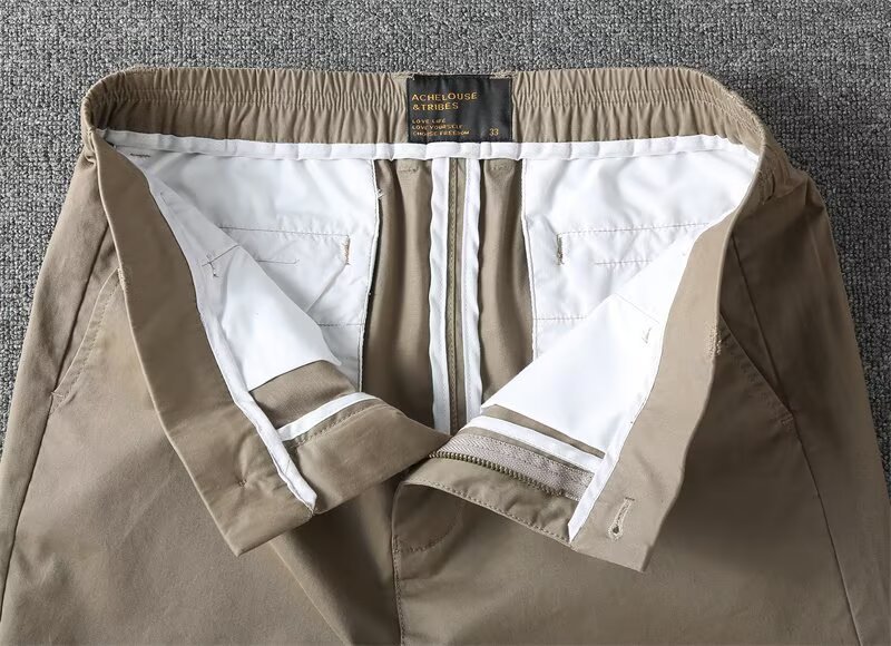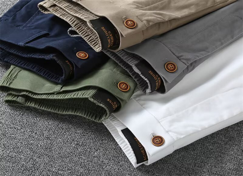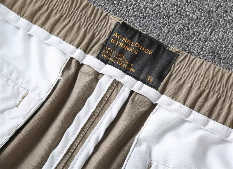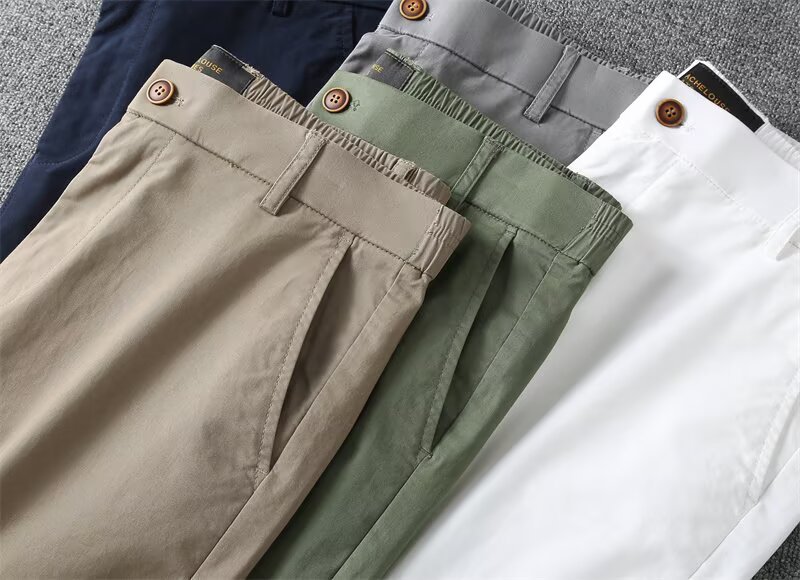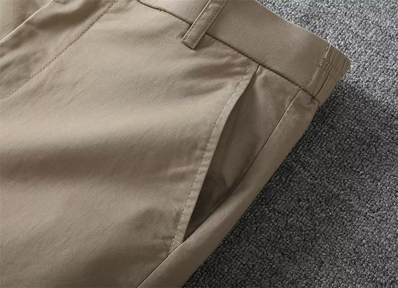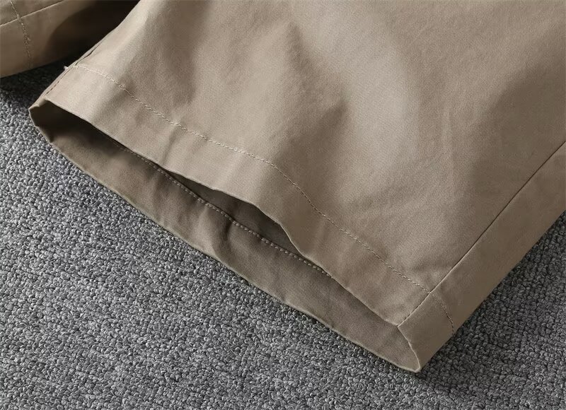 여름 남성 캐주얼 쿼터 반바지 남성 트렌디 반바지 신축성 있는 허리 작업복 솔리드 컬러 얇은 다용도 슬림 스트레이트 팬츠