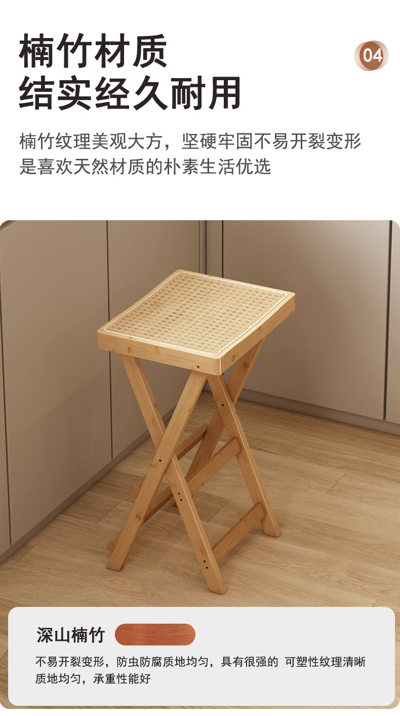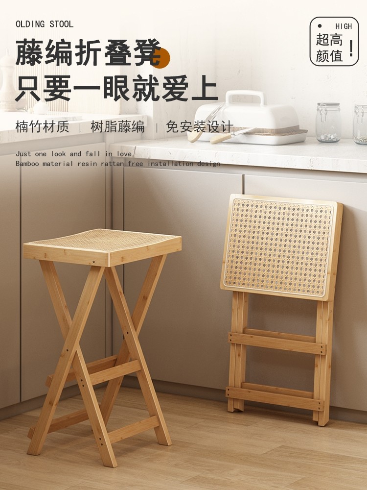 설치가 필요 없는 접이식 하이 스툴 바 의자 현대적인 미니멀리스트 바 의자 출납원 프론트 데스크 바 의자 천연 난 대나무