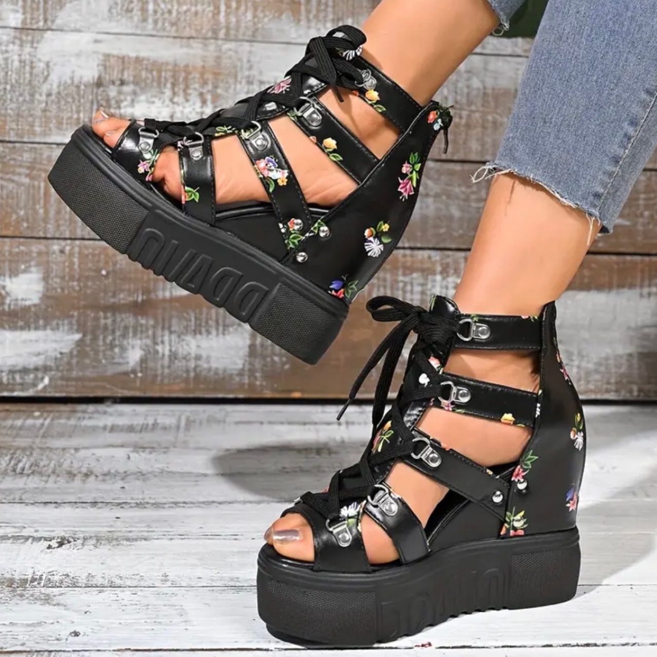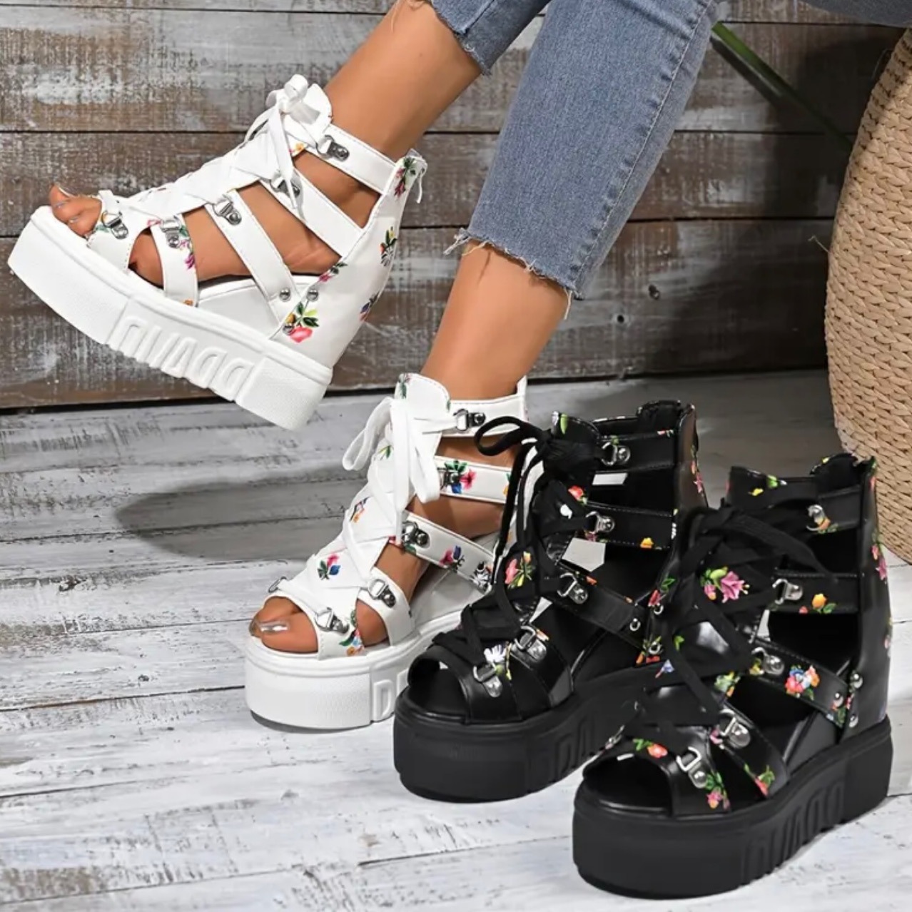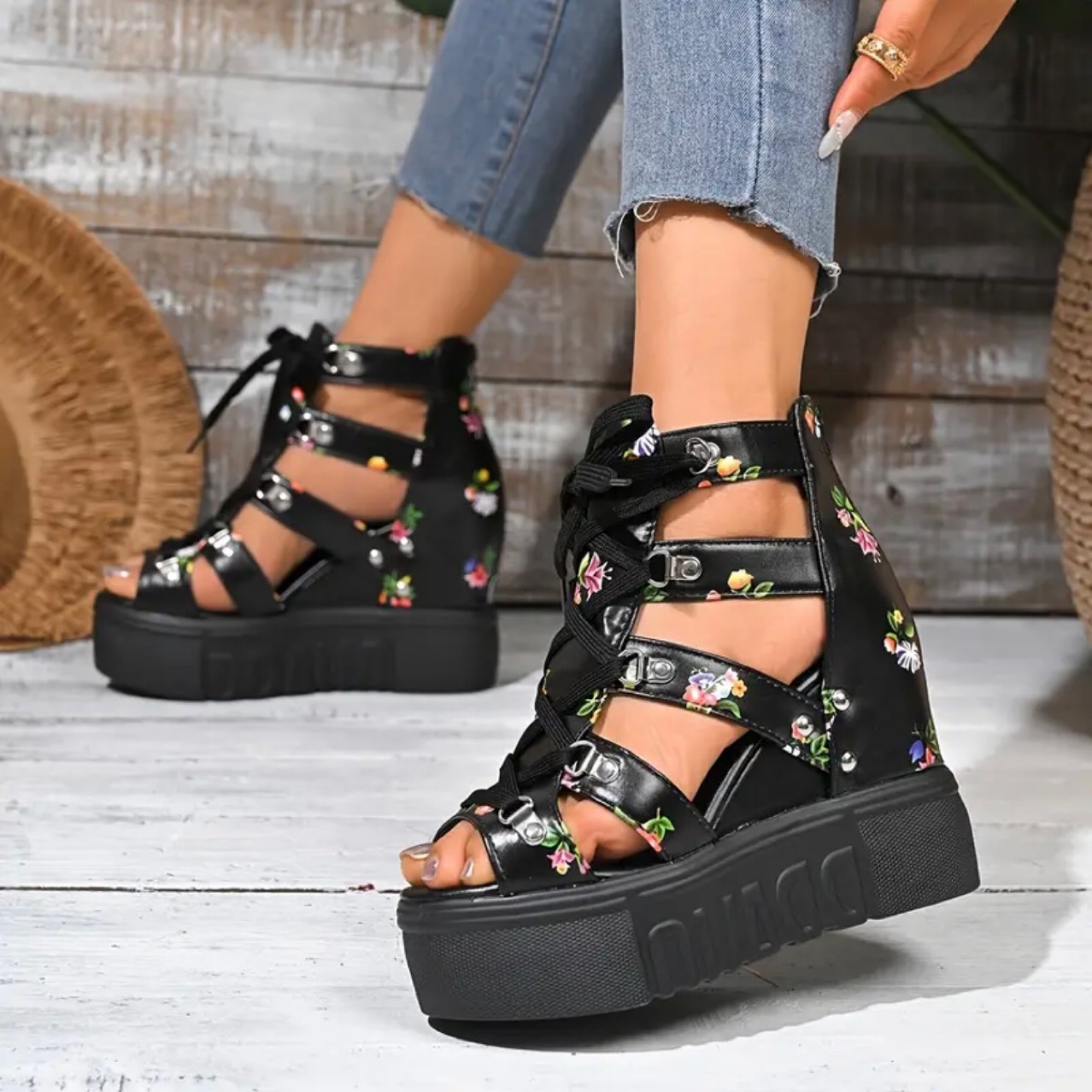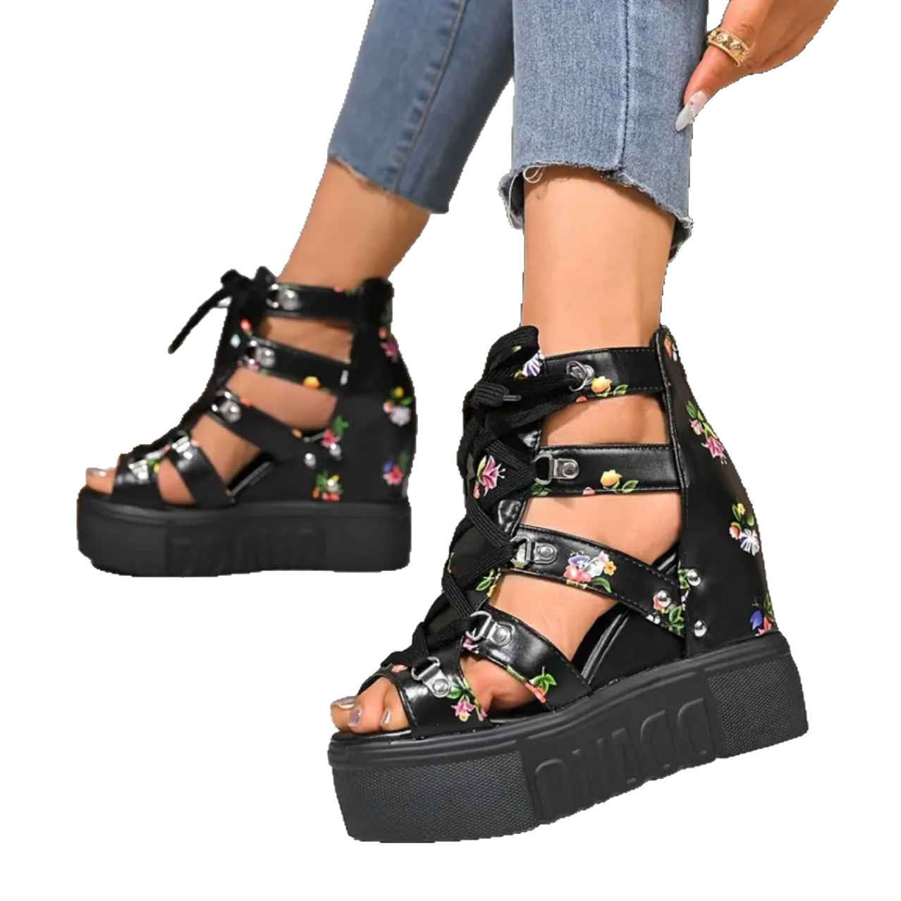 2025 여름 대외 무역 인기 여성 신발 새로운 로마 샌들 여성 하이힐 컬러 매칭 크로스 스트랩 여성 신발 12cm 슈퍼
