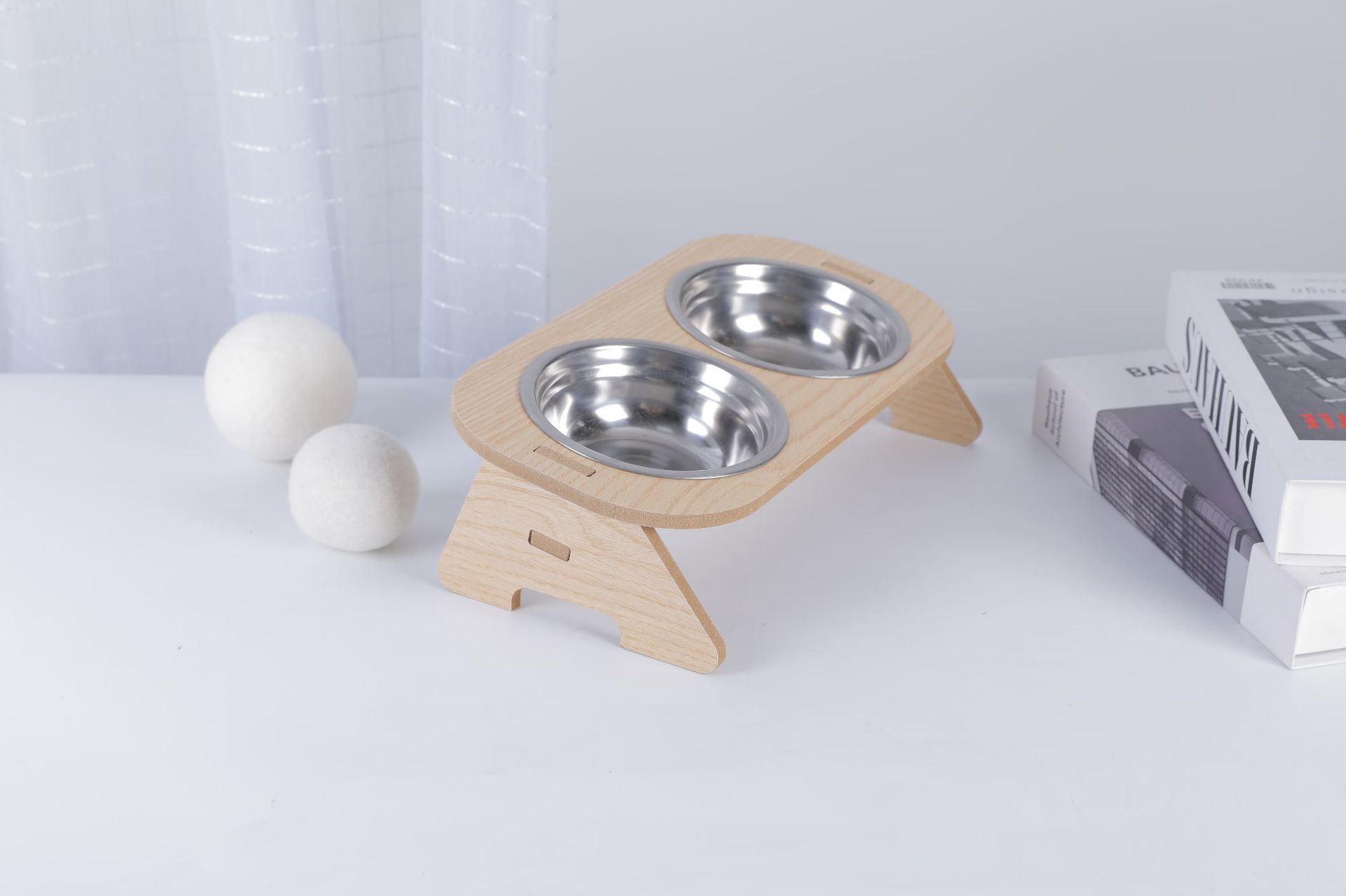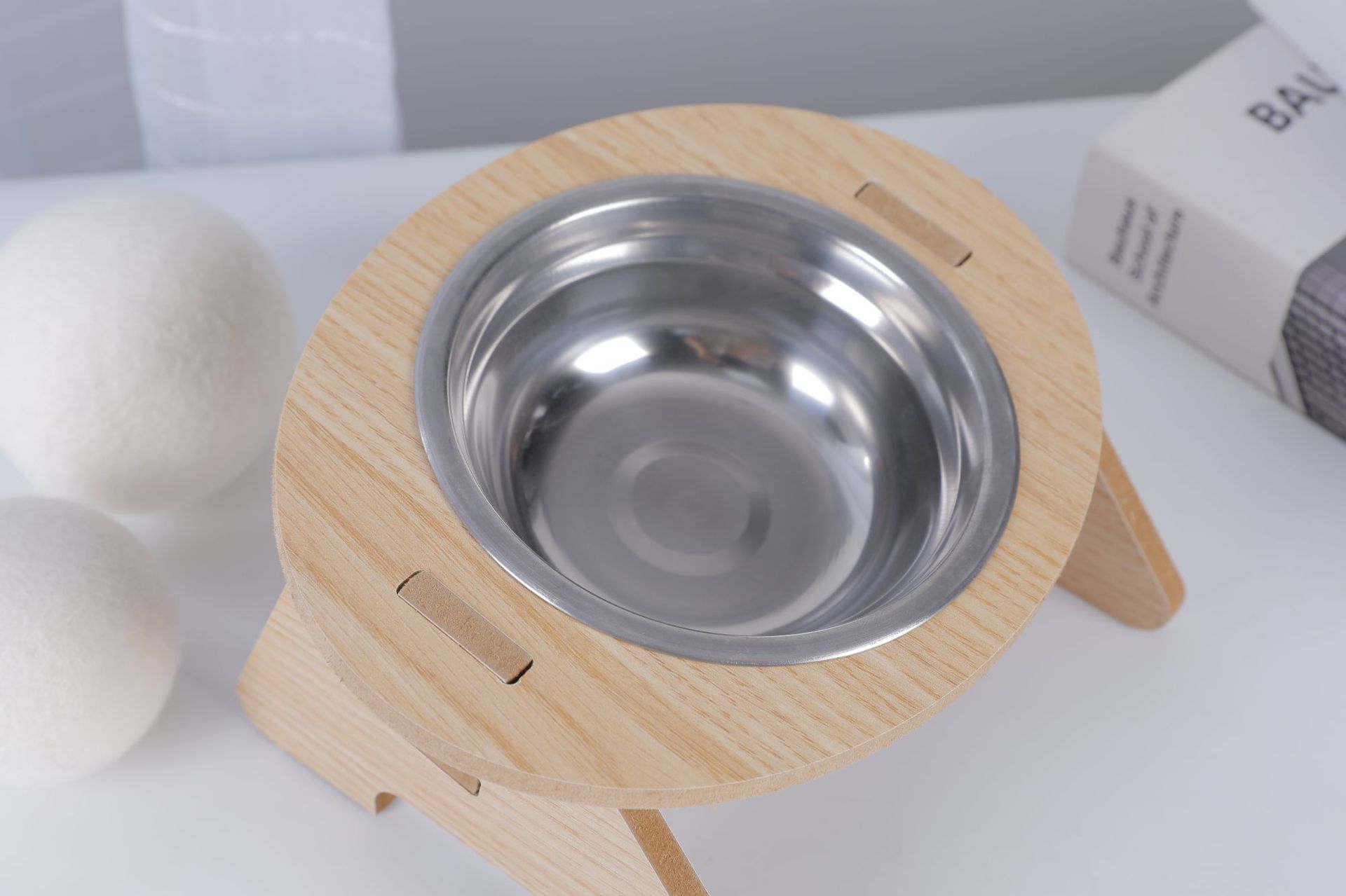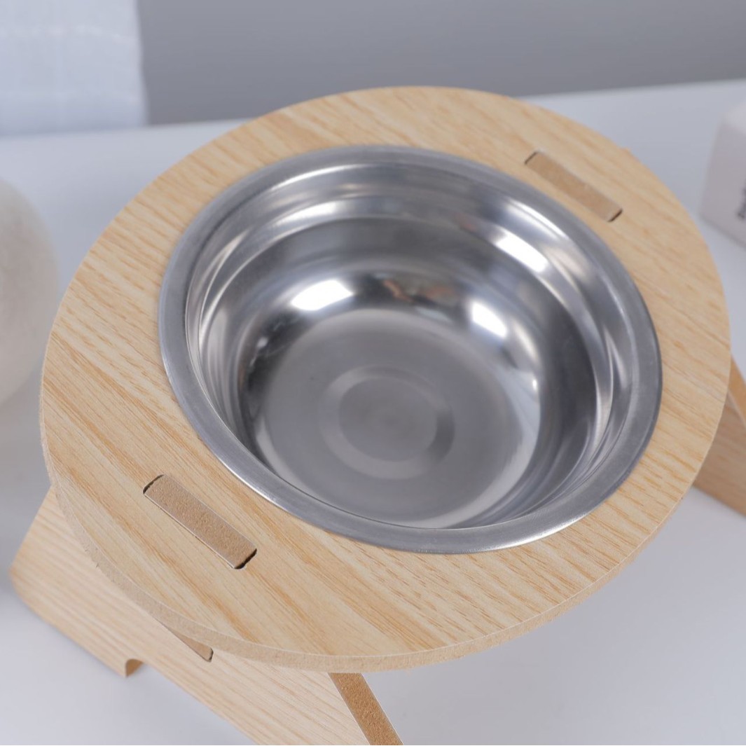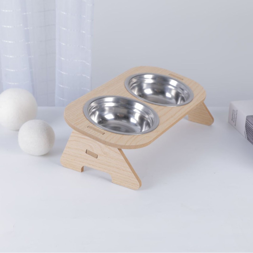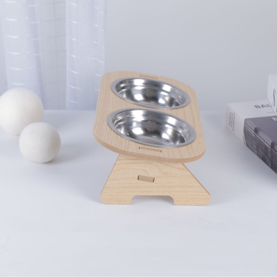 고양이 그릇, 이중 그릇, 개 그릇, 넘어짐 방지 경사 입구, 스테인레스 스틸 목 보호대, 애완 동물 그릇, 무료 배송, 목재