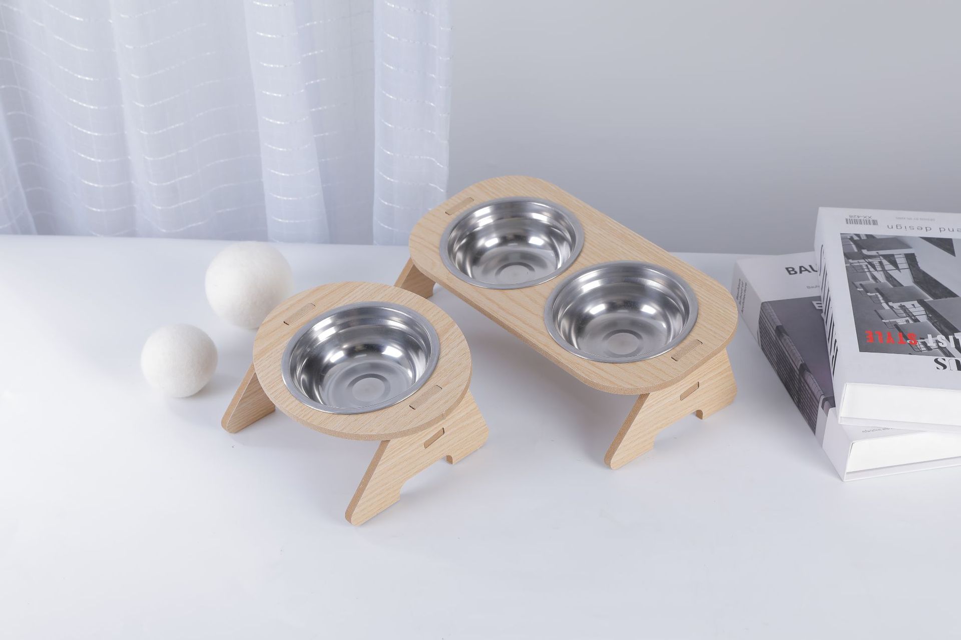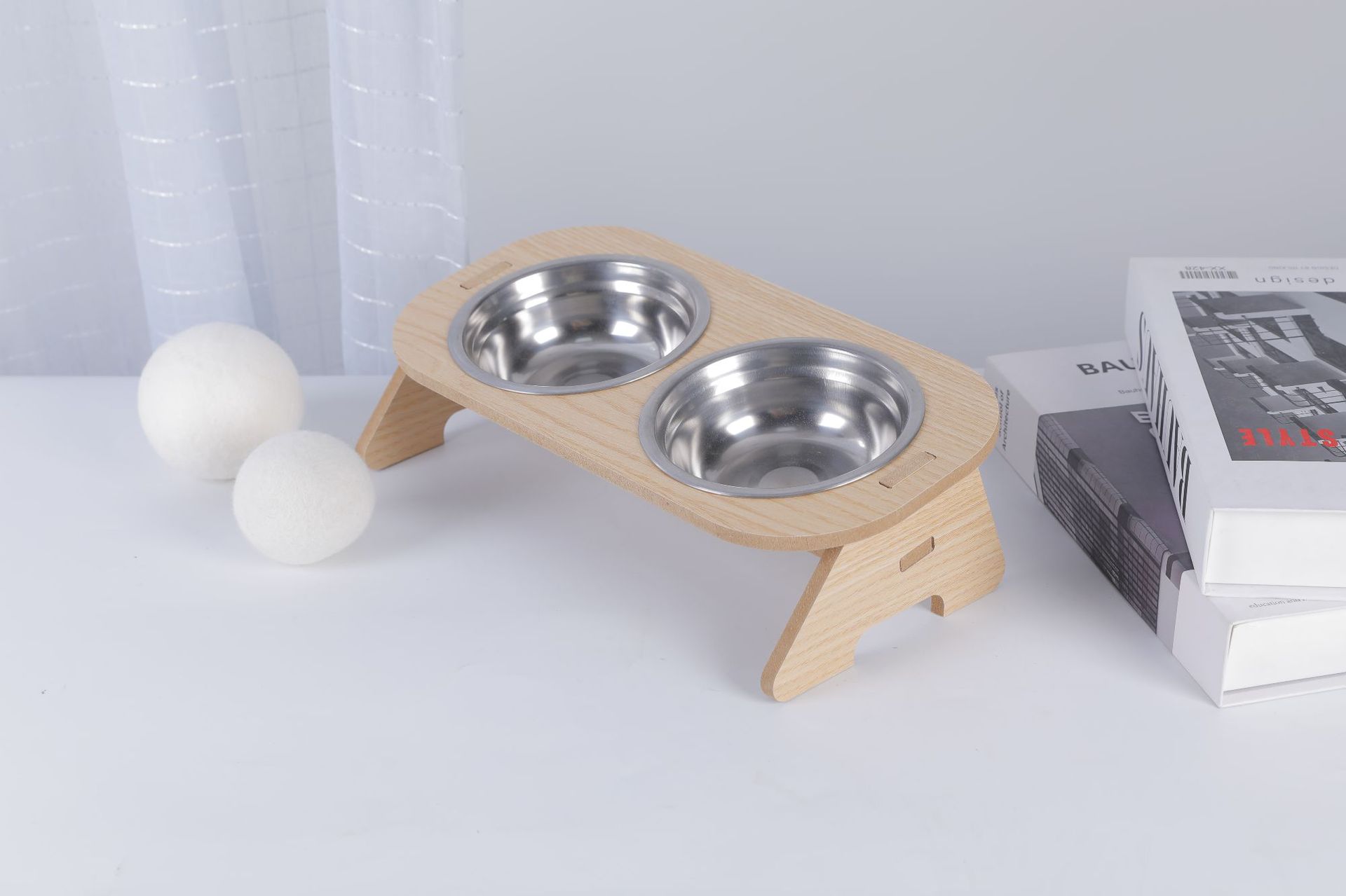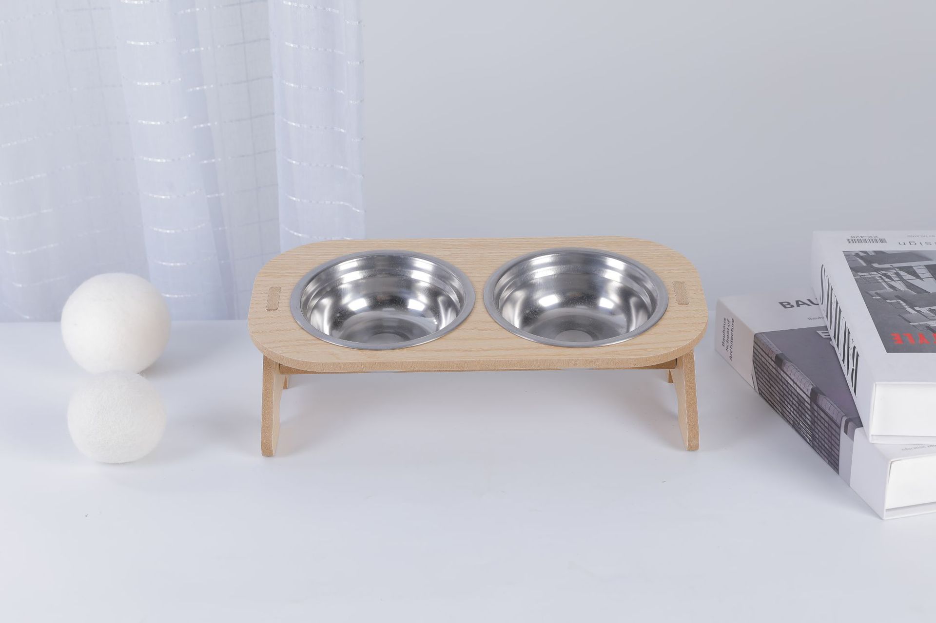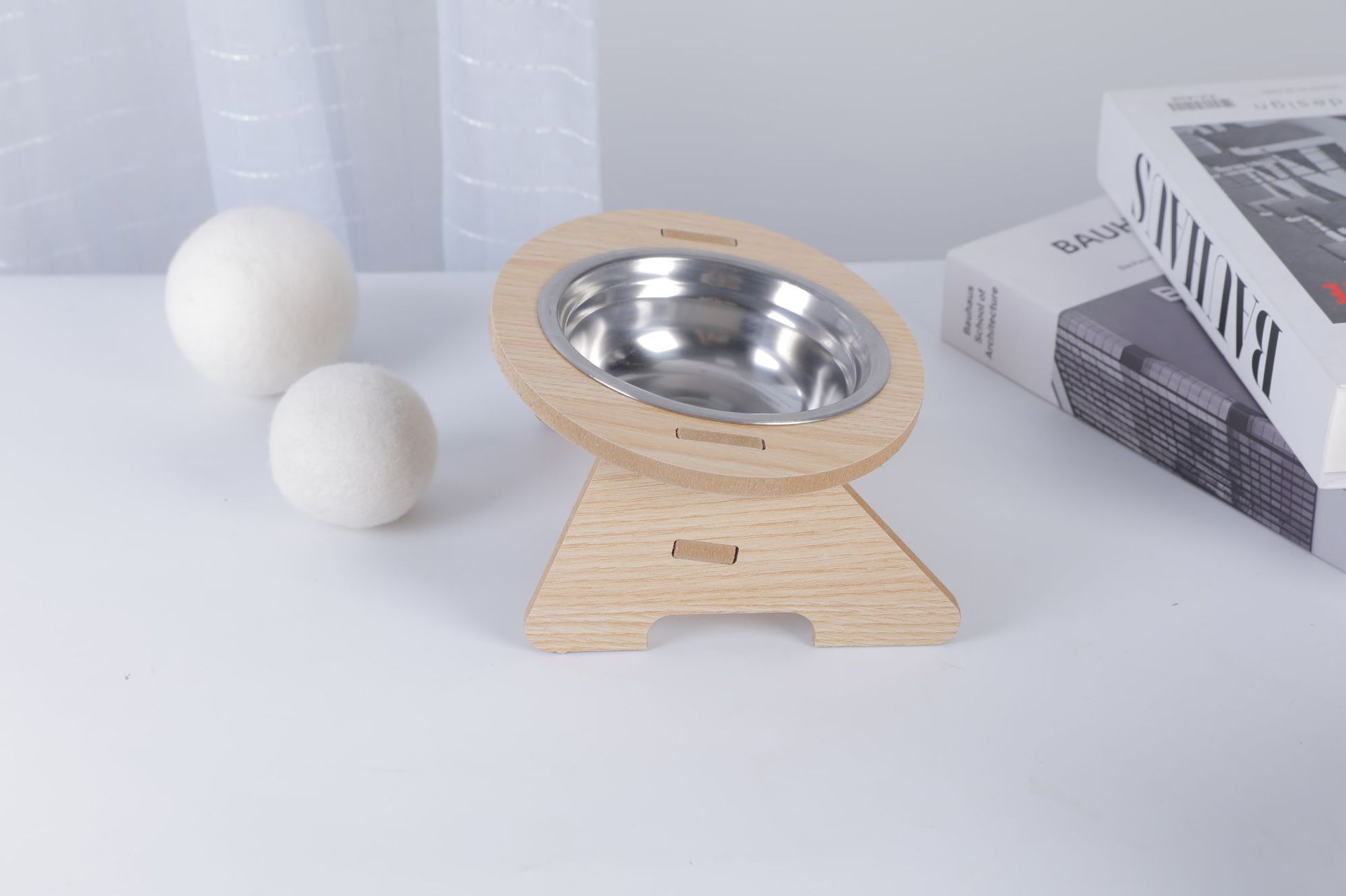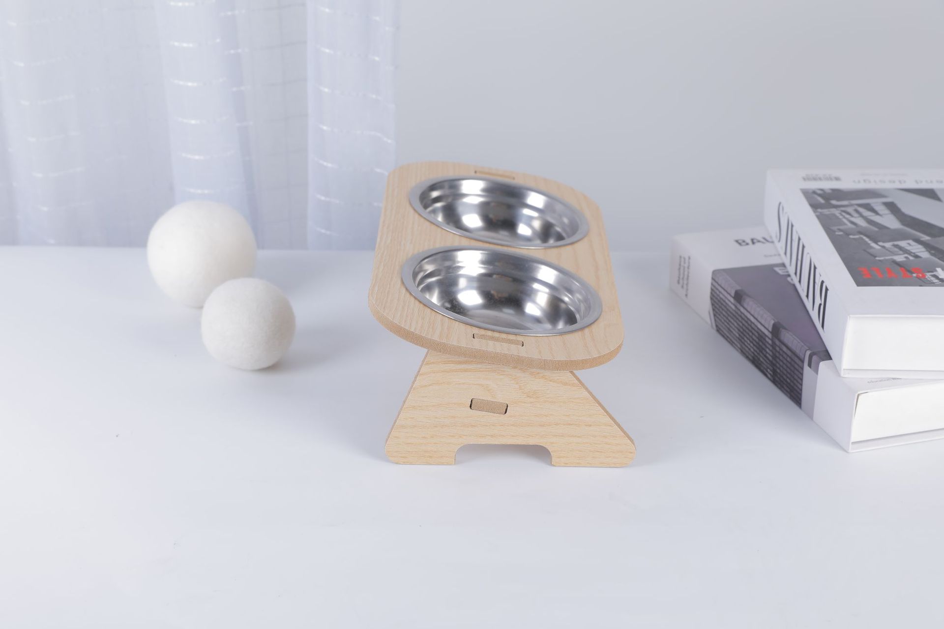 고양이 그릇, 이중 그릇, 개 그릇, 넘어짐 방지 경사 입구, 스테인레스 스틸 목 보호대, 애완 동물 그릇, 무료 배송, 목재