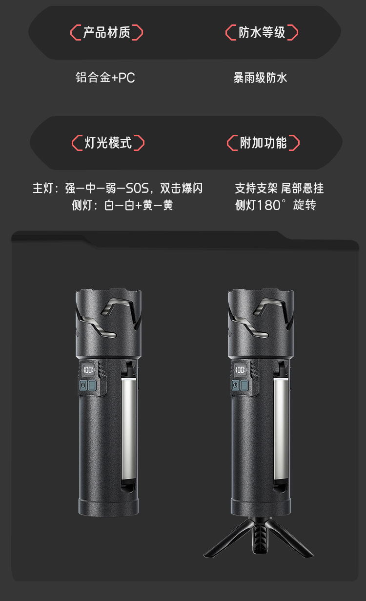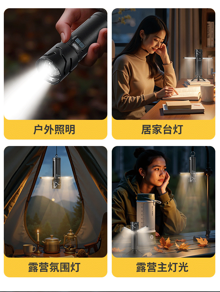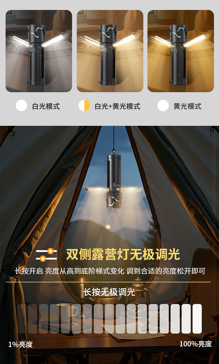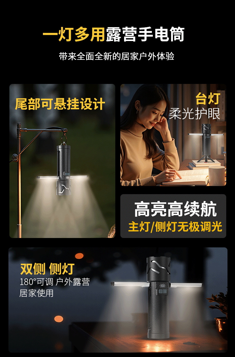 가정용 테이블 램프 야외 캠핑 램프 텐트 램프 알루미늄 합금 충전식 줌 흰색 레이저 다기능 슈퍼 밝은 손전등