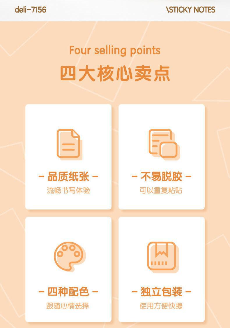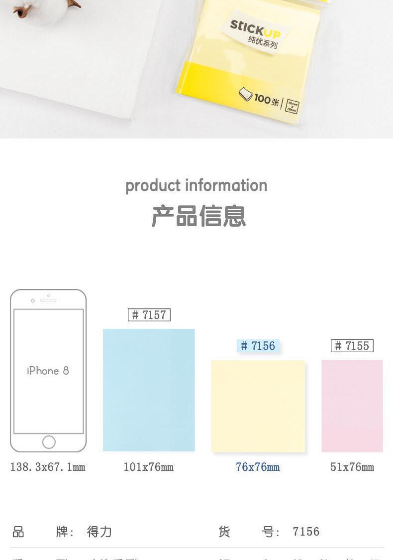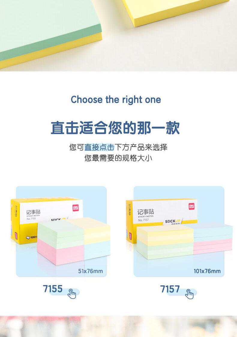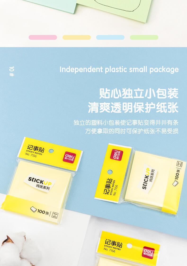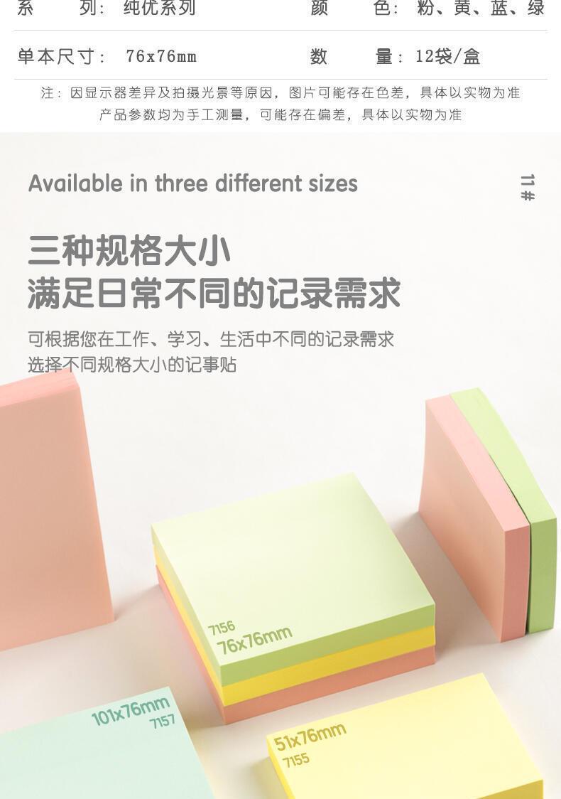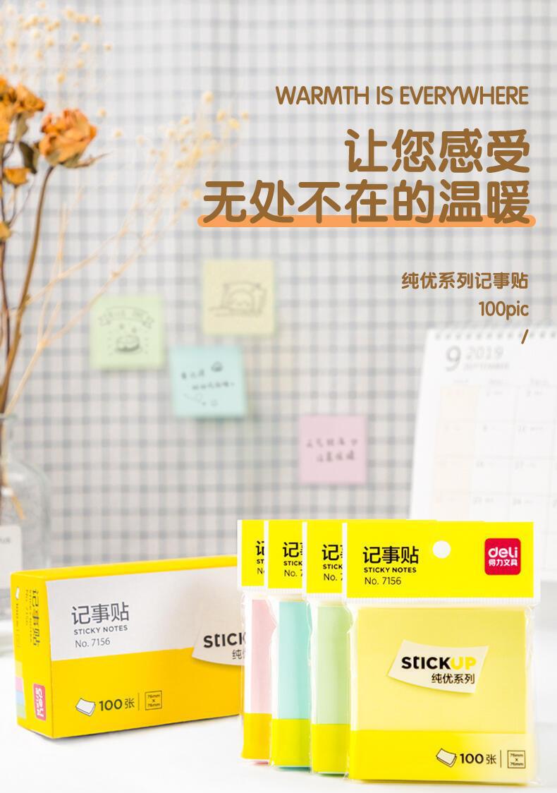 델리 포스트잇 단색 자체 접착 7156 라벨 스티커 정보 분류 용지 학생 형광 용지 알림 용지