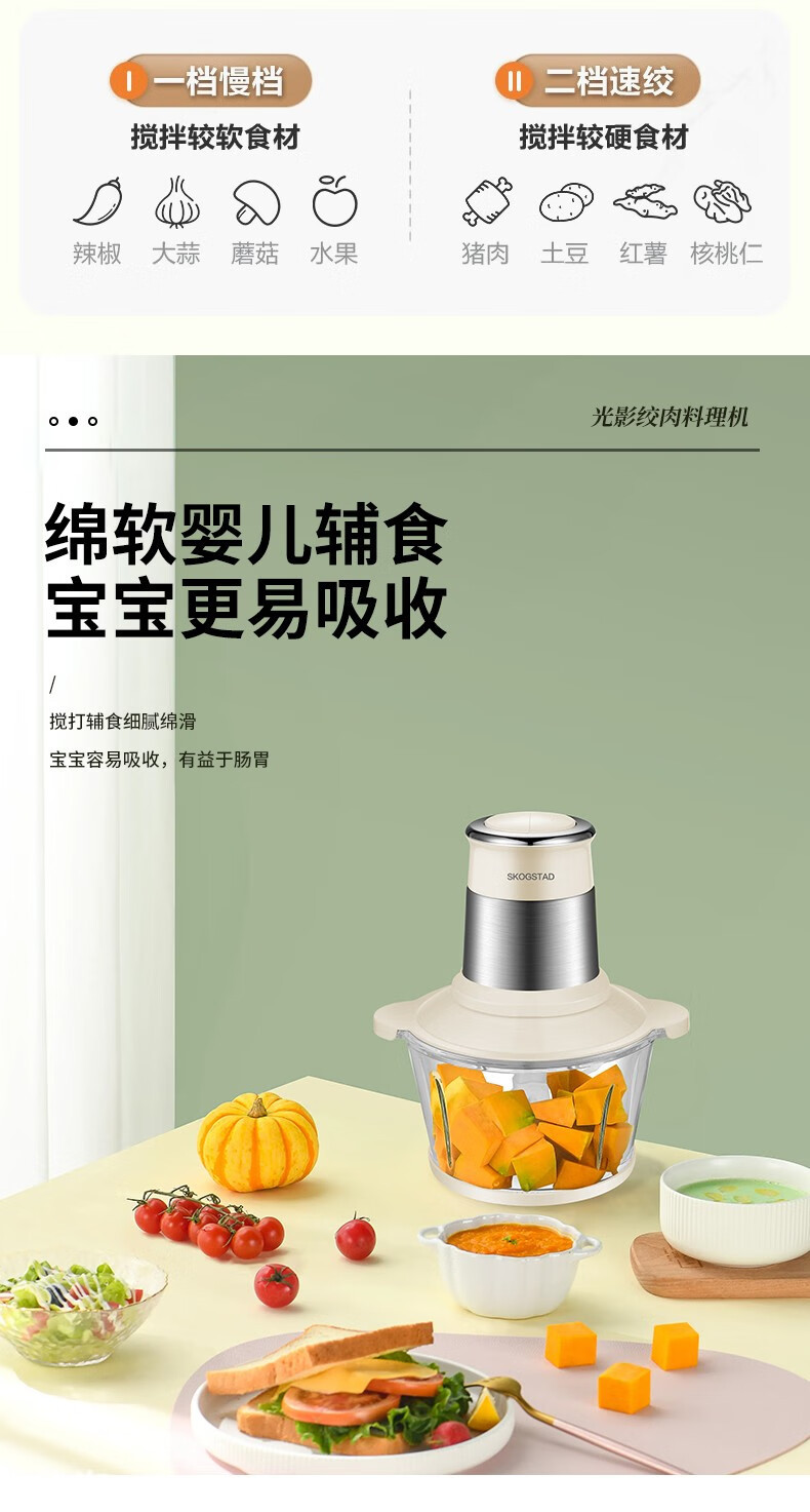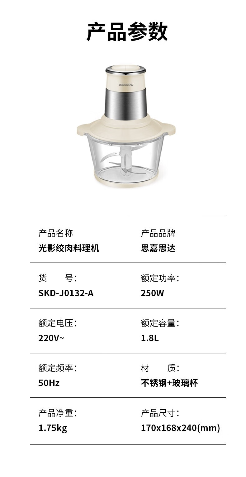 Scarlett Star 빛과 그림자 고기 분쇄기 SKD-J0132-A 주방 고기 및 야채 분쇄기 1.8L