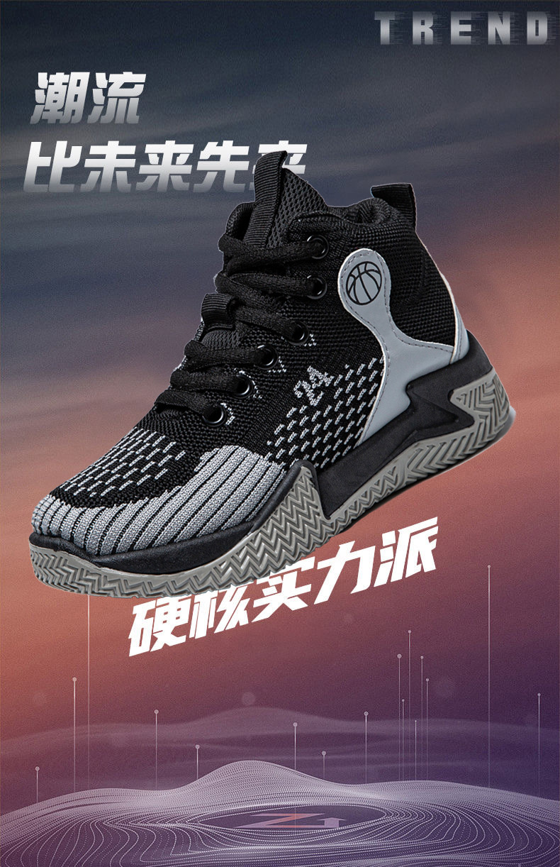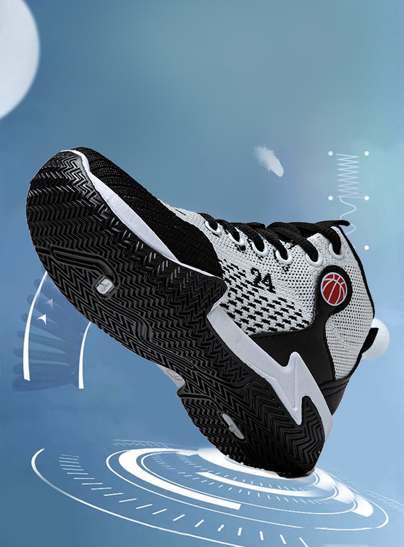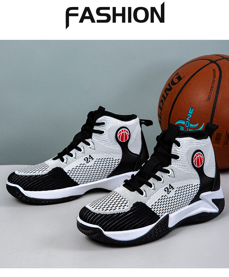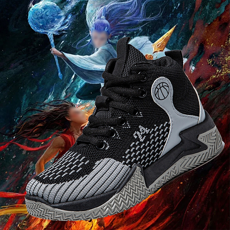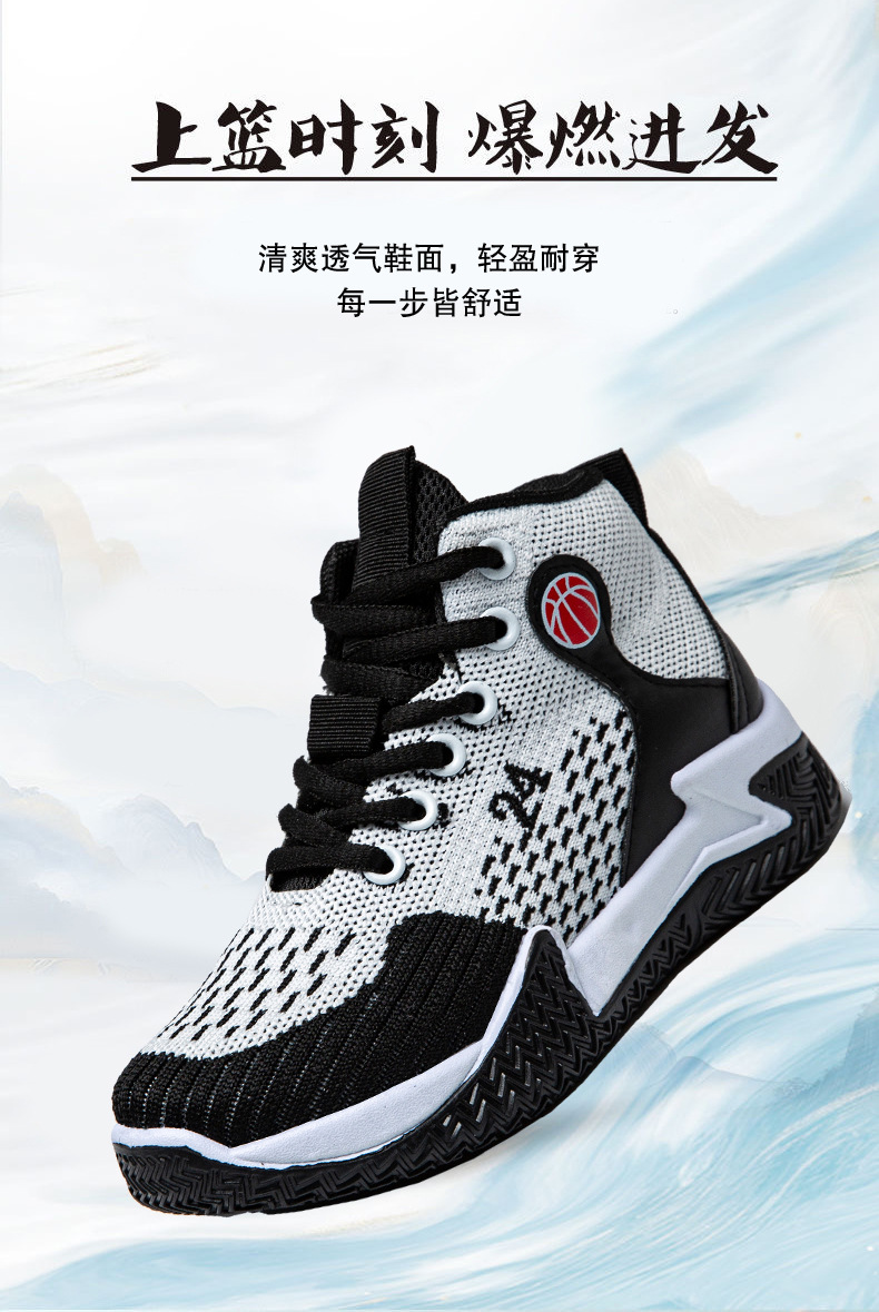 크로스보더 농구화, 봄여름 아웃도어 트렌디 런닝화, 미드탑 두꺼운 밑창, 리바운드 기능이 있는 플라이니트 메쉬 소재, 캐주얼 스포츠 남성화