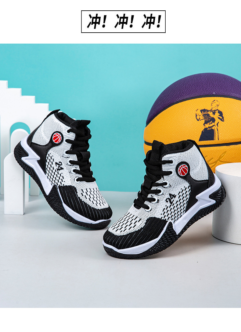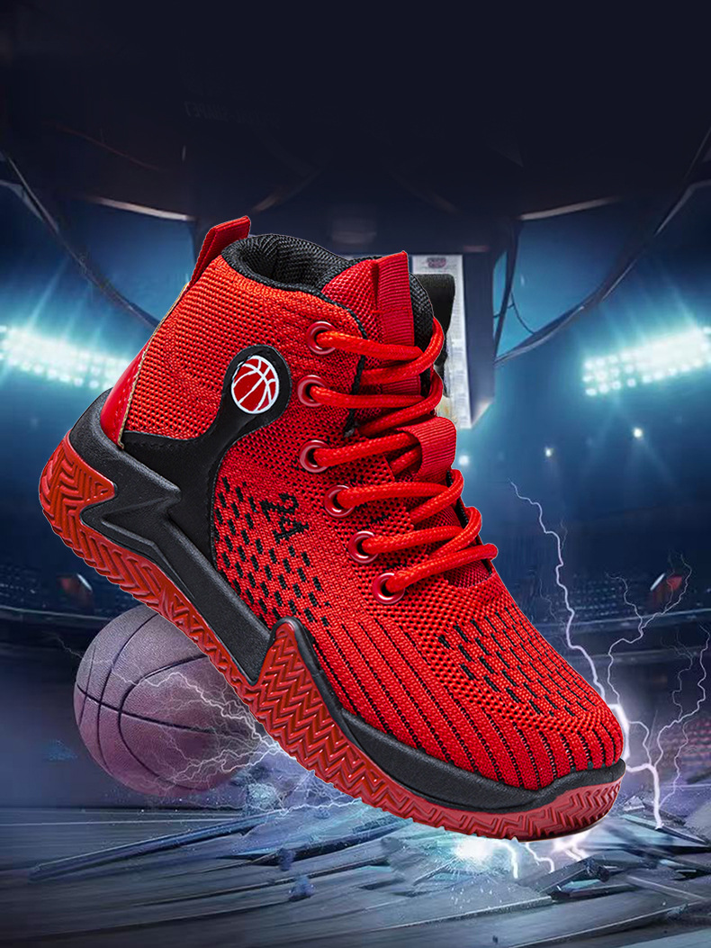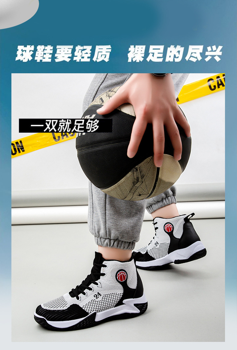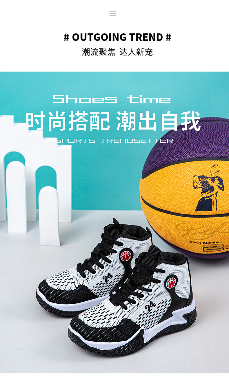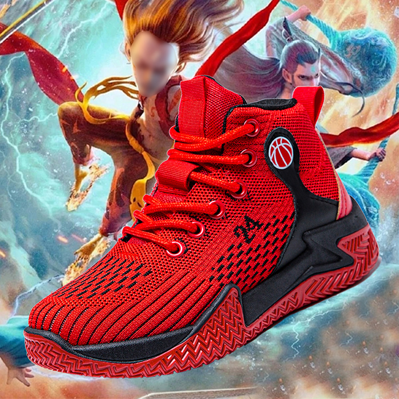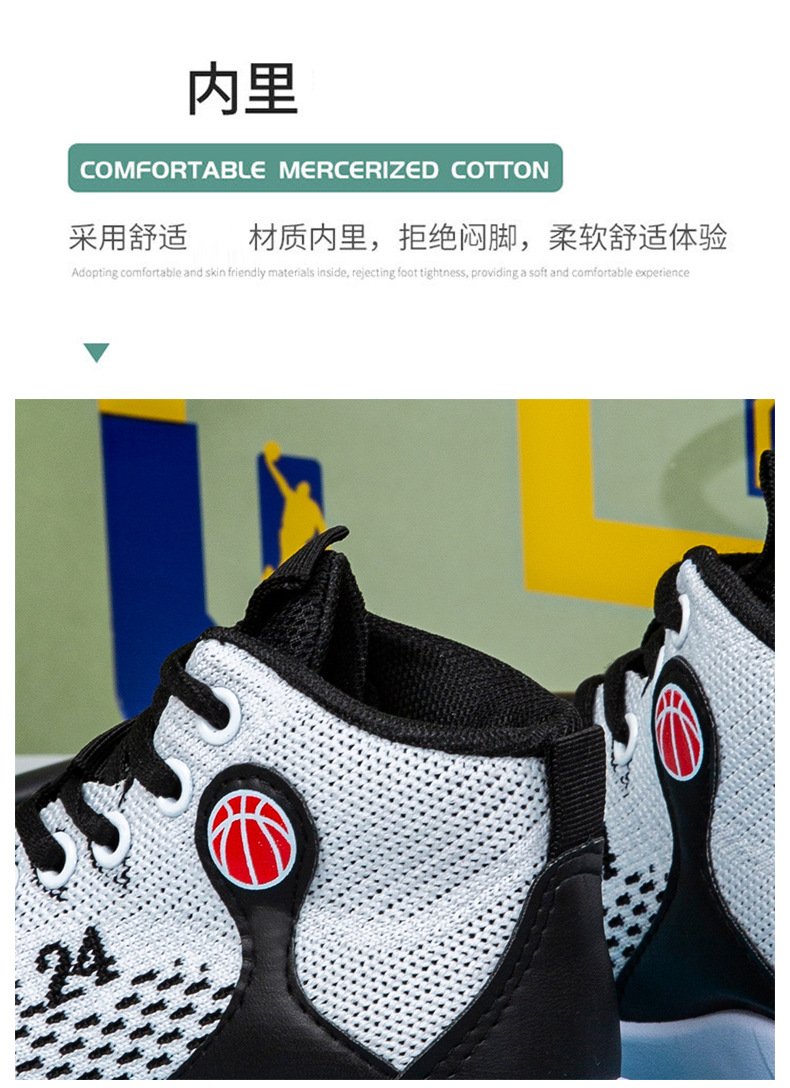 크로스보더 농구화, 봄여름 아웃도어 트렌디 런닝화, 미드탑 두꺼운 밑창, 리바운드 기능이 있는 플라이니트 메쉬 소재, 캐주얼 스포츠 남성화