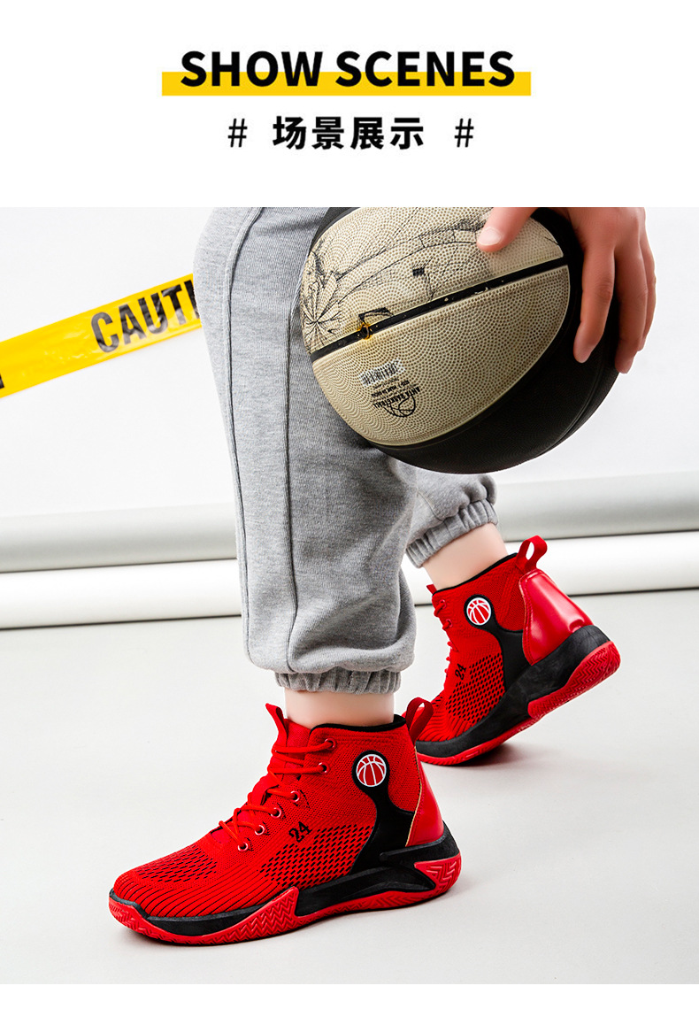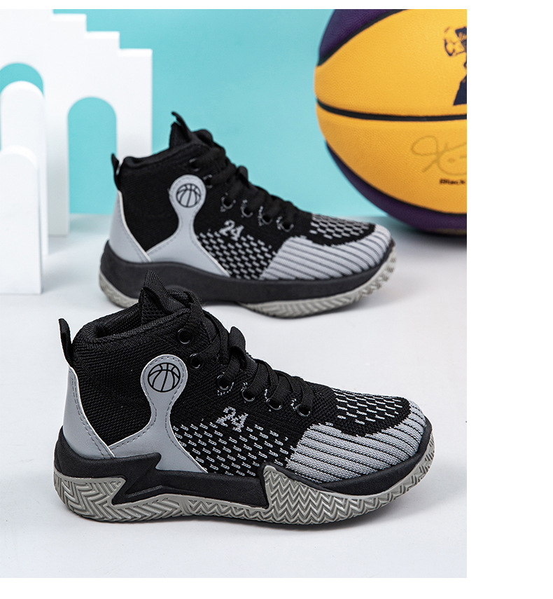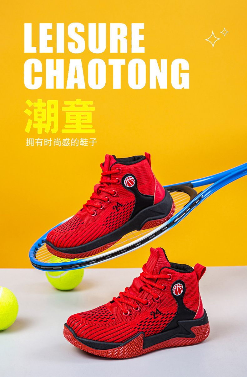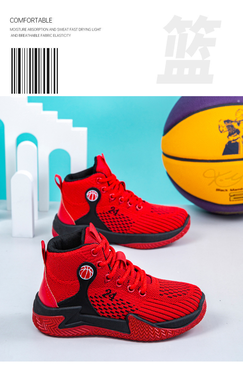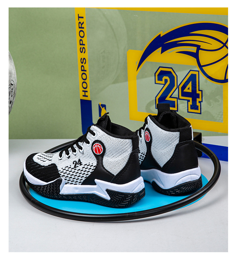 크로스보더 농구화, 봄여름 아웃도어 트렌디 런닝화, 미드탑 두꺼운 밑창, 리바운드 기능이 있는 플라이니트 메쉬 소재, 캐주얼 스포츠 남성화