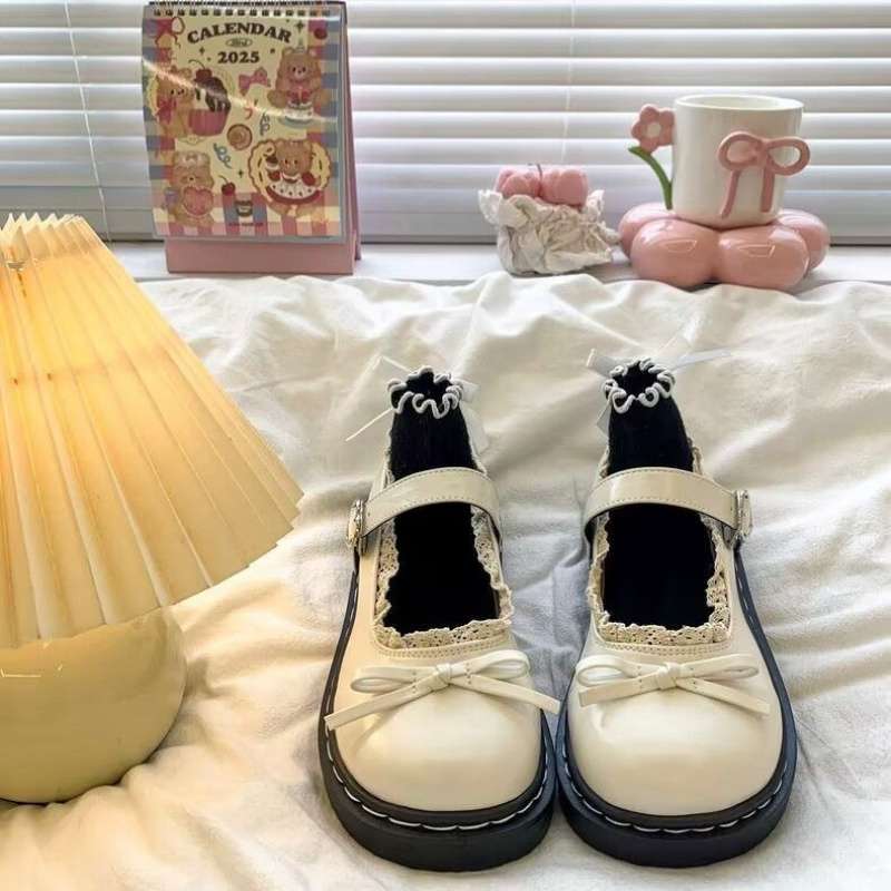 여성을위한 흰색 플랫 가죽 신발 2025 봄 신입생 다목적 로리타 일본 jk 메리 제인 신발