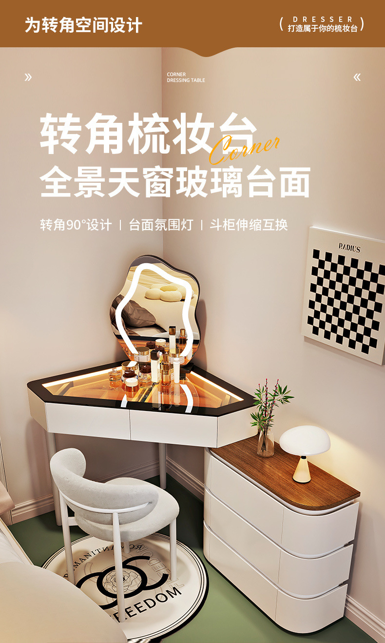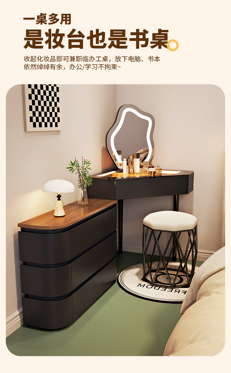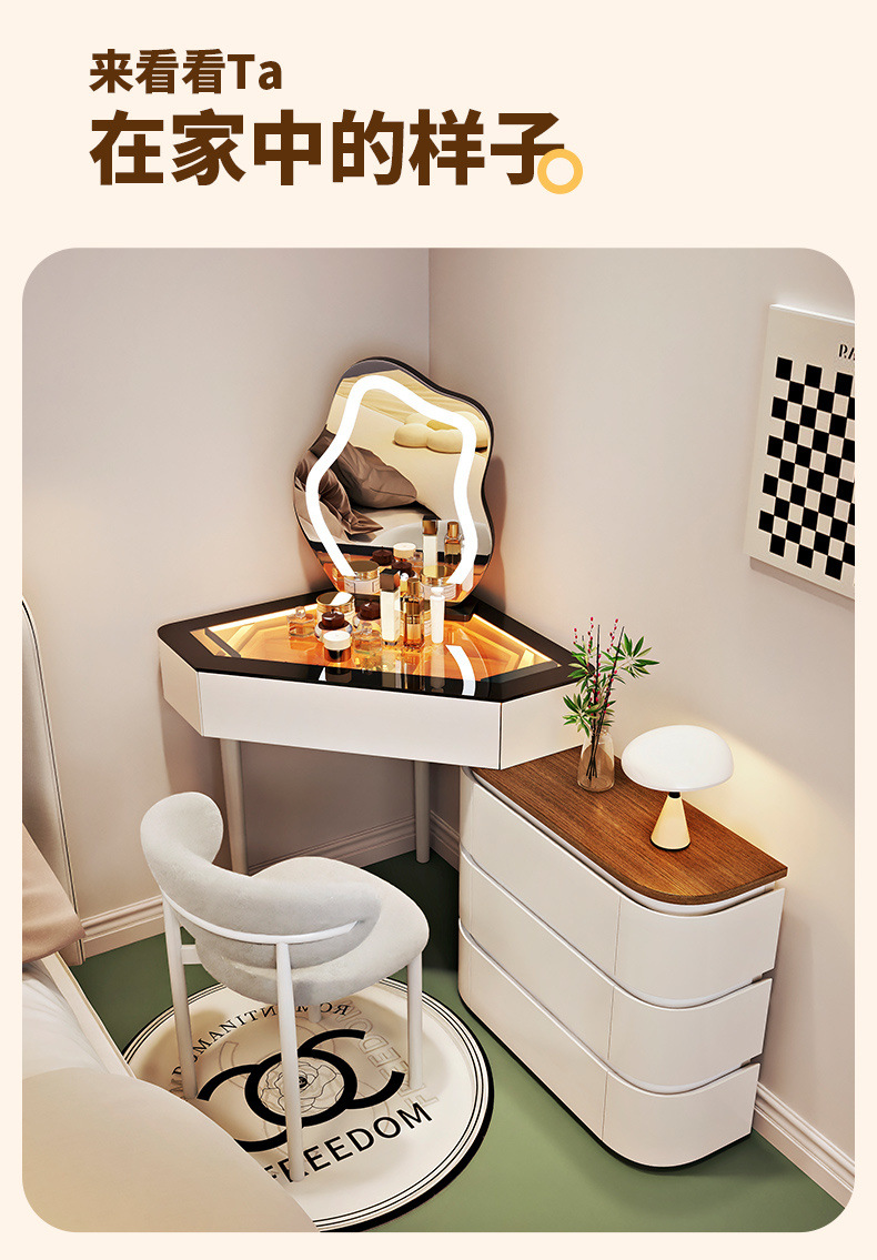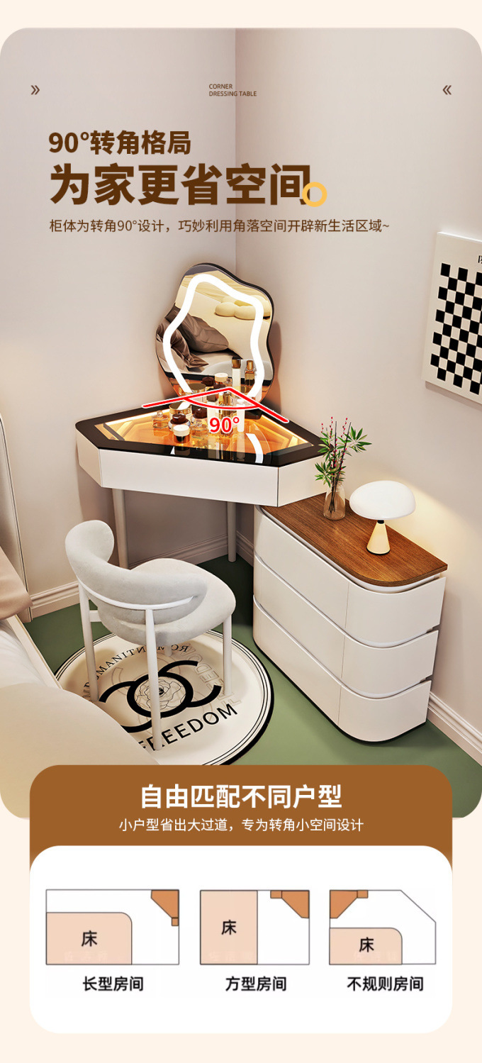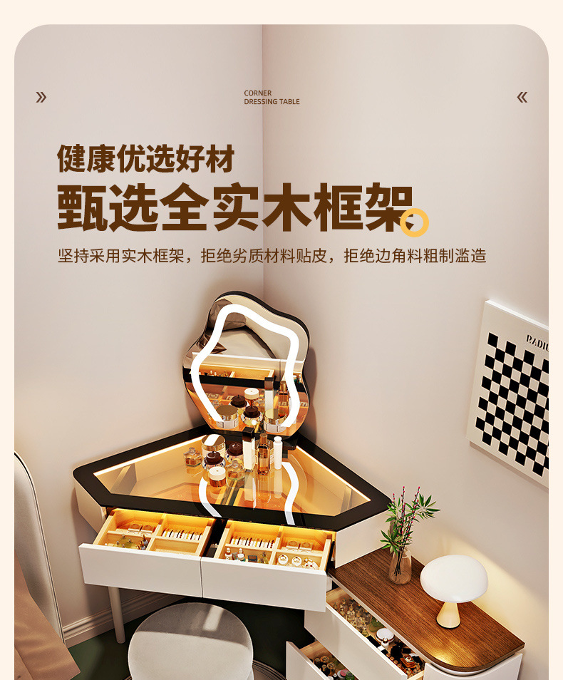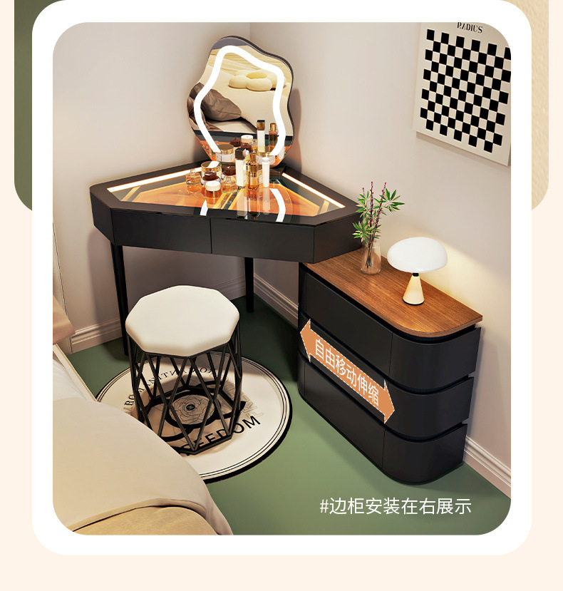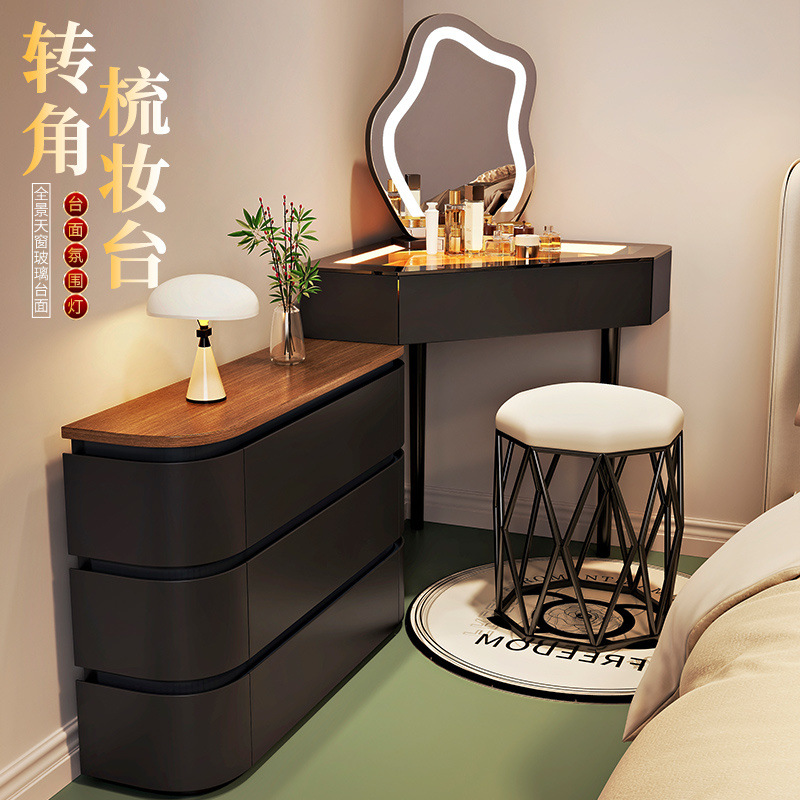 2024 새로운 단단한 나무 작은 코너 드레싱 테이블 삼각형 버킷 캐비닛 통합 홈 침실 코너 드레싱 테이블 침대