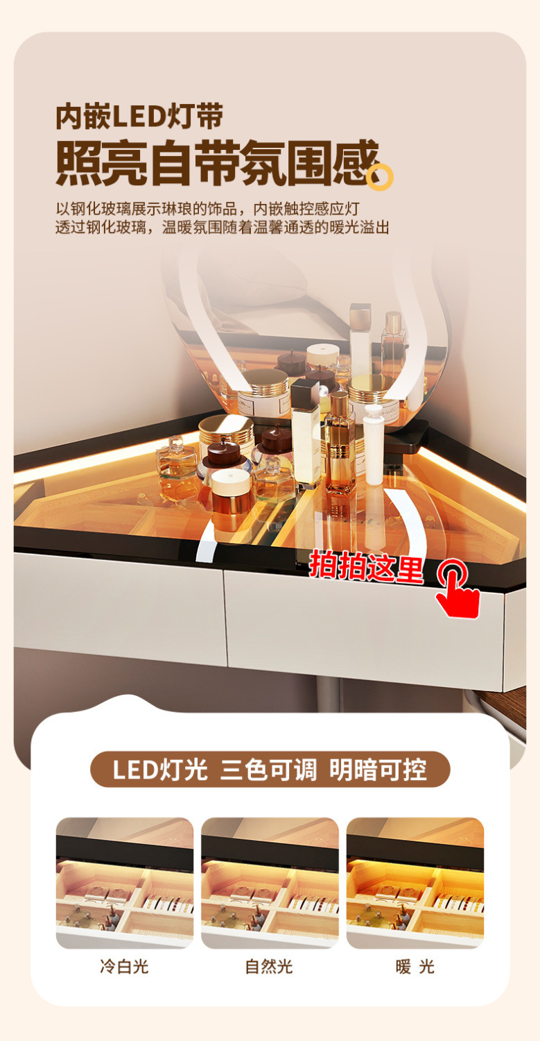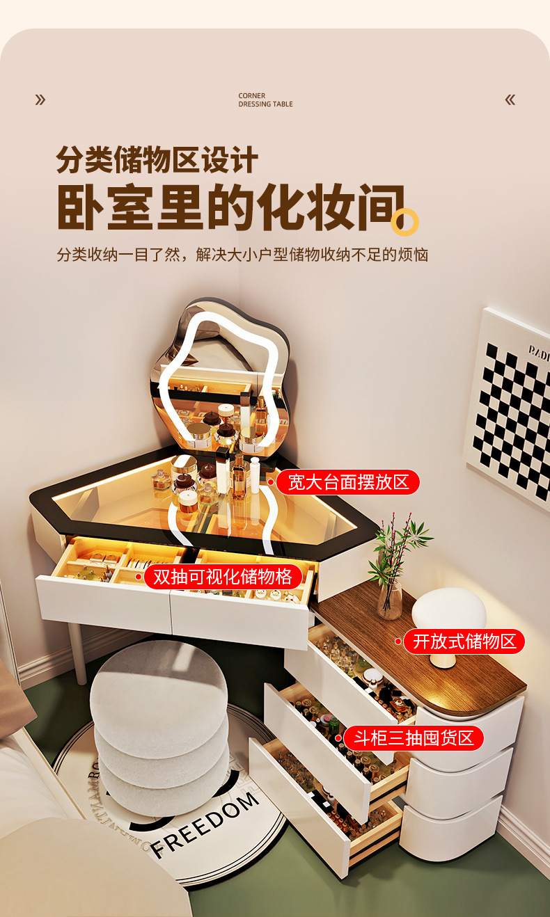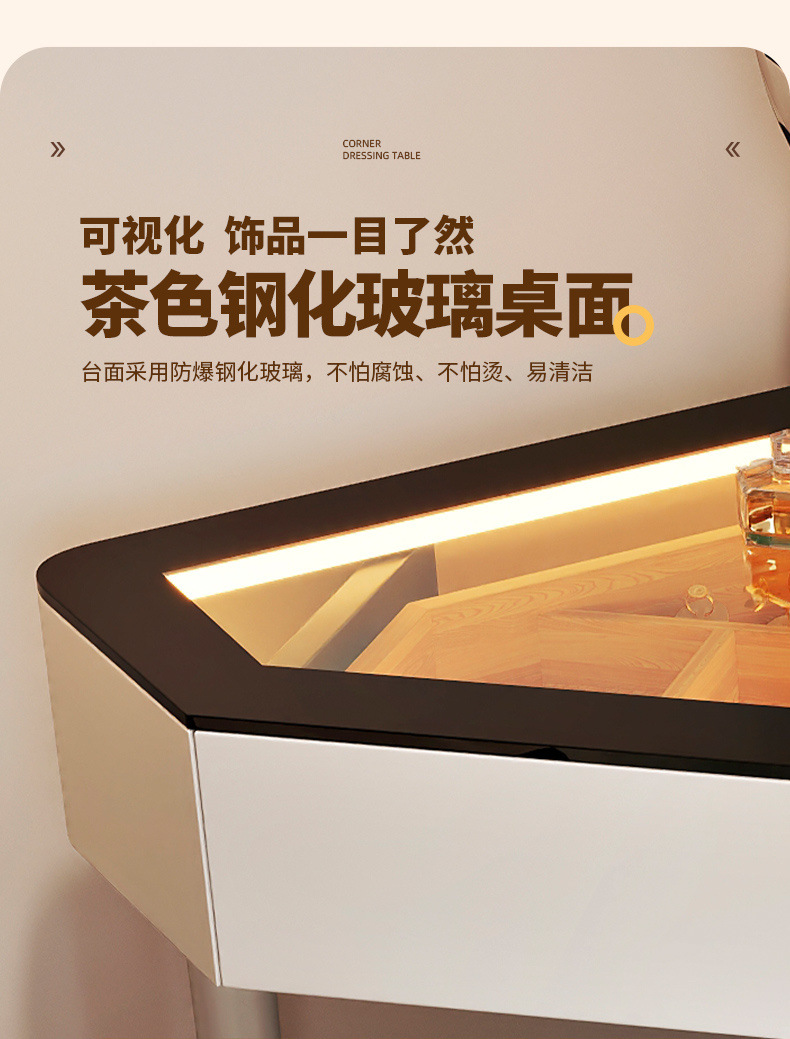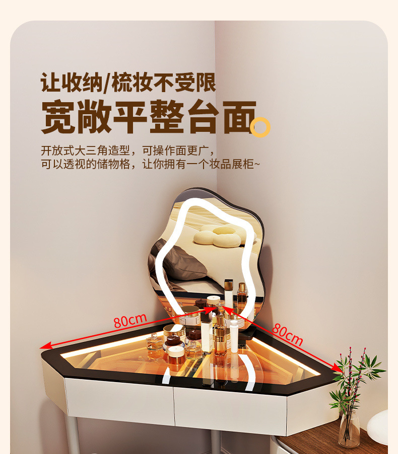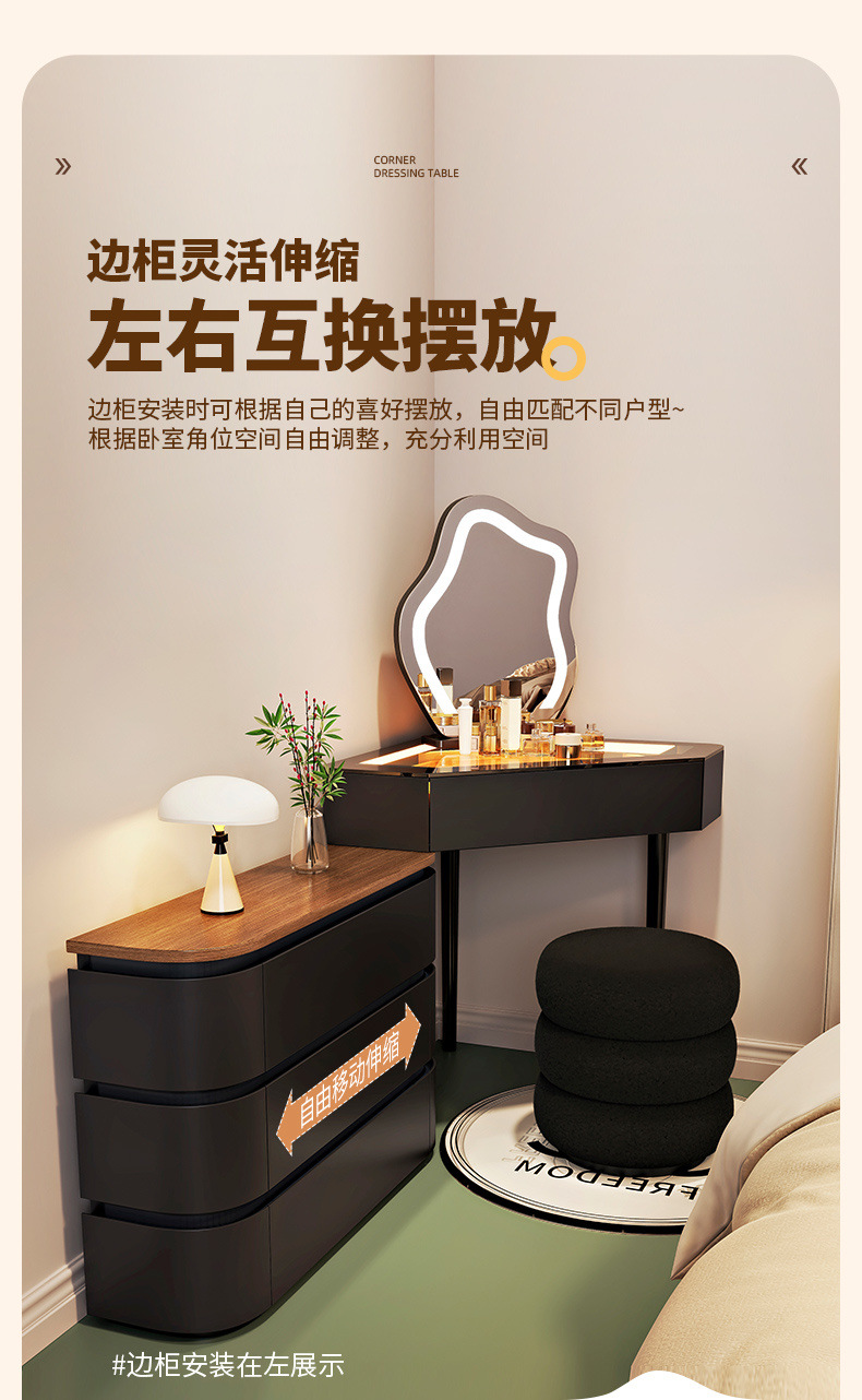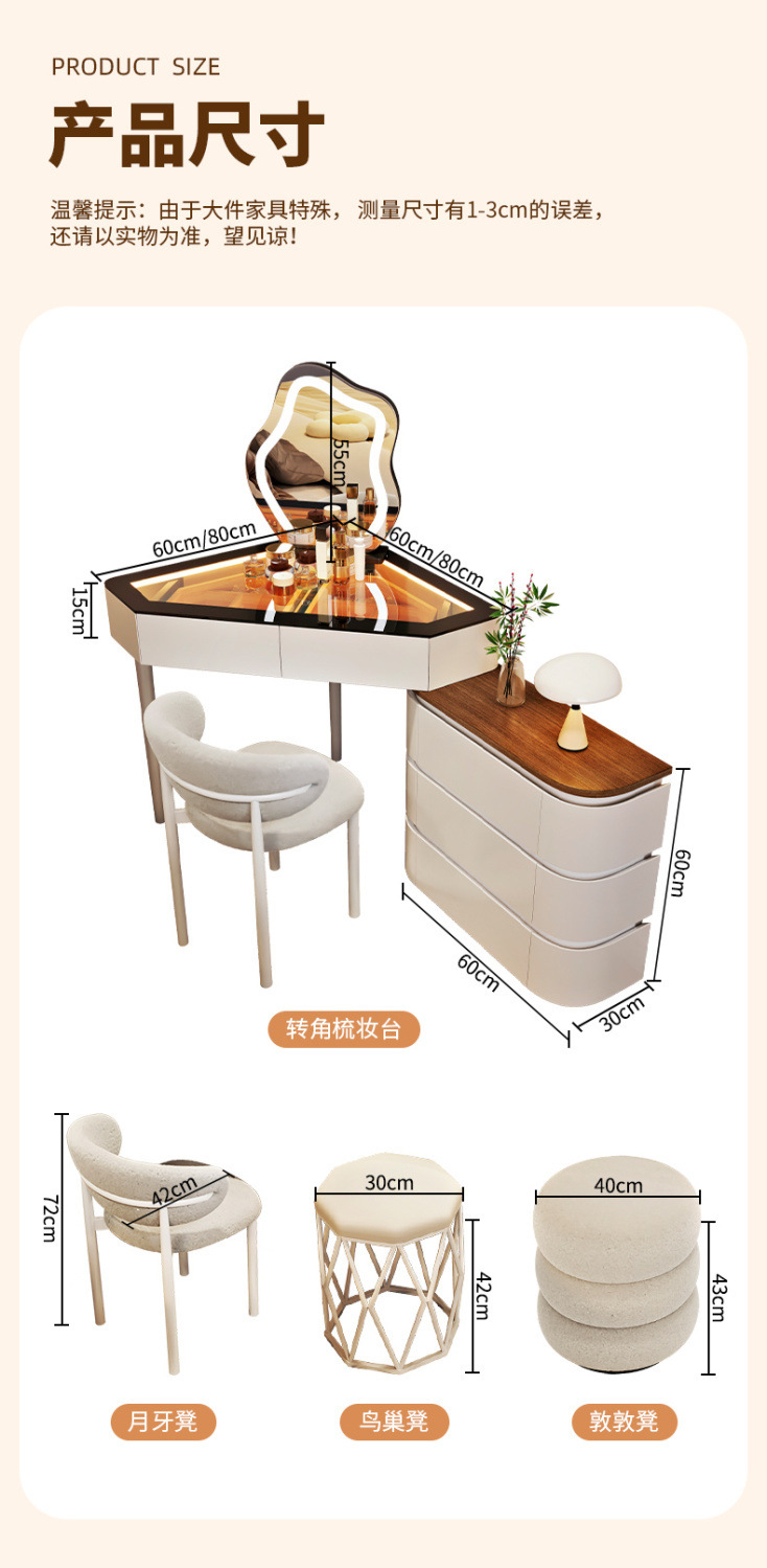 2024 새로운 단단한 나무 작은 코너 드레싱 테이블 삼각형 버킷 캐비닛 통합 홈 침실 코너 드레싱 테이블 침대