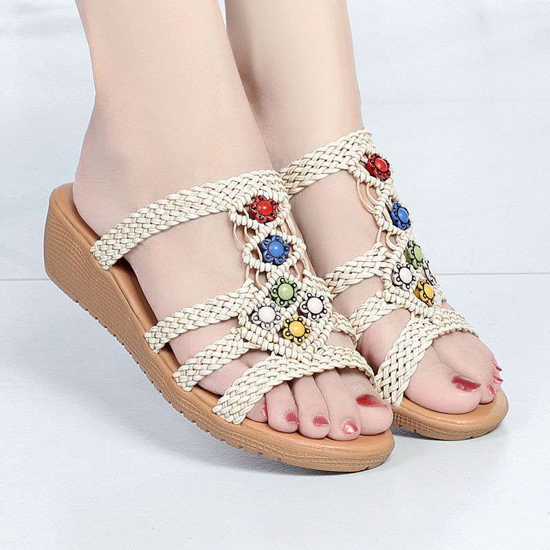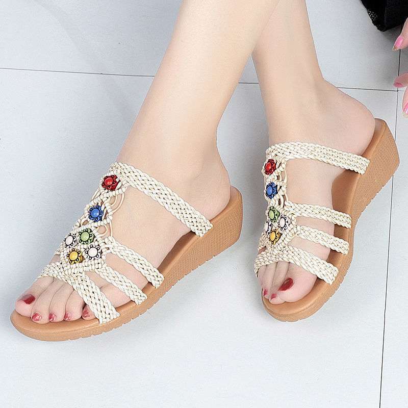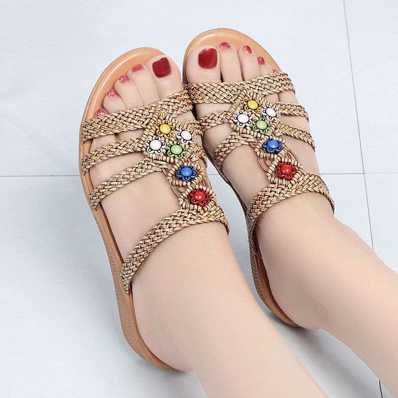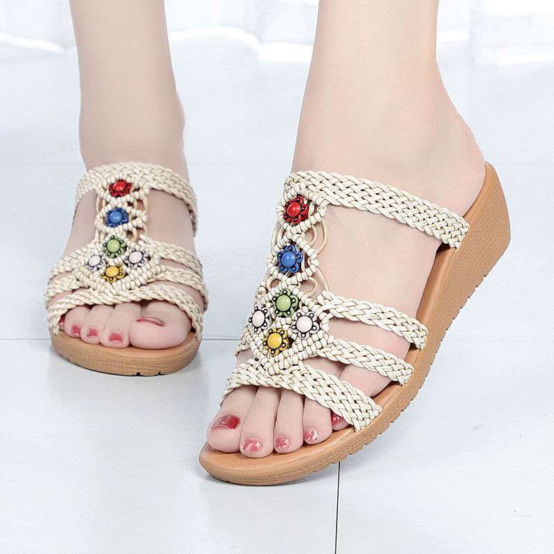 샌들 슬리퍼 여성 민족 스타일 여성 여름 패션 새로운 겉옷 플랫 신발 웨지 비치 샌들 슬리퍼