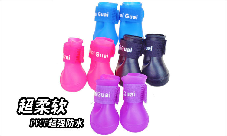 完美的漏斗形设计,使穿脱更加方便牢靠;独特的魔术贴设计,牢牢包裹住狗狗脚踝,减少雨水从鞋口渗入;底部花底纹,防滑增加摩擦力,宝宝们可以尽情的奔跑、玩耍有