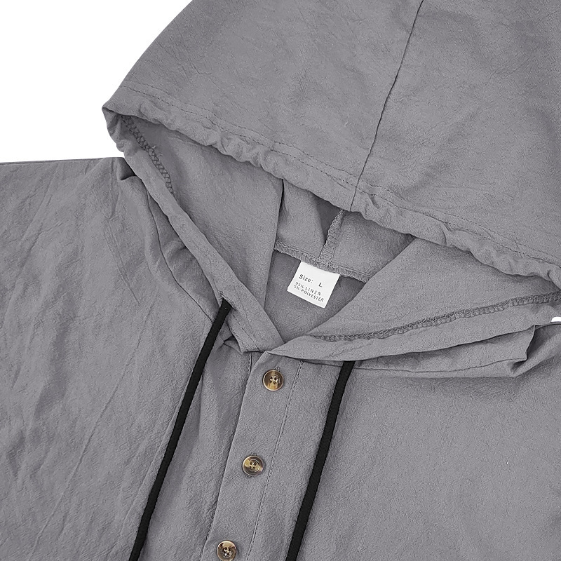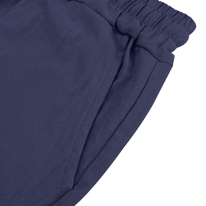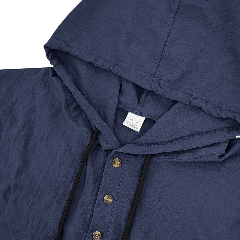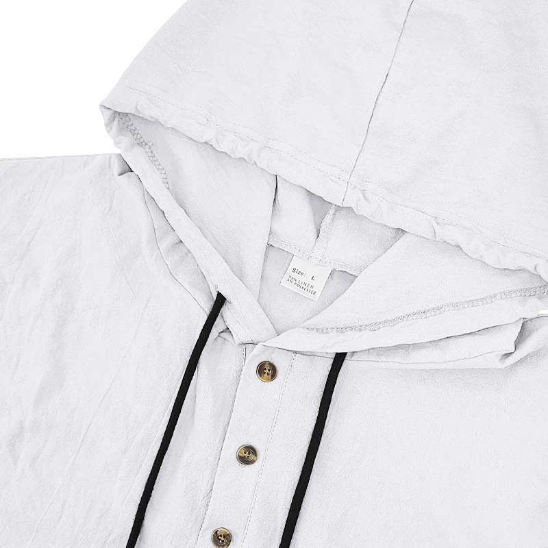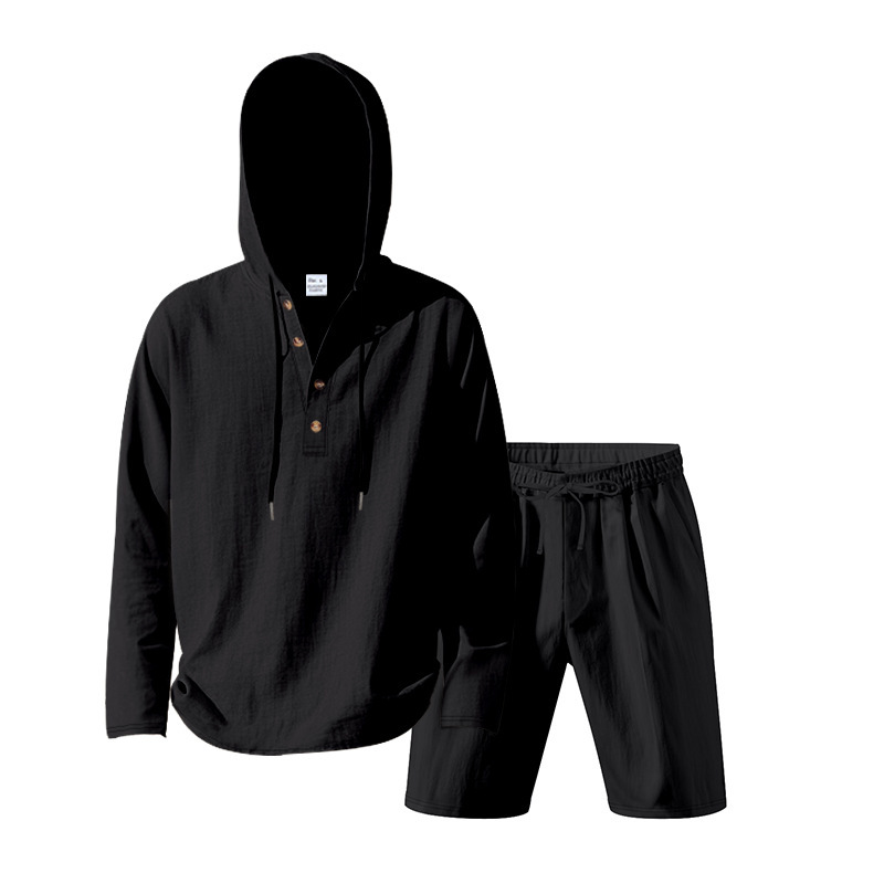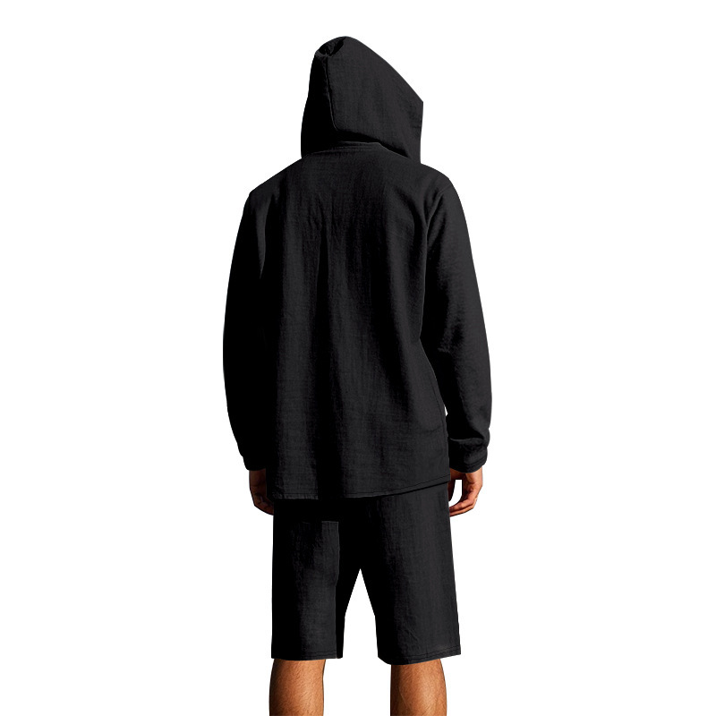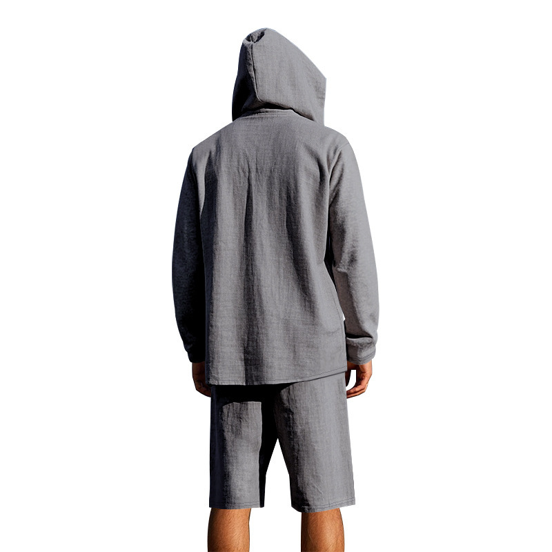 产品风格,美式夏季男士沙滩亚麻连帽短袖短裤套装