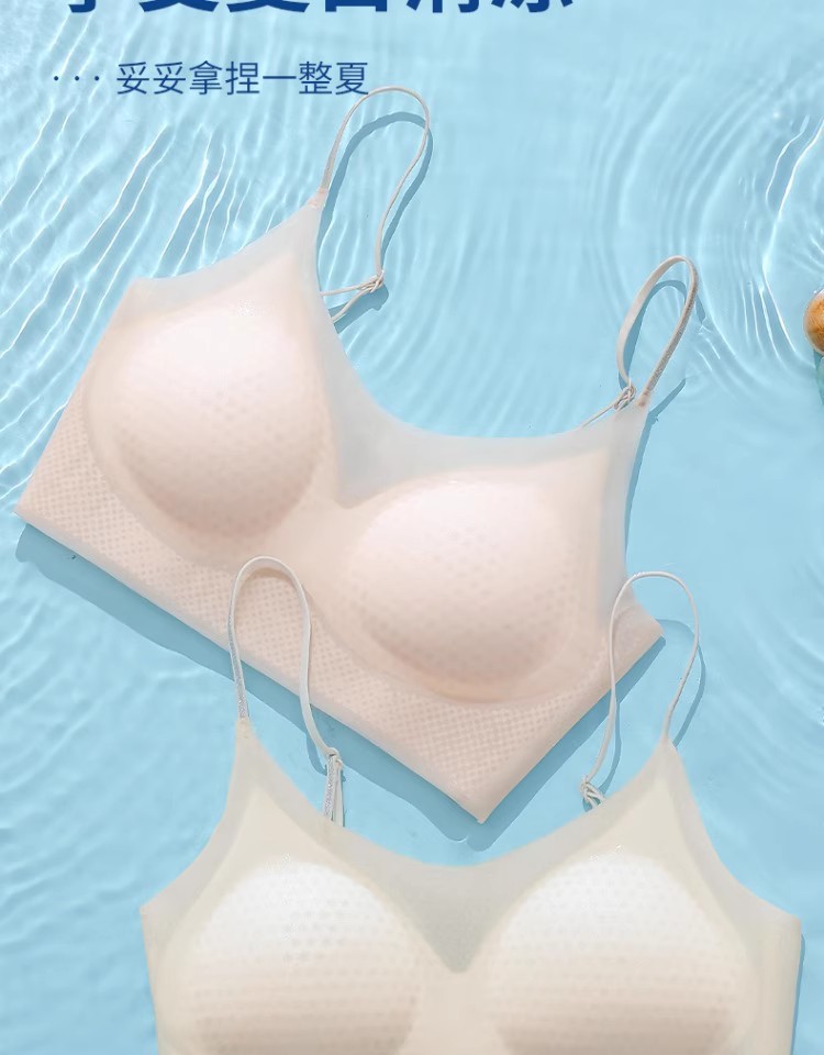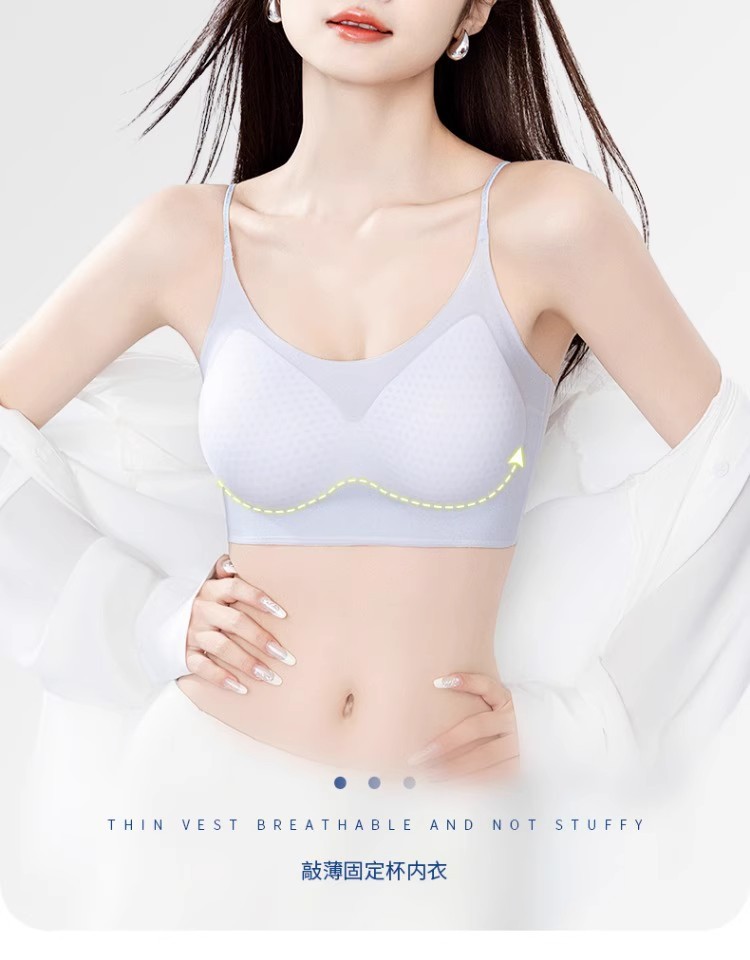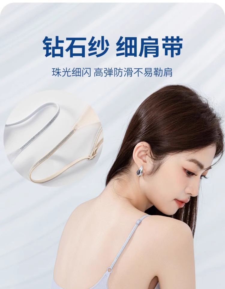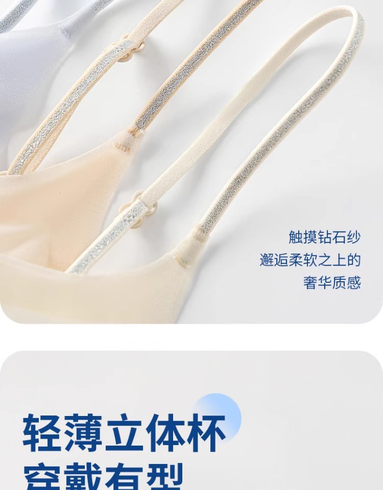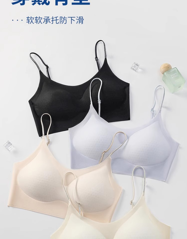 반짝이는 스파게티 스트랩, 여성용 초박형 속옷, 부드러운 지지력, 통기성, 피부 친화적인, 이음매 없는 브라, 와이어 없음, 아이스 실크, 아름다운 등
