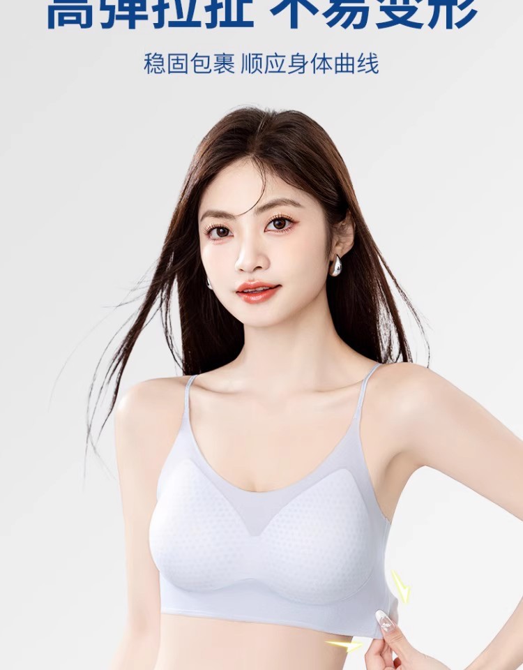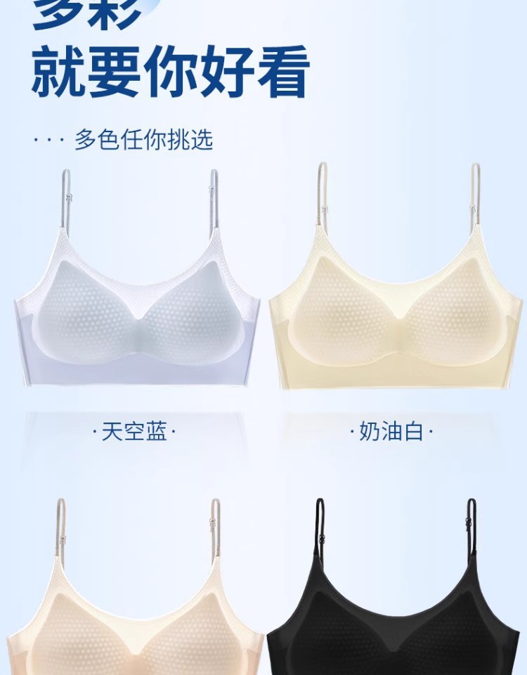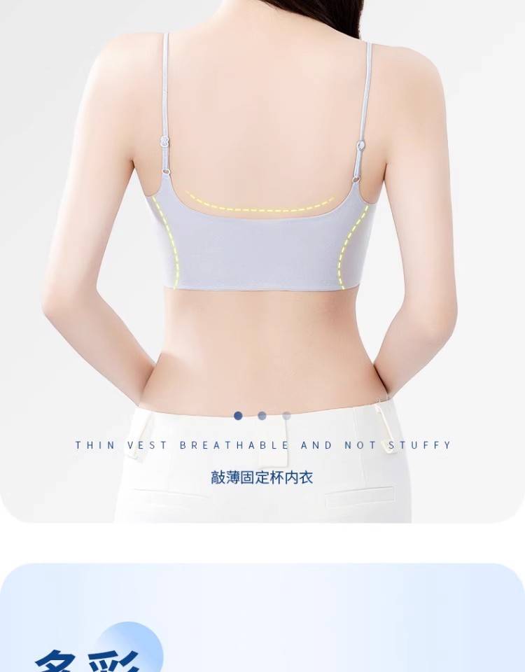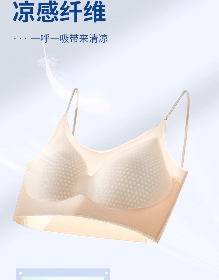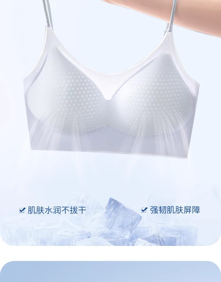 반짝이는 스파게티 스트랩, 여성용 초박형 속옷, 부드러운 지지력, 통기성, 피부 친화적인, 이음매 없는 브라, 와이어 없음, 아이스 실크, 아름다운 등