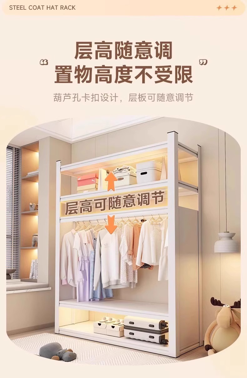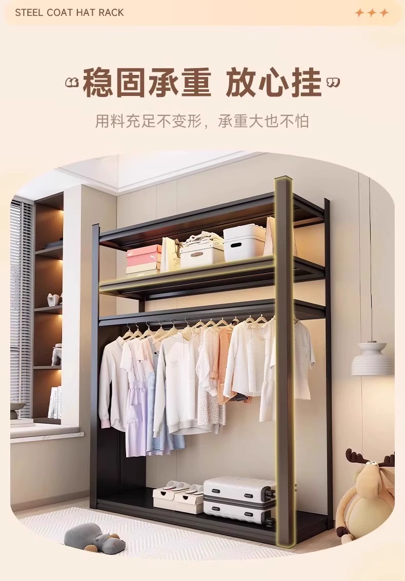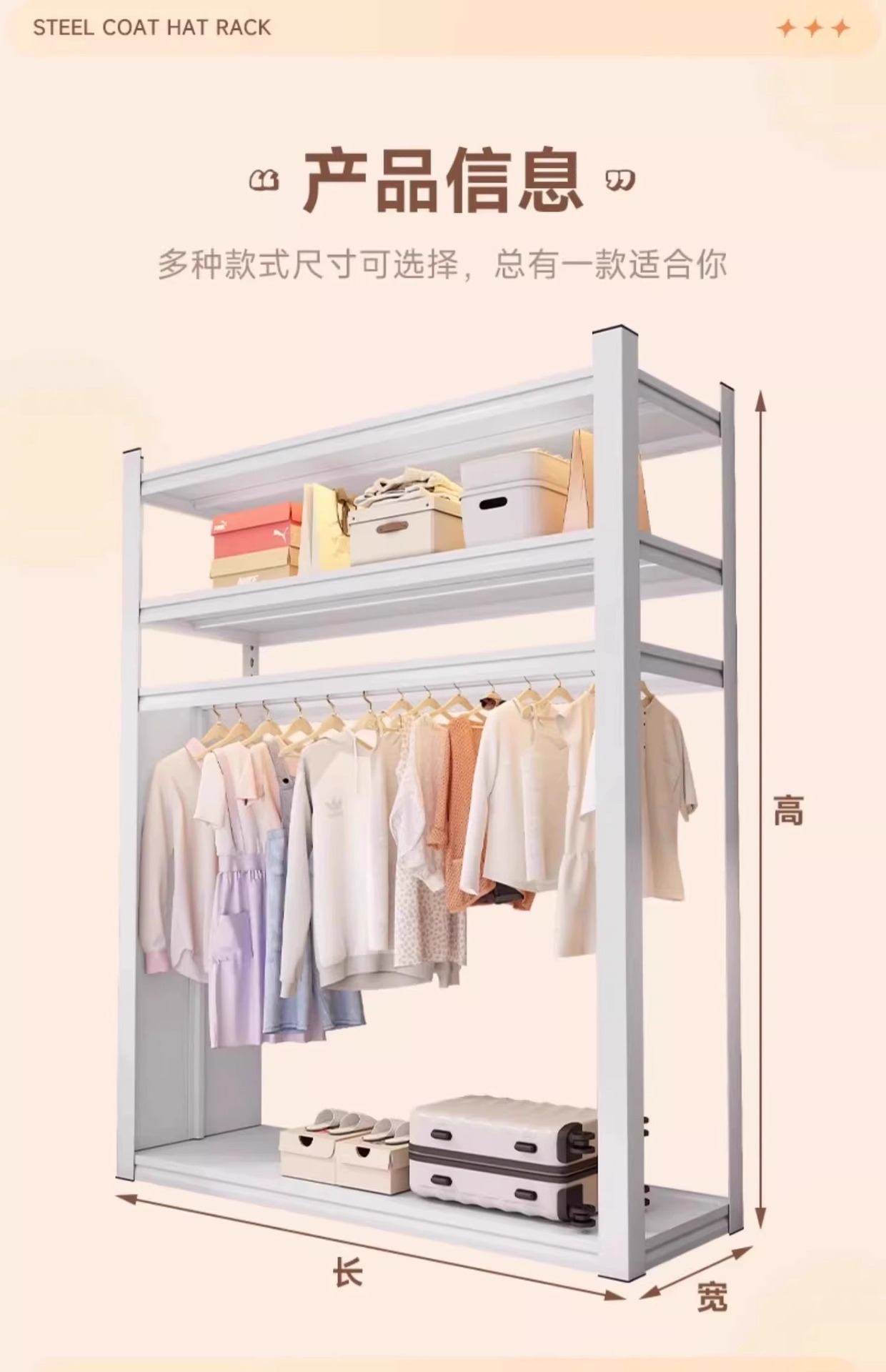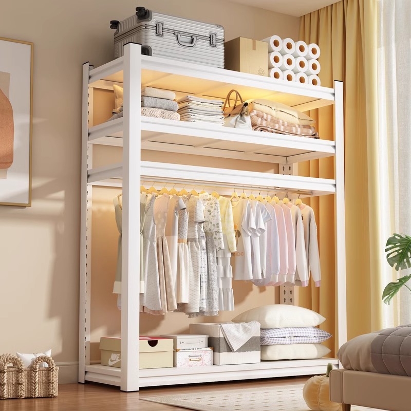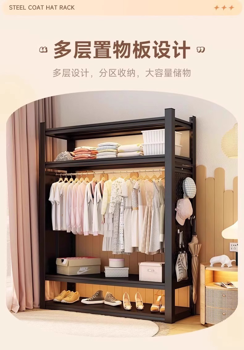 가정용 보관 선반 선반 옷장 간단한 조립 개방형 침실 옷걸이 가정용 발코니 보관 철 선반