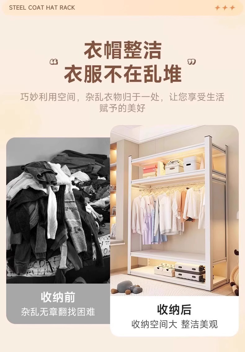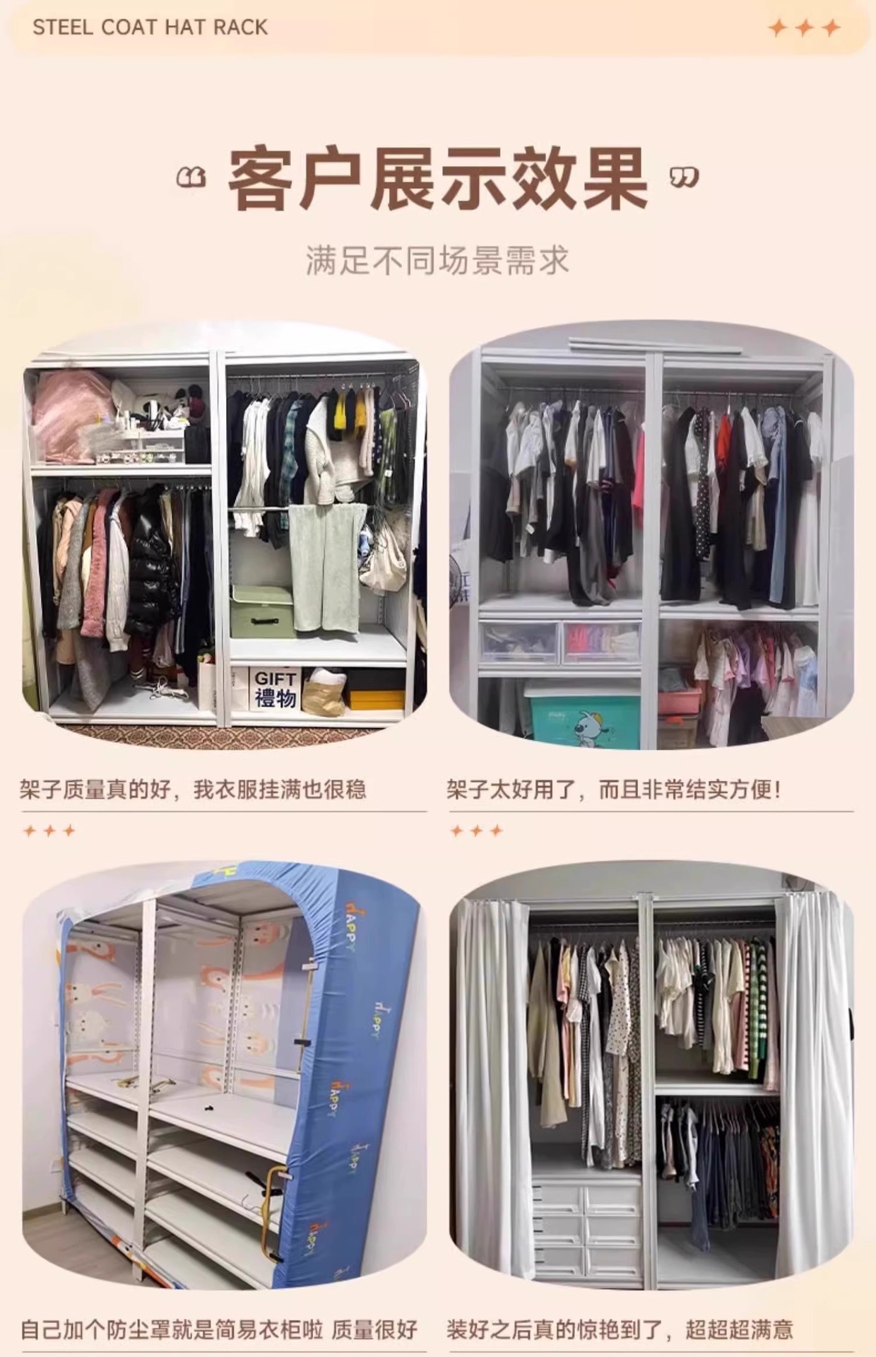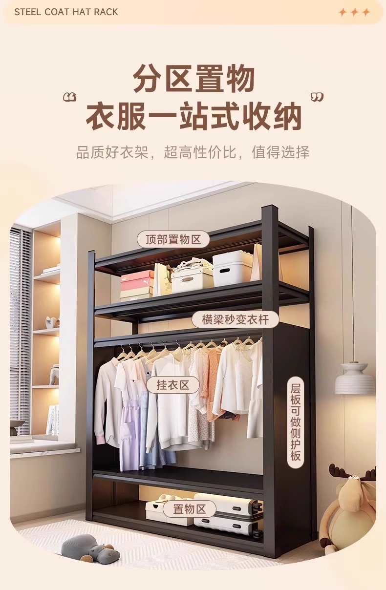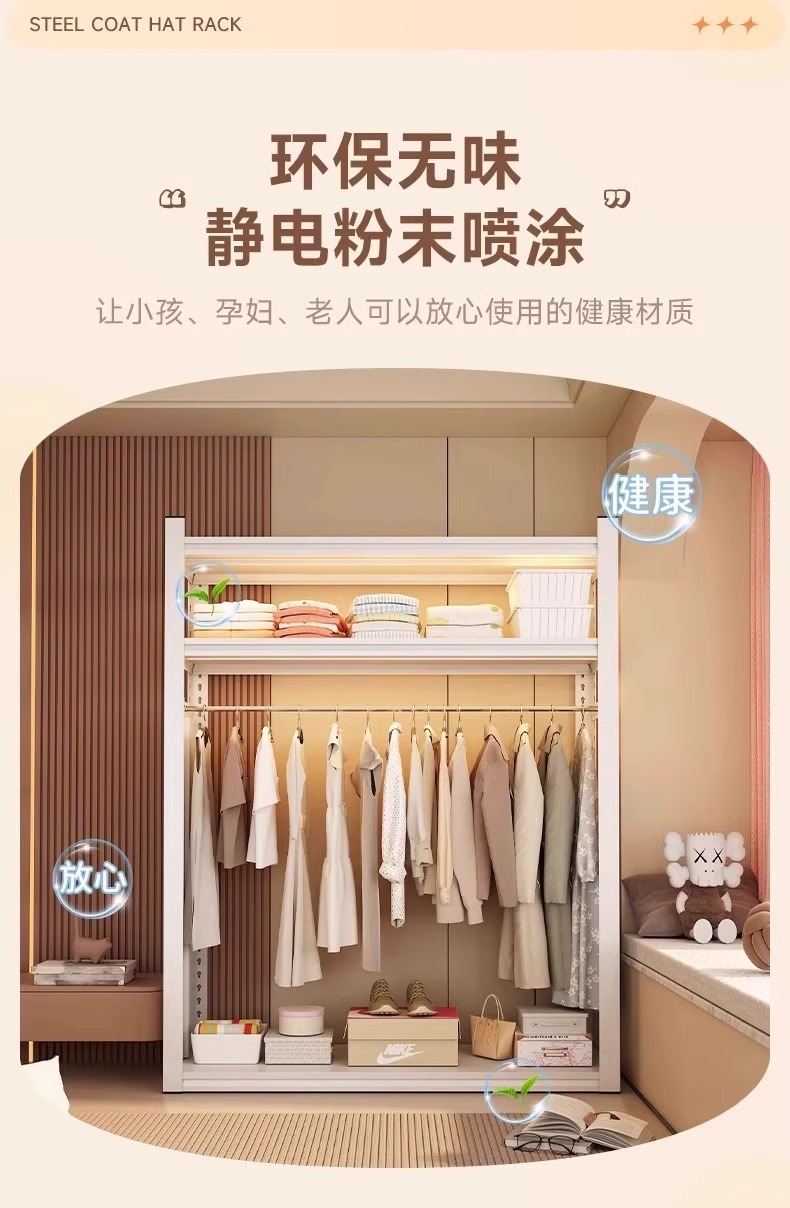 가정용 보관 선반 선반 옷장 간단한 조립 개방형 침실 옷걸이 가정용 발코니 보관 철 선반