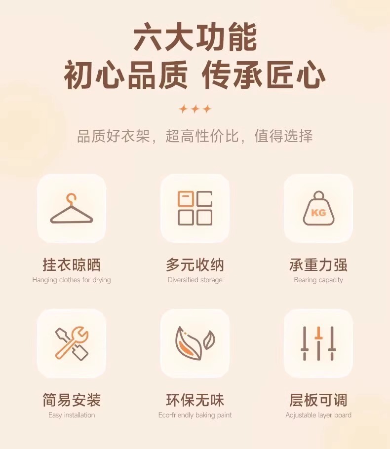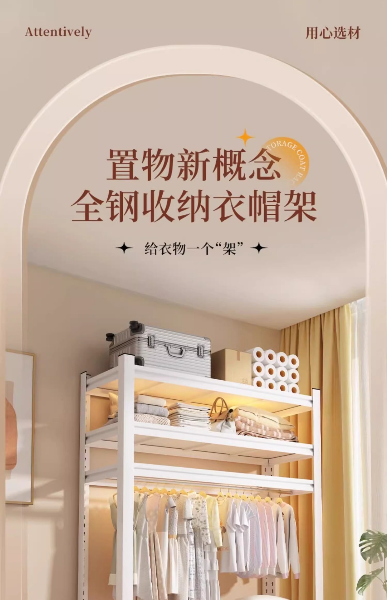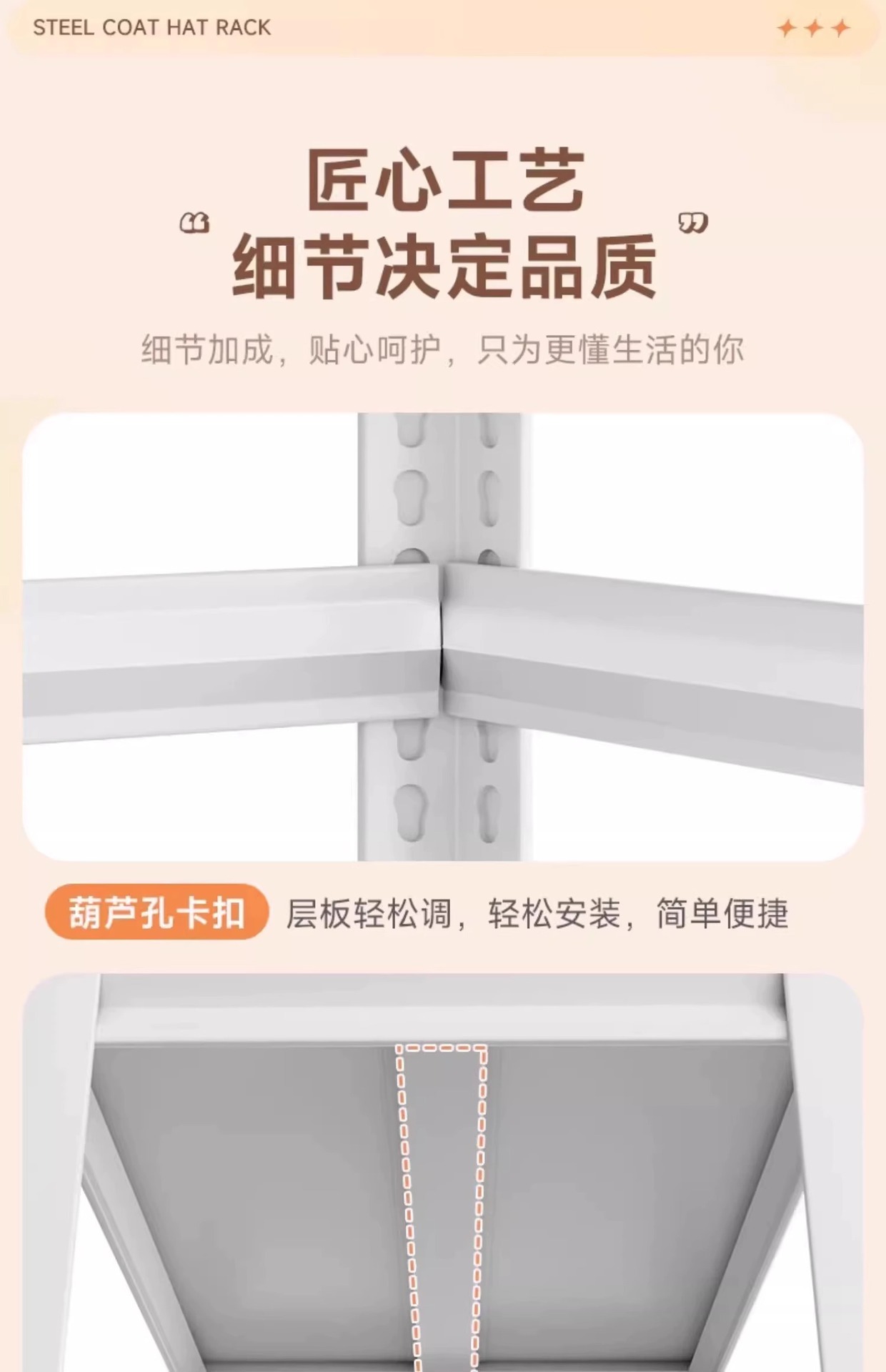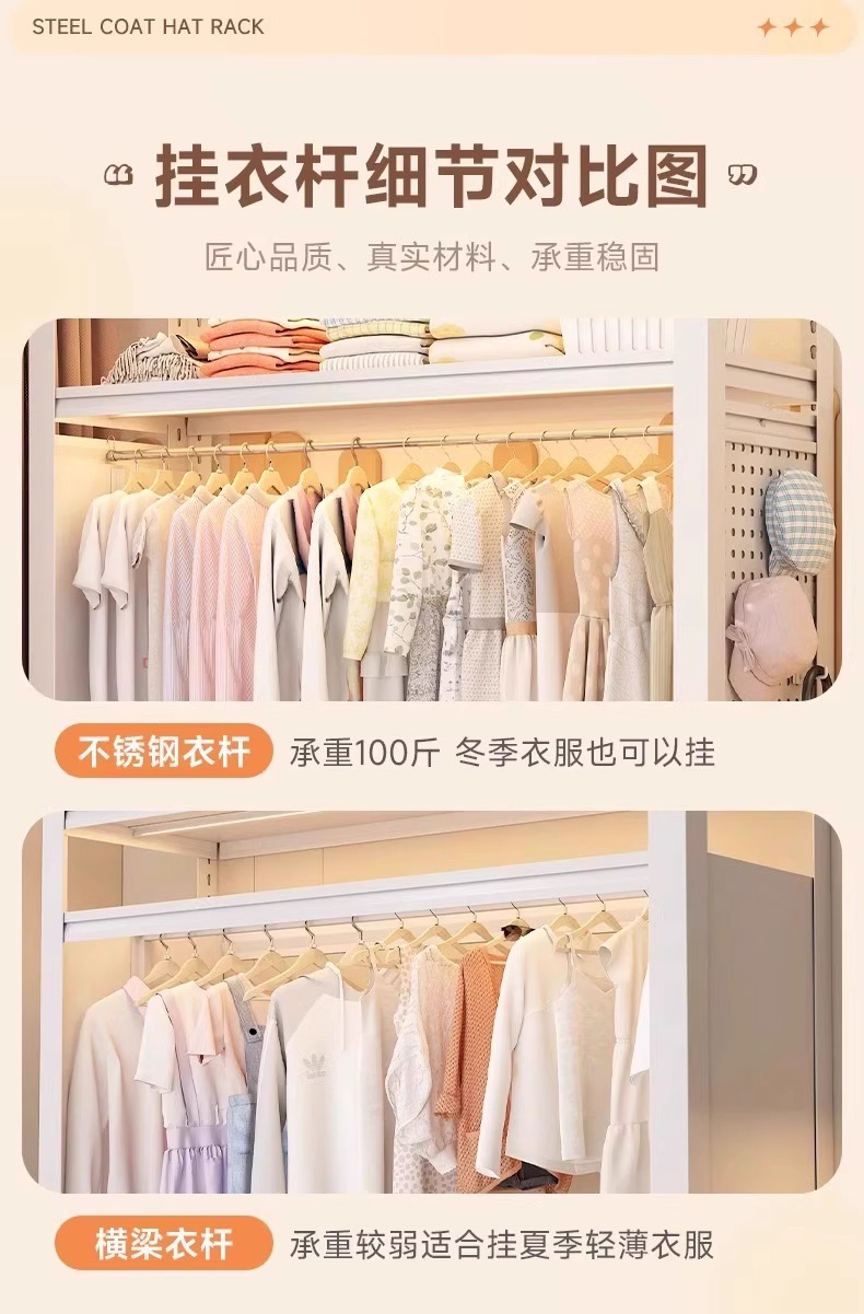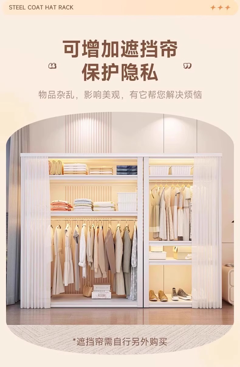 가정용 보관 선반 선반 옷장 간단한 조립 개방형 침실 옷걸이 가정용 발코니 보관 철 선반