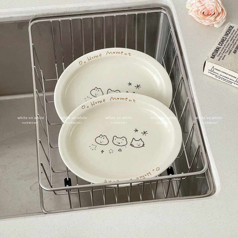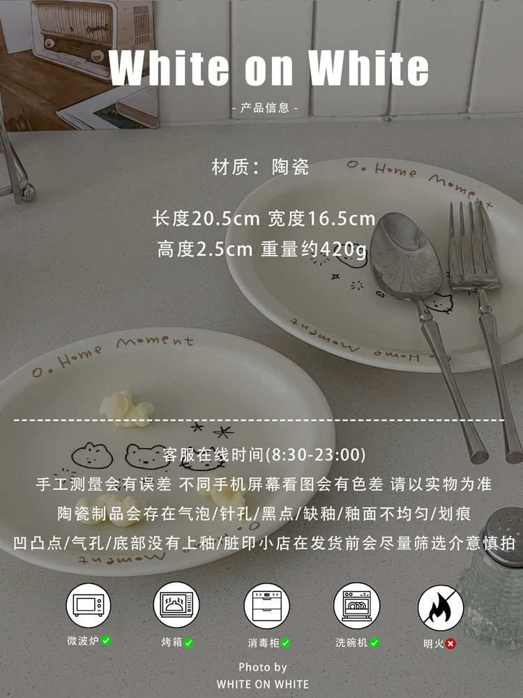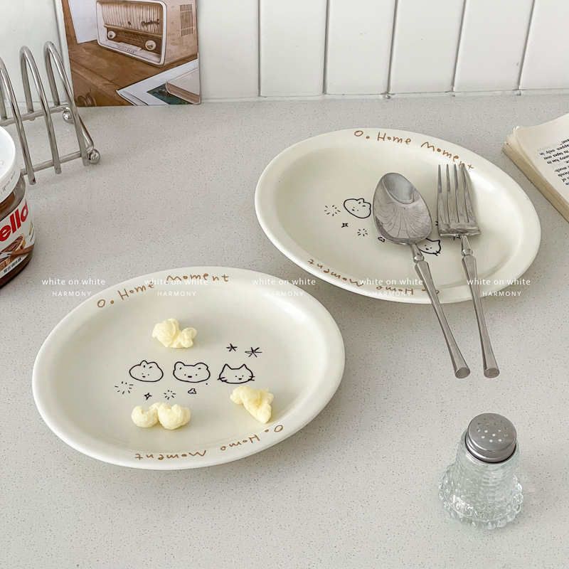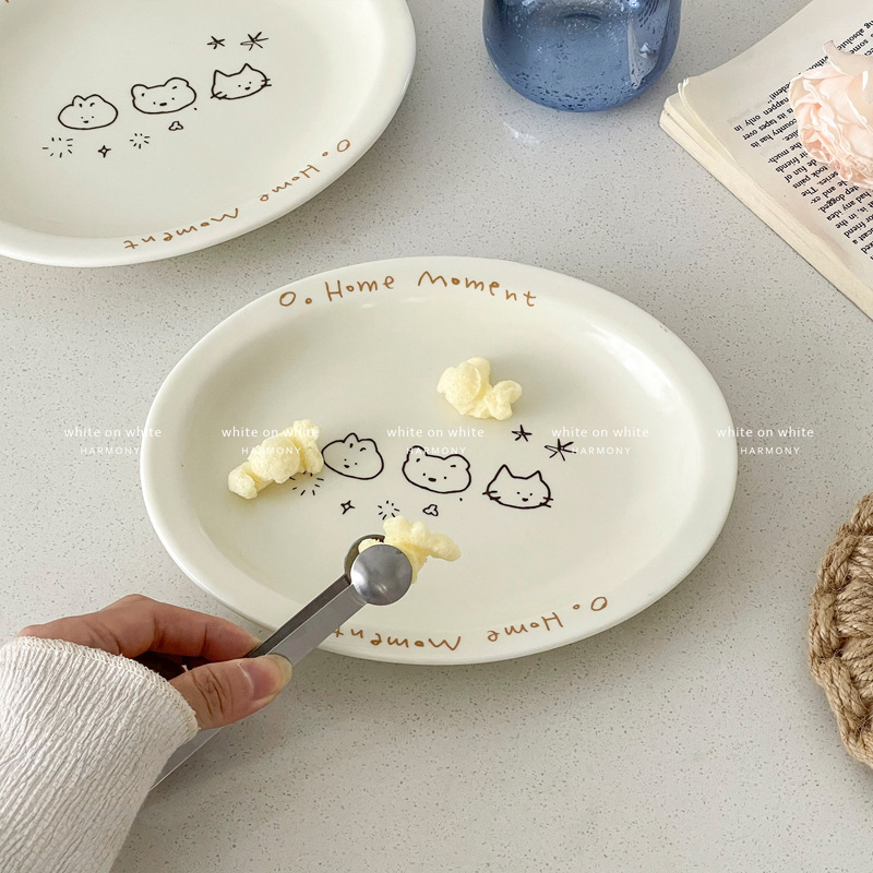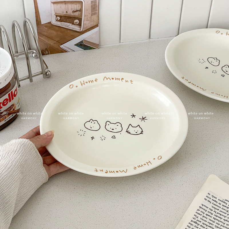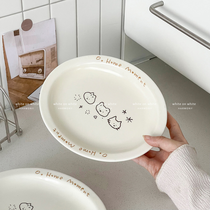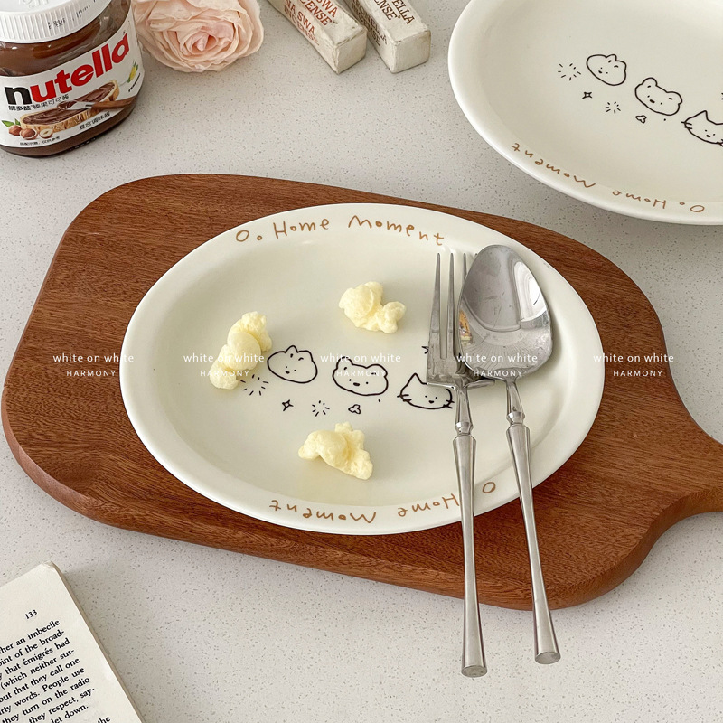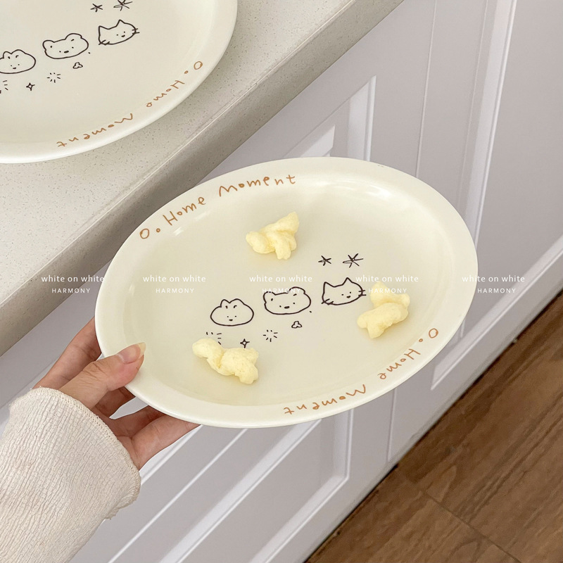 피쉬 플레이트 가정용 2025 새로운 플레이트 라이트 럭셔리 하이 엔드 타원형 플레이트 크림 스타일 식기 세라믹 딤디저트 플레이트
