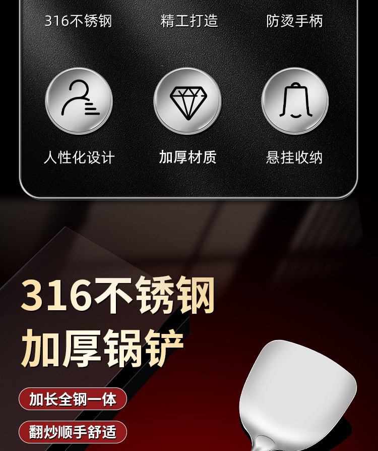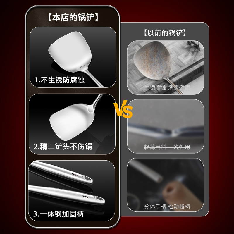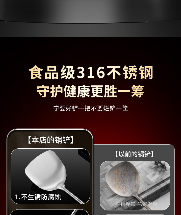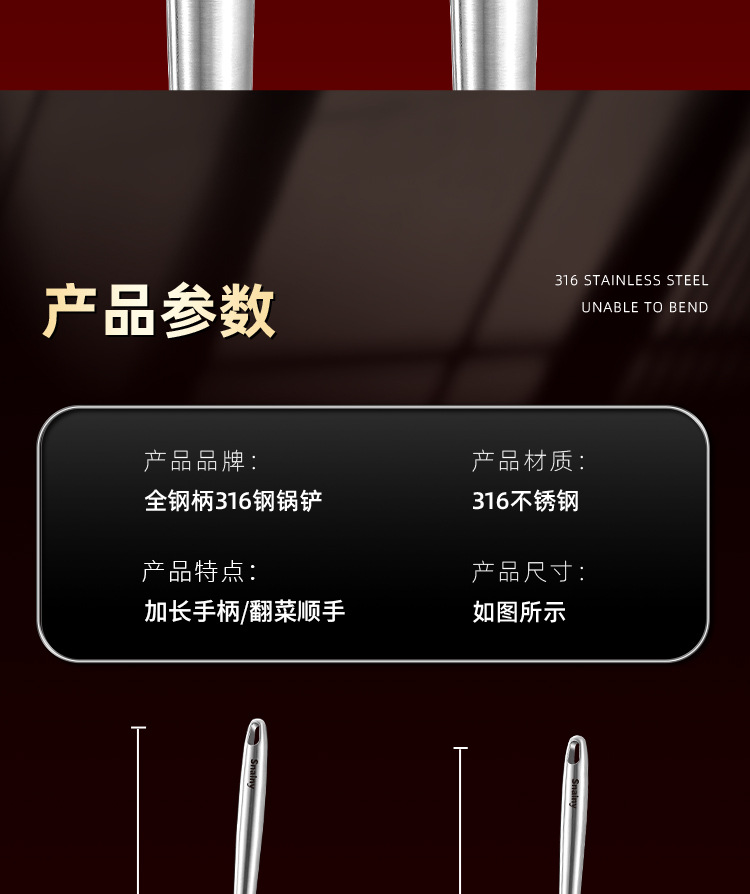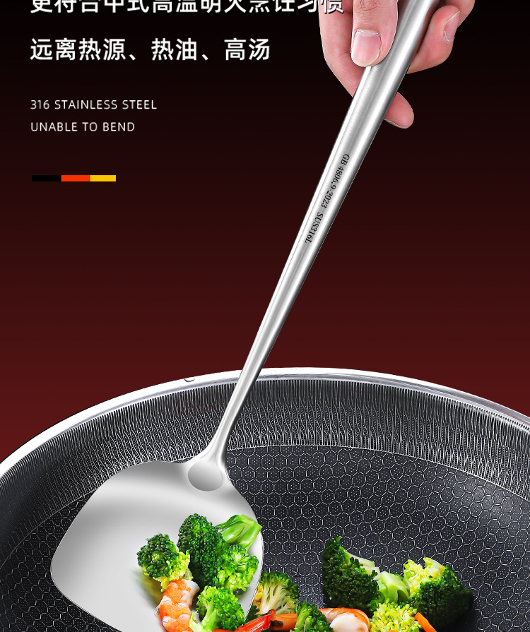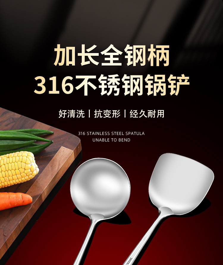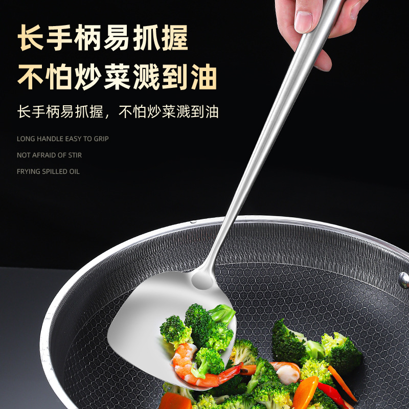 가정용 냄비용 확장형 316 스테인레스 스틸 주걱, 두꺼운 대형 스푼, 긴 손잡이 프라이팬 스푼 세트 도매
