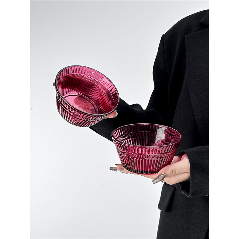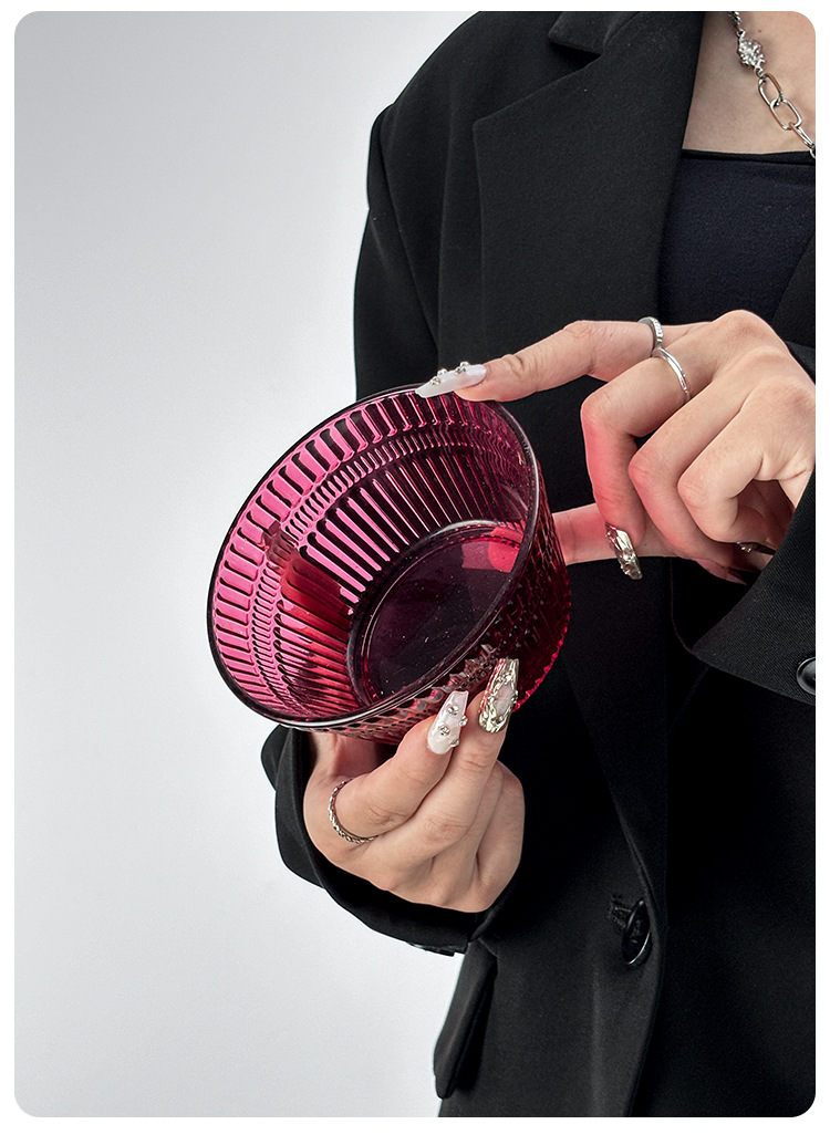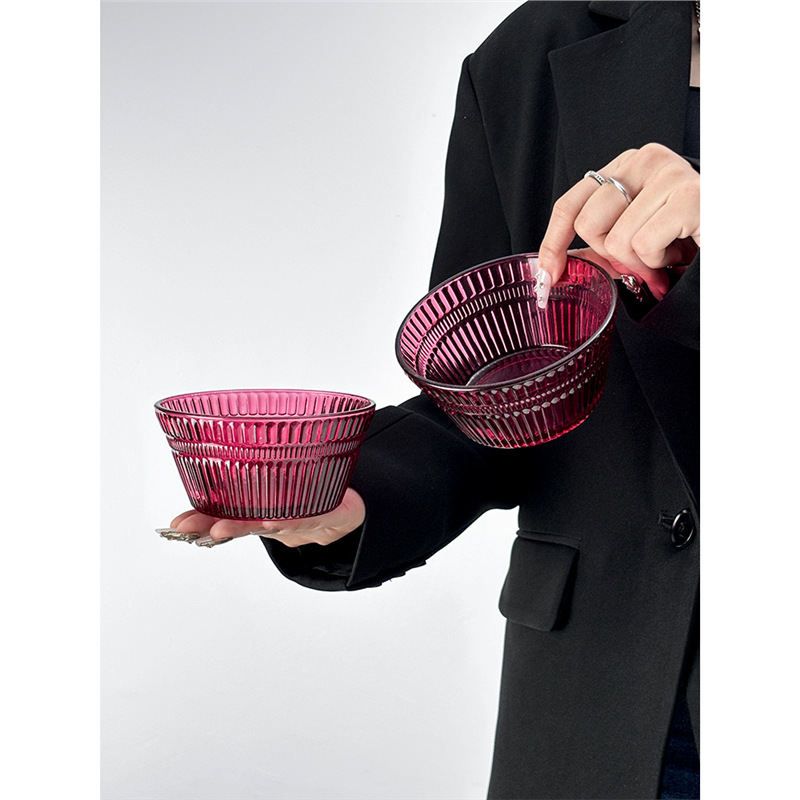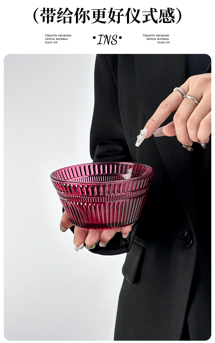 Ins 스타일 로즈 레드 수직 패턴 아이스크림 컵 홈 요구르트 컵 디저트 그릇 아침 식사 그릇 샐러드 그릇 높은 유리 컵