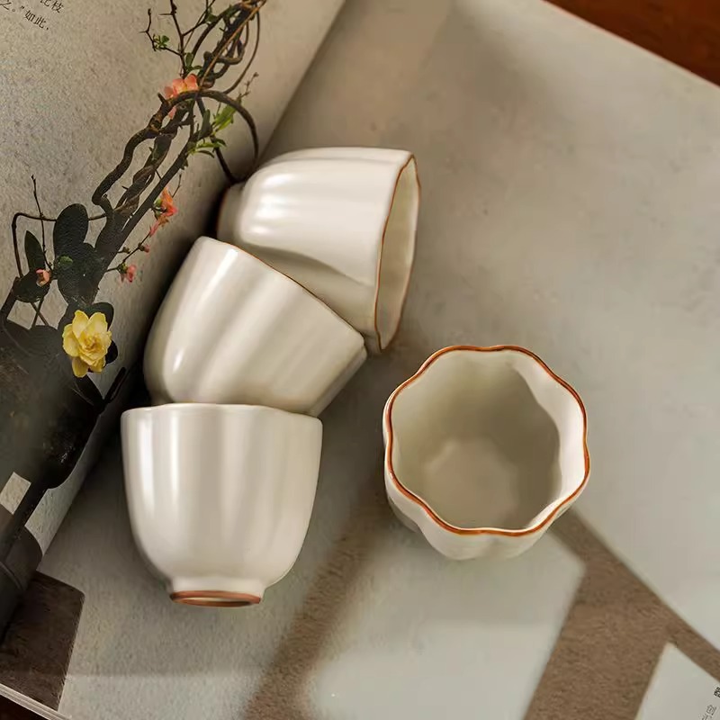 베이지색 루오도자기 찻잔, 마스터컵, 고급 싱글컵, 꽃잎 찻잔, 대형 루도자기 찻잔, 일본식 찻그릇
