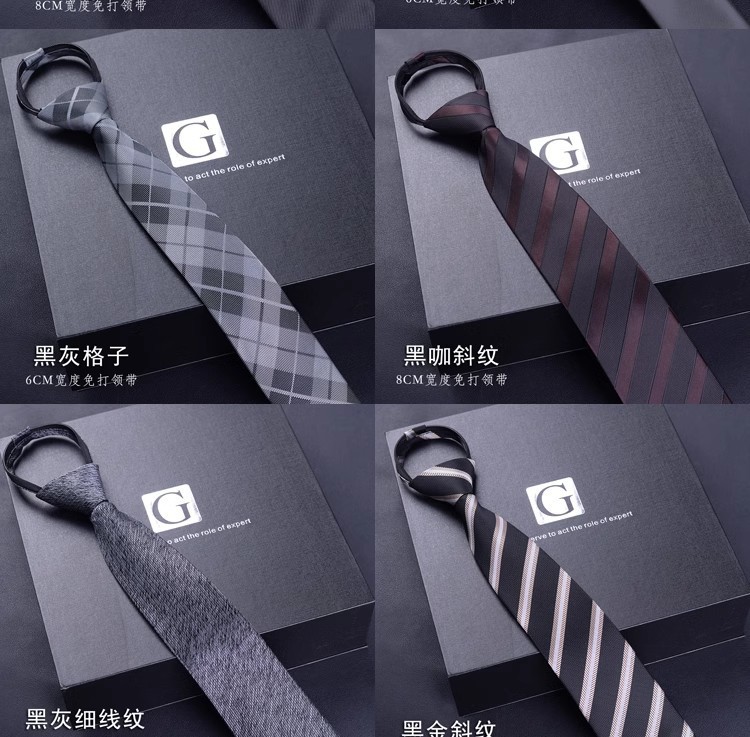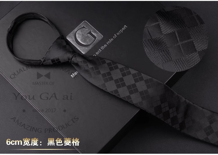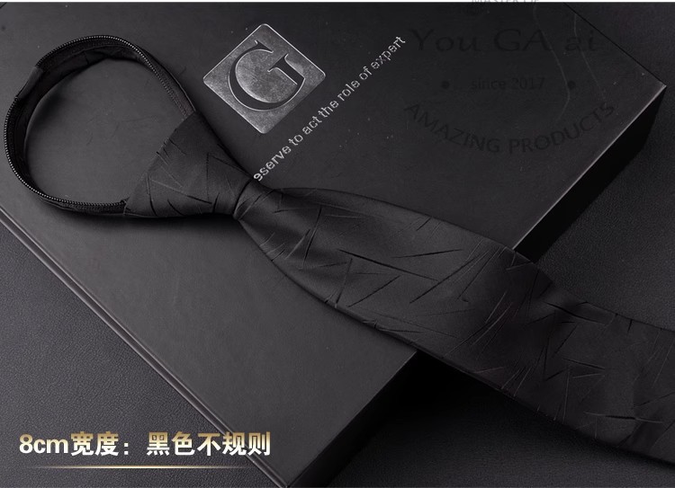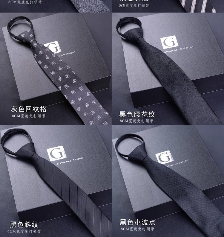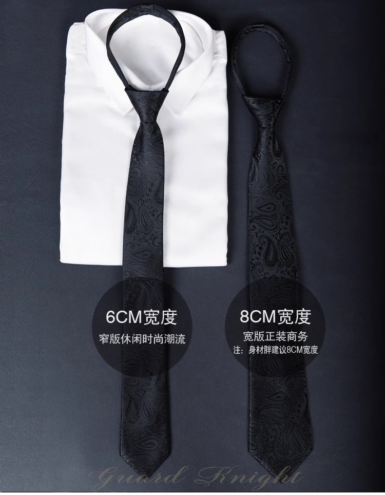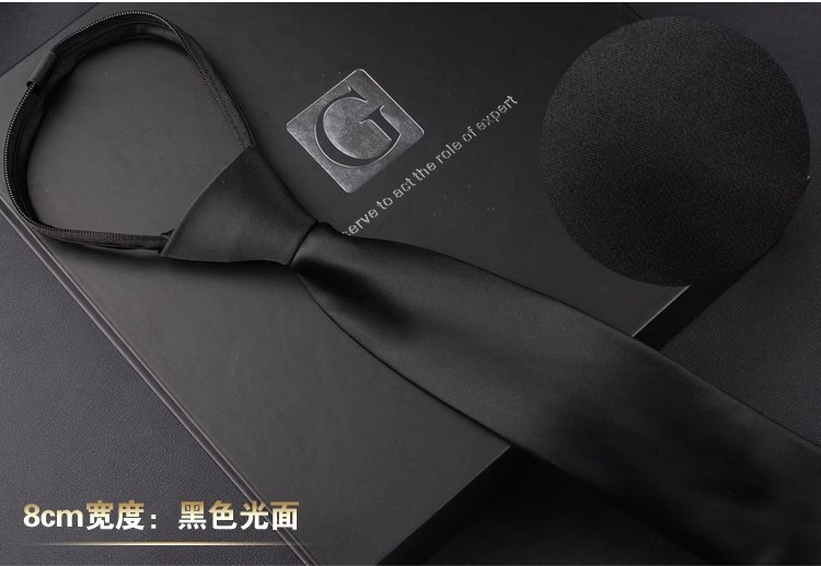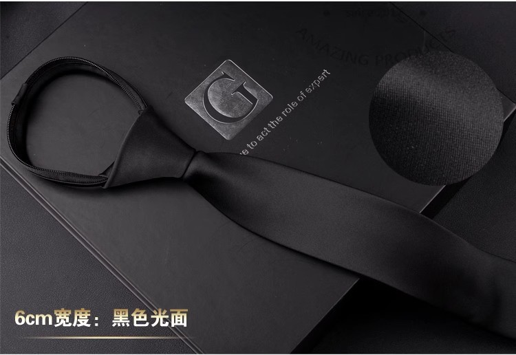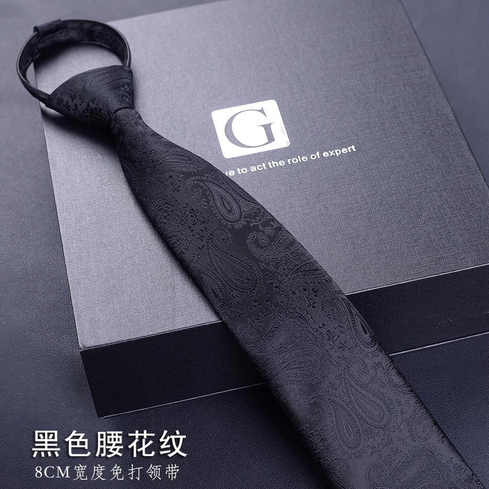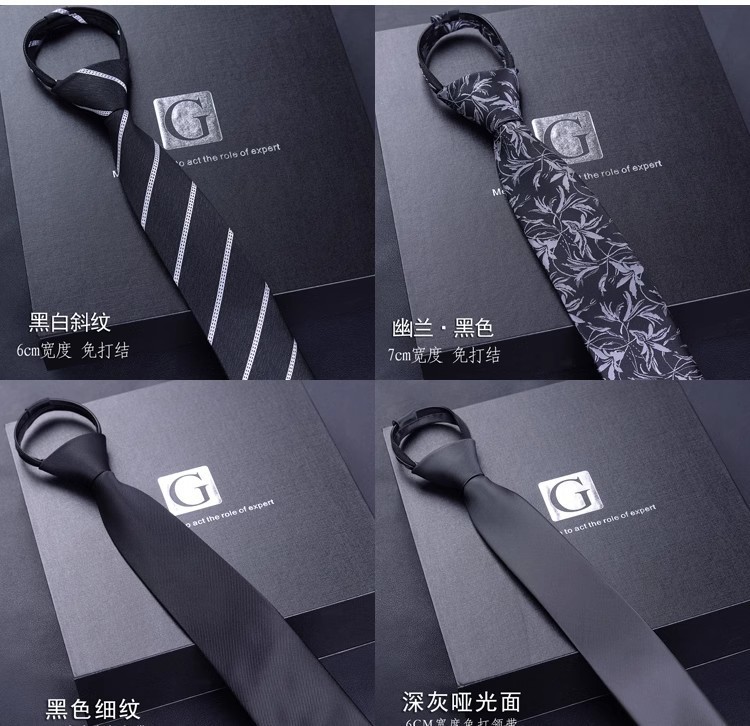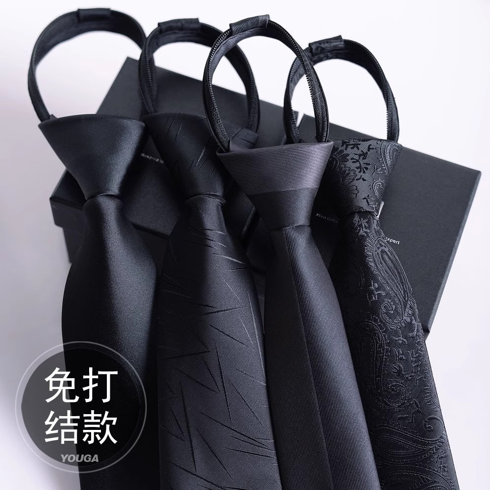 남성용 매듭없는 넥타이 검정색과 빨간색 결혼식 쉬운 당김 작업 학생 게으른 지퍼 솔리드 컬러 넥타이 남성 패션