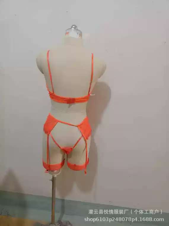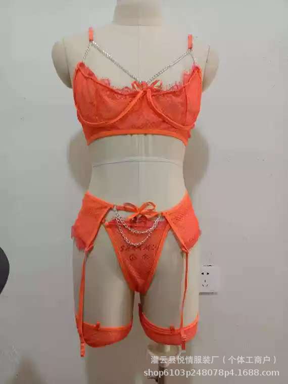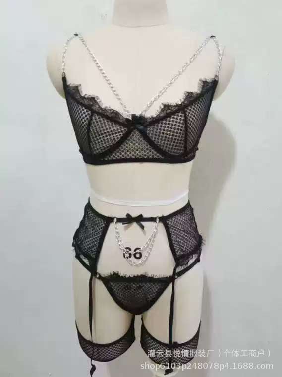 강철 반지가없는 국경 새로운 섹시한 속옷 그리드 스티칭 속눈썹 레이스 체인 나비 4 피스 세트