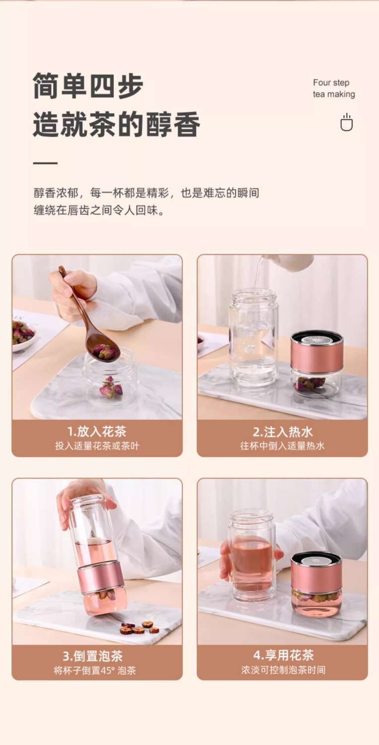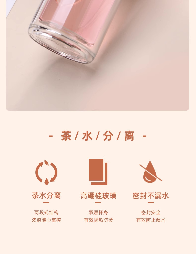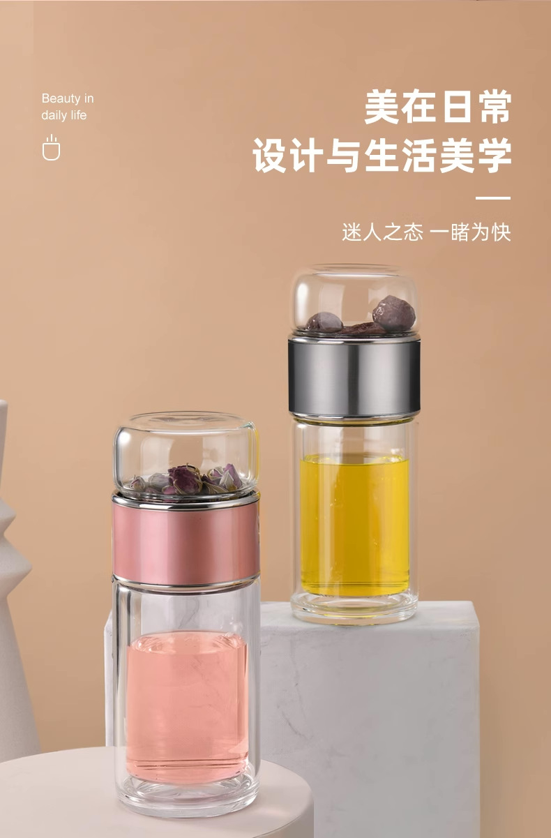 창조적 인 두꺼운 두 배 층 열 절연 차-물 분리 유리 휴대용 남성과 여성 학생 사무실 티 컵