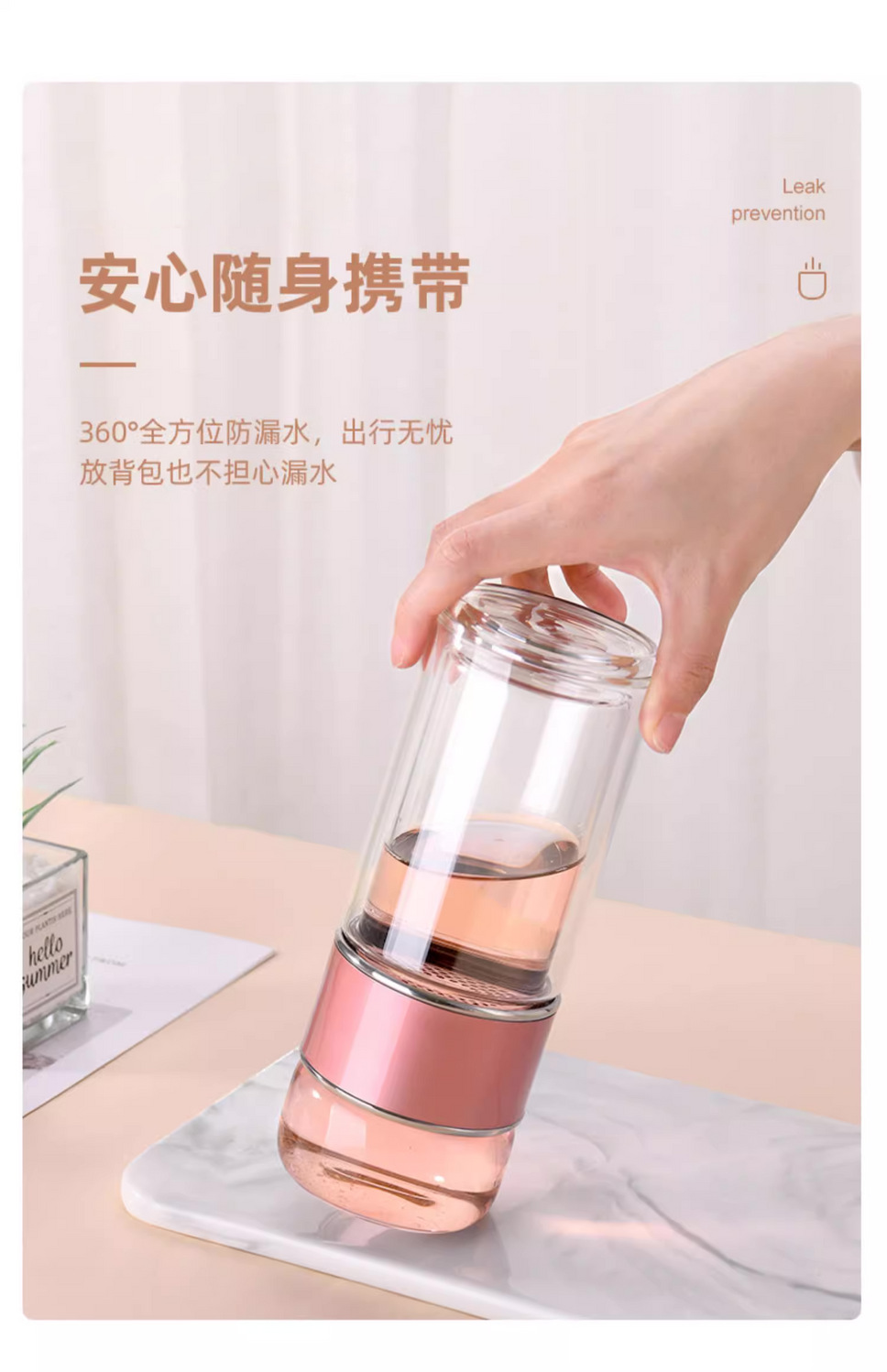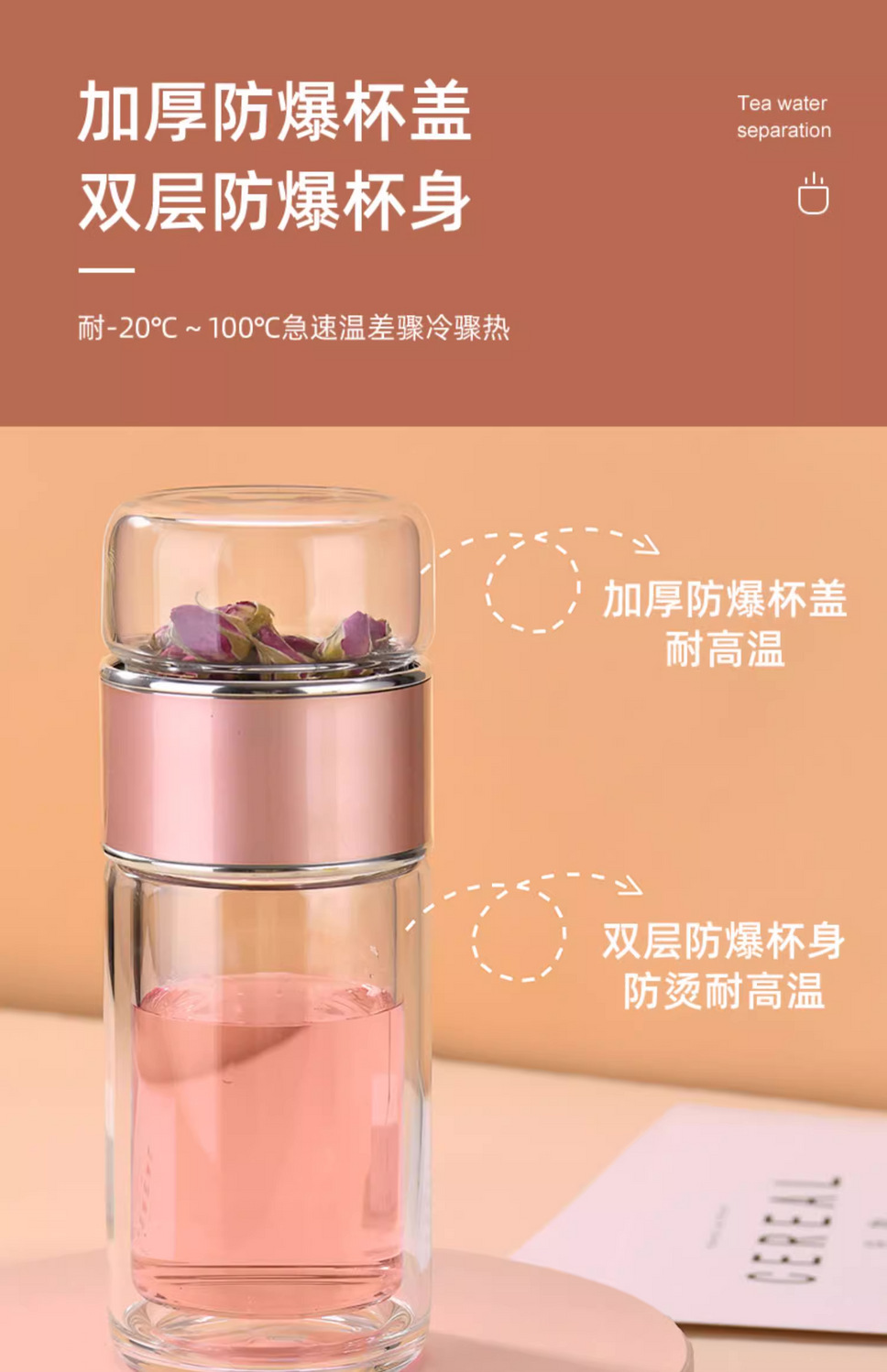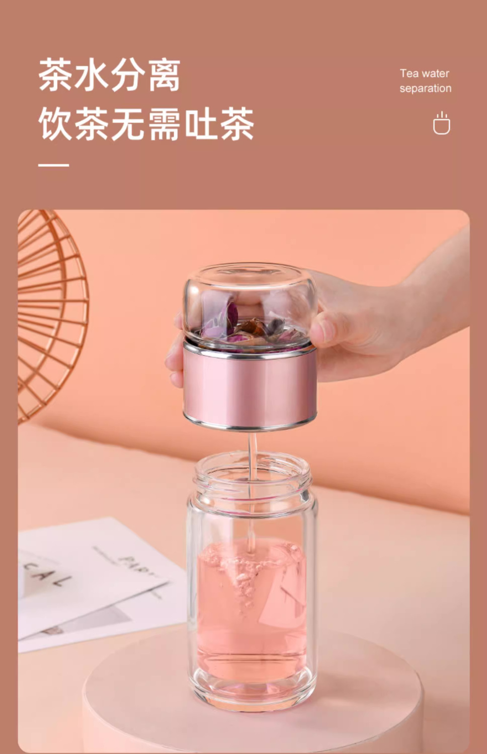 창조적 인 두꺼운 두 배 층 열 절연 차-물 분리 유리 휴대용 남성과 여성 학생 사무실 티 컵