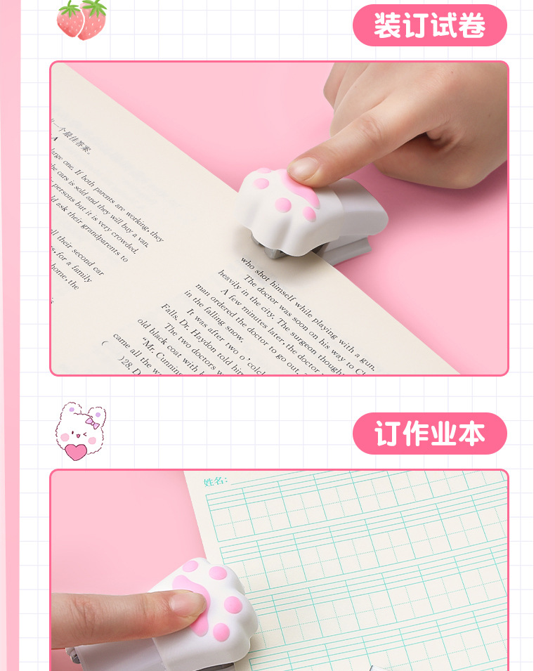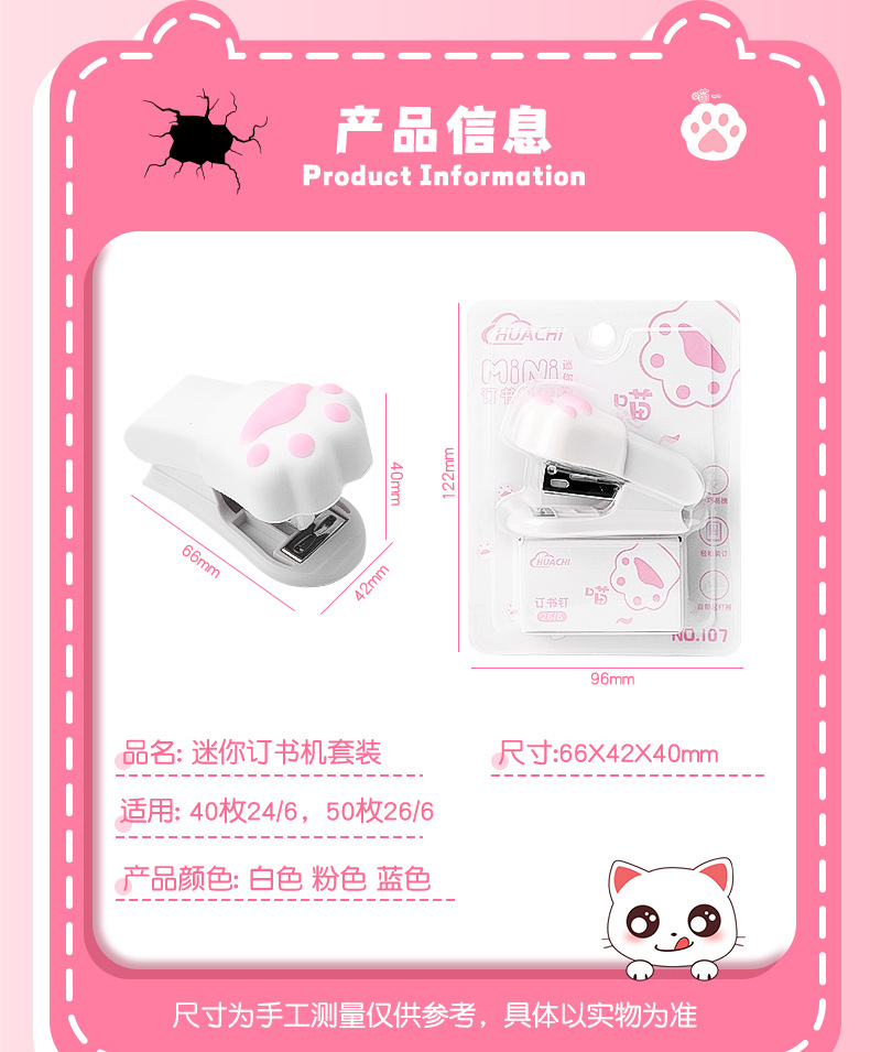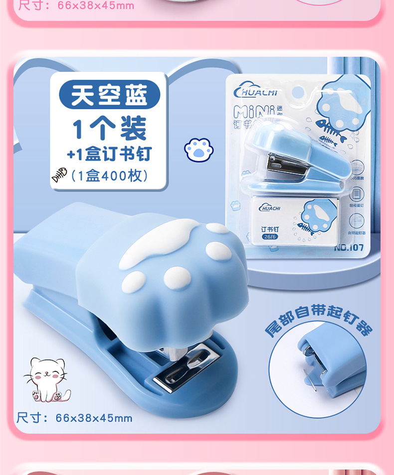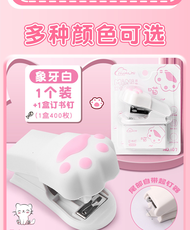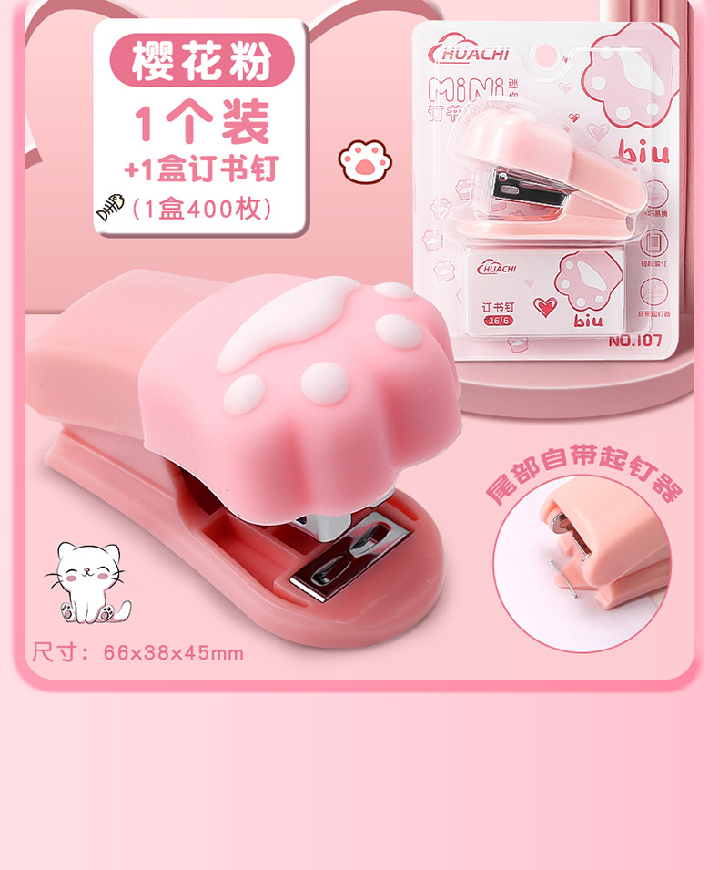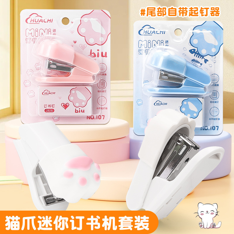 고양이 발톱 모양 스테이플러 학생 시험지 정리 바인더 학습 사무용품 휴대용 미니 스테이플러