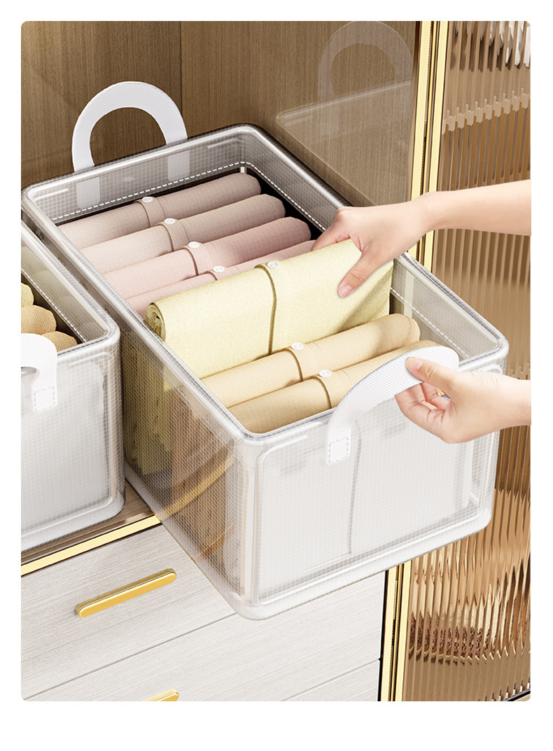 뚜껑 가정용 옷장 계층화 된 보관 상자 마감 상자 대형 접이식 강철 프레임 보관 바구니 도매 옷 보관 상자