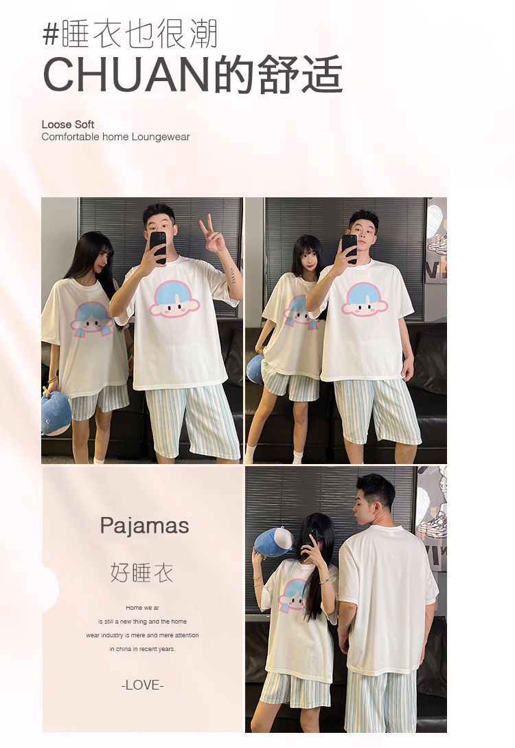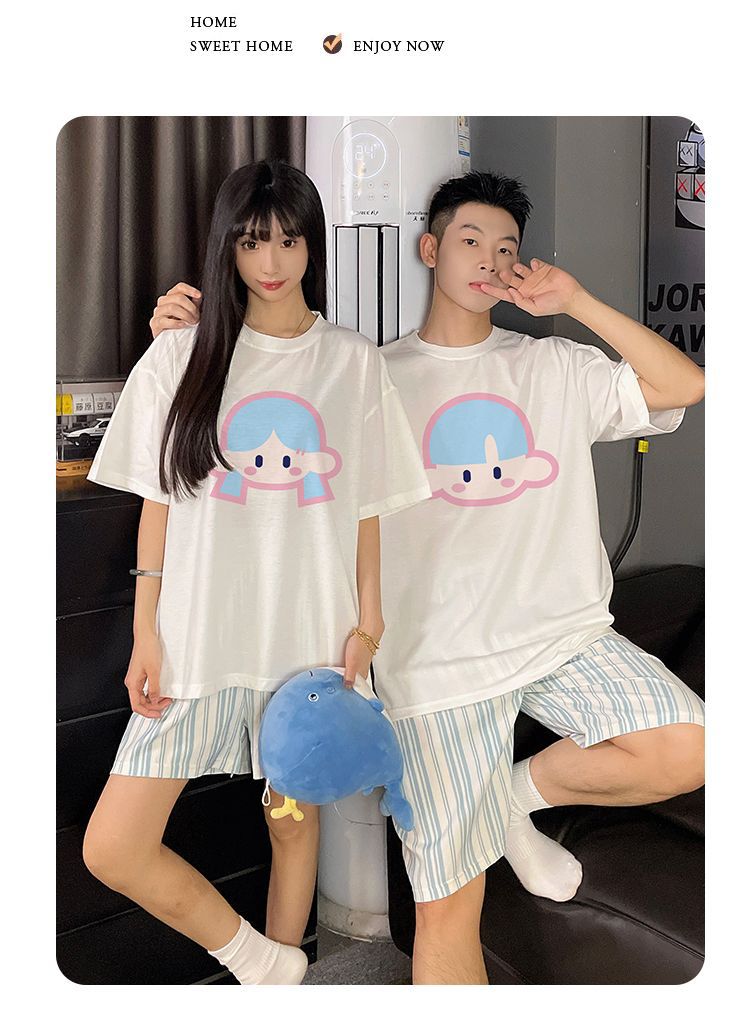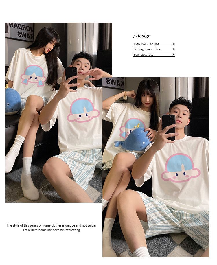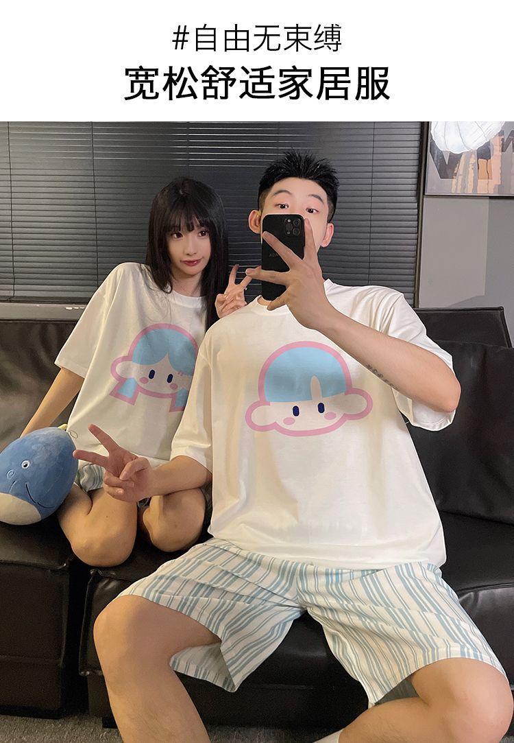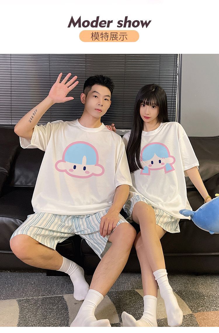 여성을위한 제조 업체 도매 잠옷 2025 새로운 커플 인쇄 만화 귀여운 반팔 반바지는 집 밖에서 착용할 수 있습니다