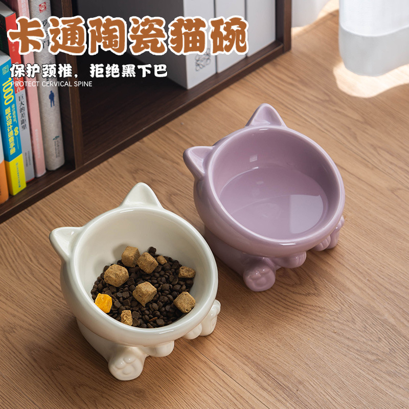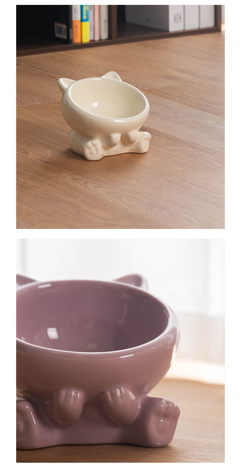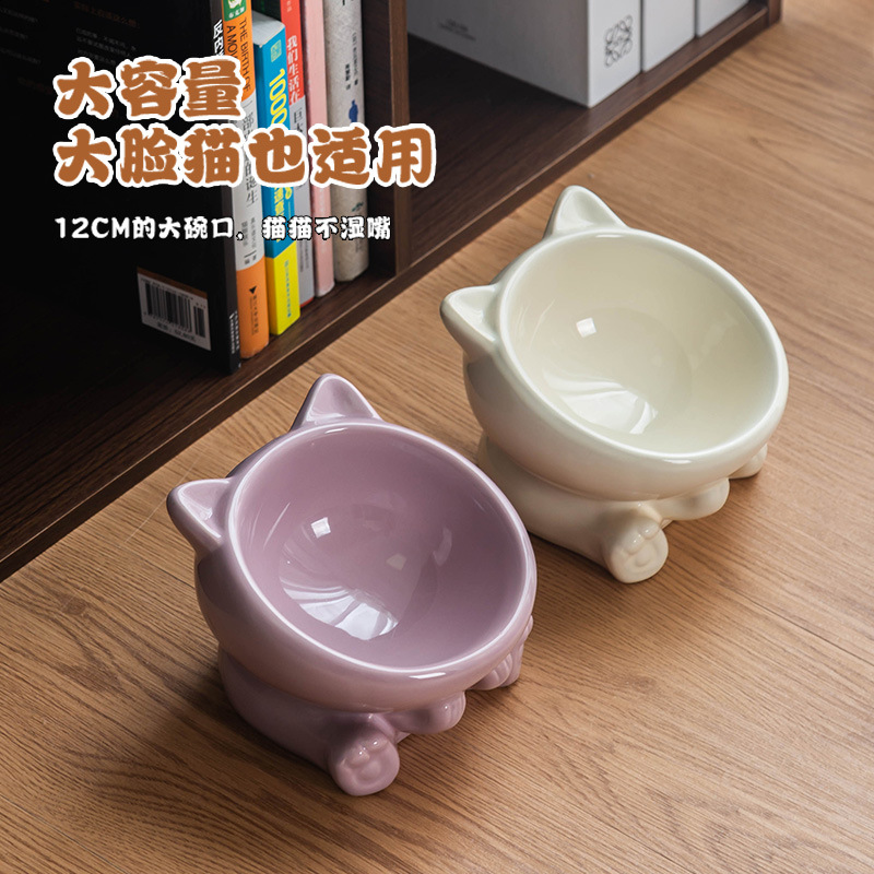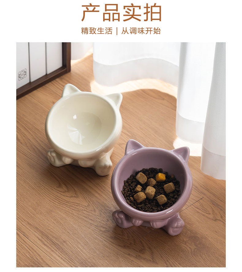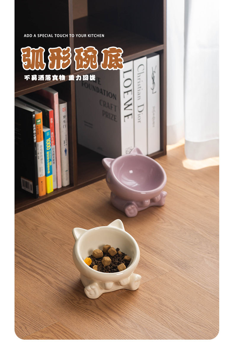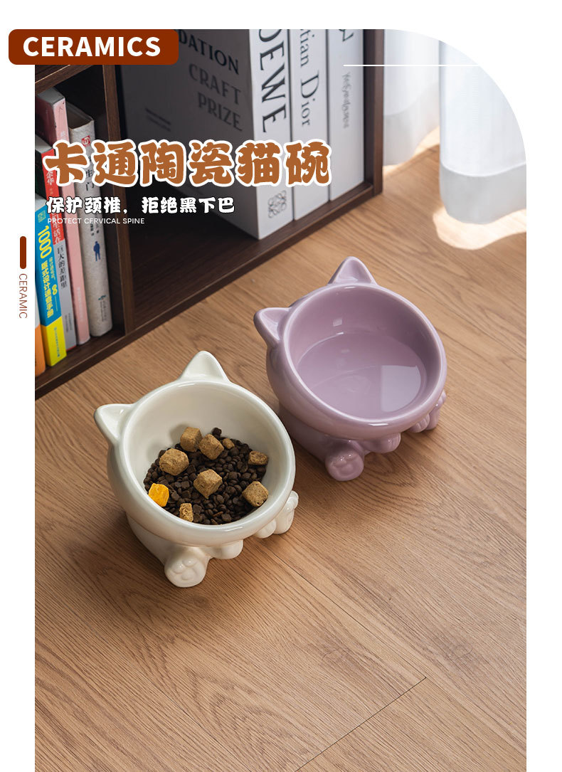 고양이 그릇 세라믹 고양이 음식 분지 애완 동물 용품 고양이 그릇 마시는 물 그릇 비스듬한 고양이 음식 쌀 높은 발 목 보호