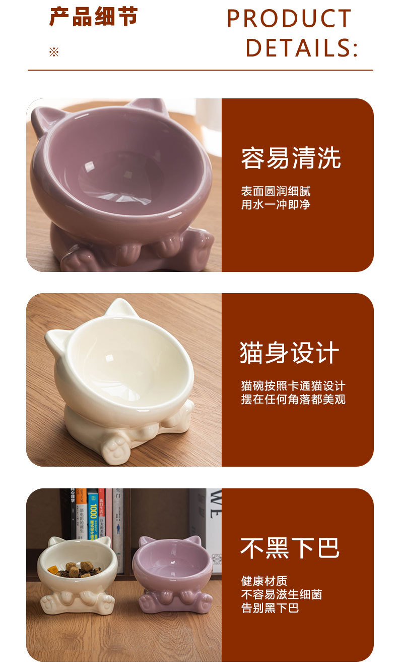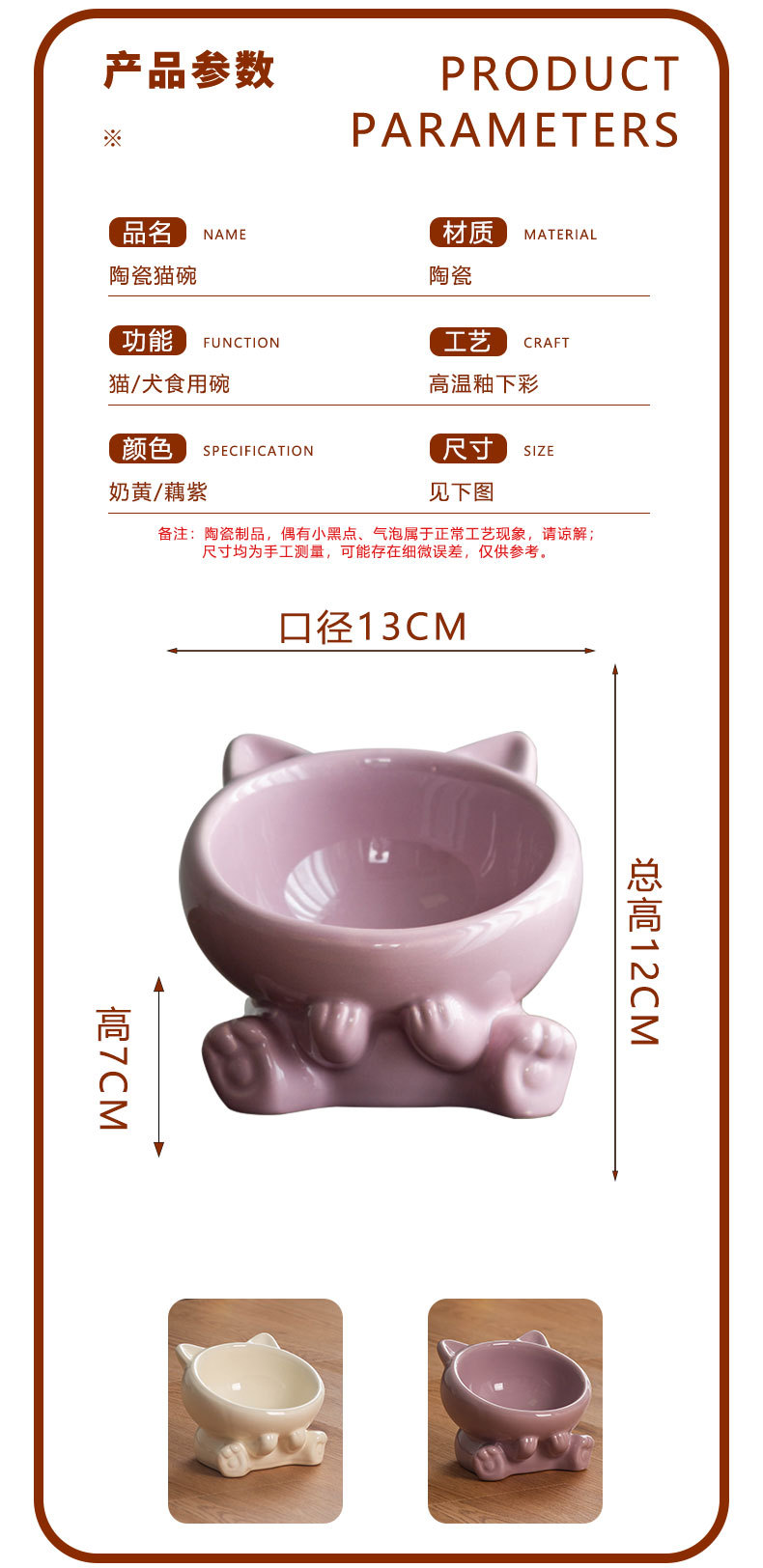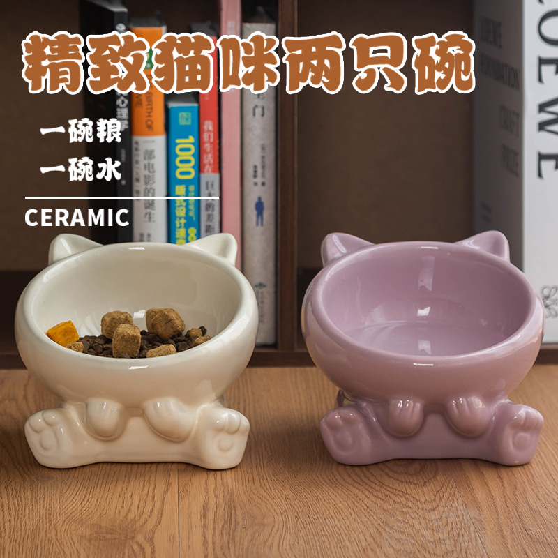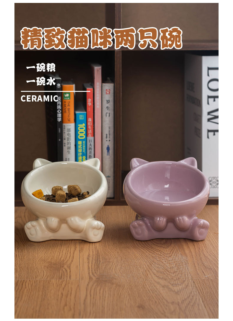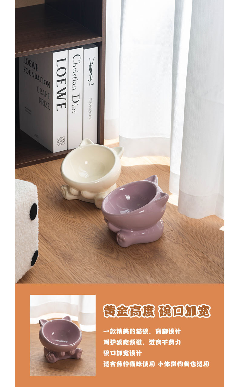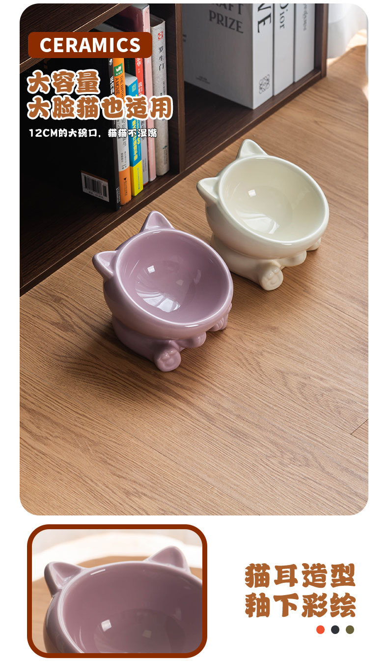 고양이 그릇 세라믹 고양이 음식 분지 애완 동물 용품 고양이 그릇 마시는 물 그릇 비스듬한 고양이 음식 쌀 높은 발 목 보호