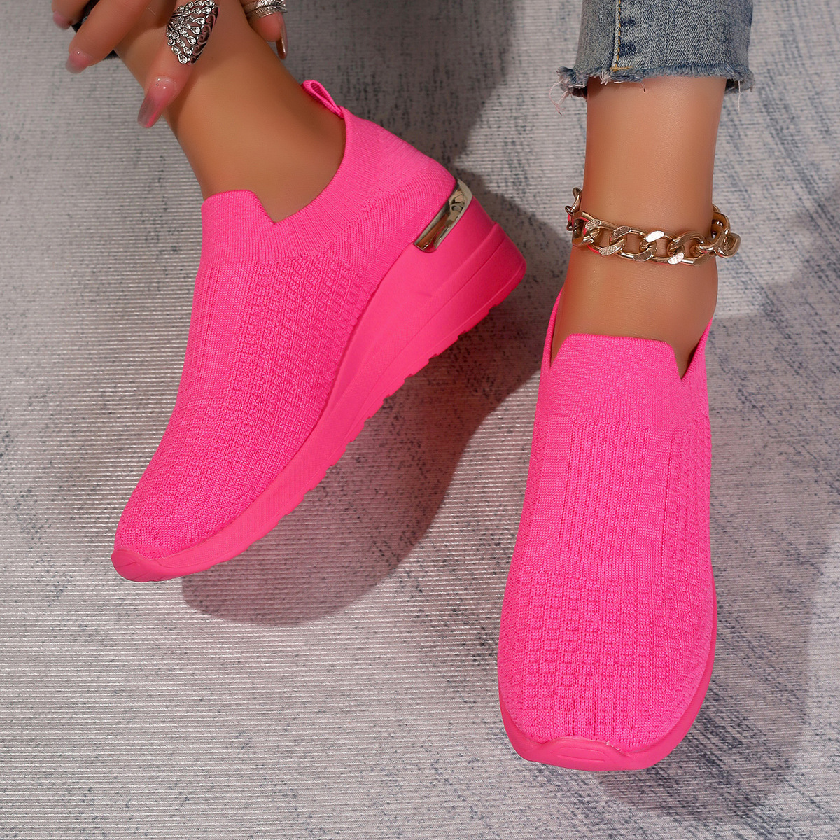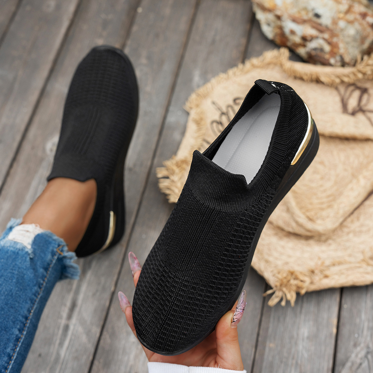 여성용 운동화 2025 새로운 메쉬 플라이 짠 신발 통기성, 편안하고 매치하기 쉬운 대외 무역 신발 여성 캐주얼 신발 운동화