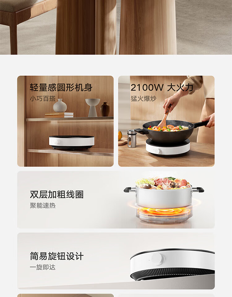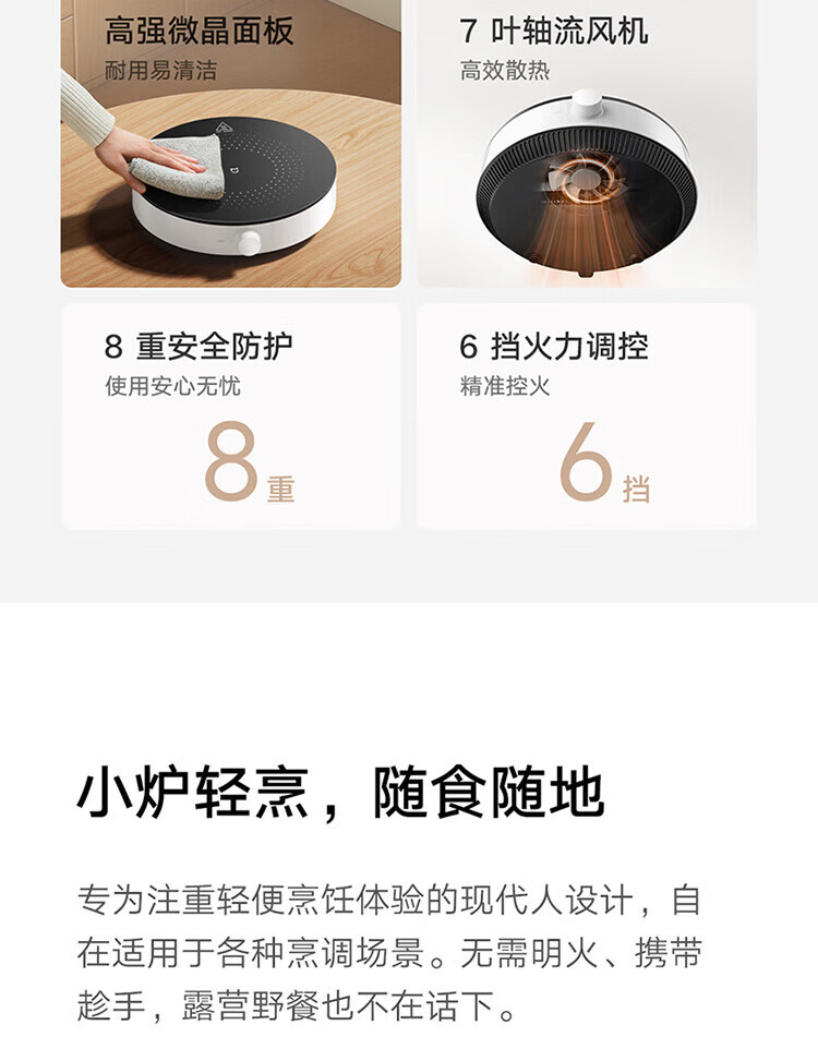 샤오미 가전 인덕션 쿠커 N1 고출력 튀김, 찜, 볶음 6단 온도 조절 고온 보호 가정용 인덕션 쿠커
