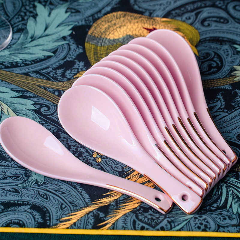 세라믹 수프 스푼 작은 숟가락 숟가락 긴 손잡이 큰 숟가락 세라믹 젓가락 가정용 미끄럼 방지 곰팡이 diy 옵션 도매