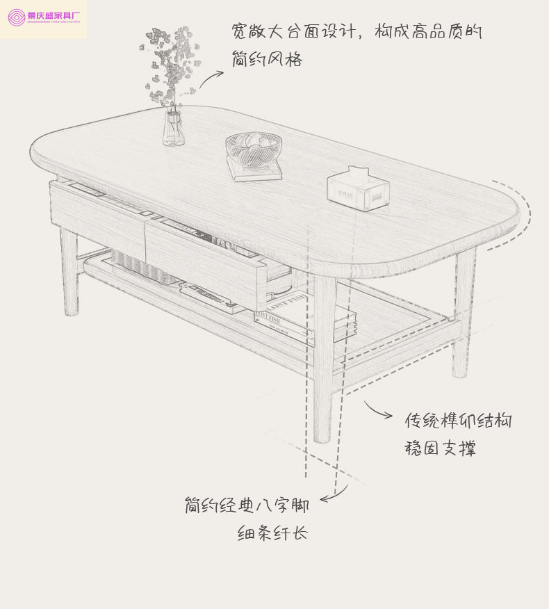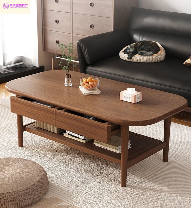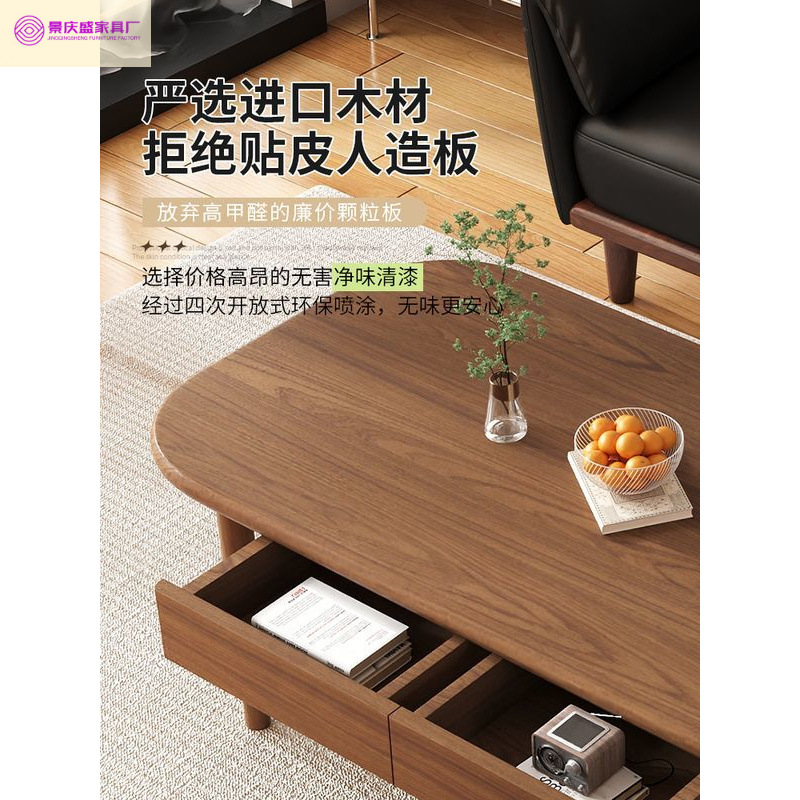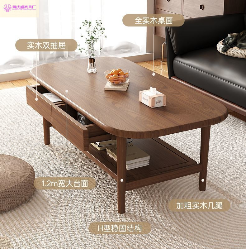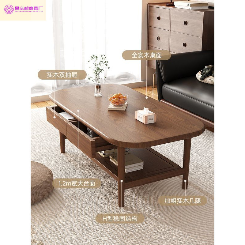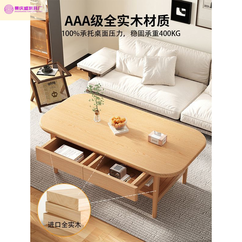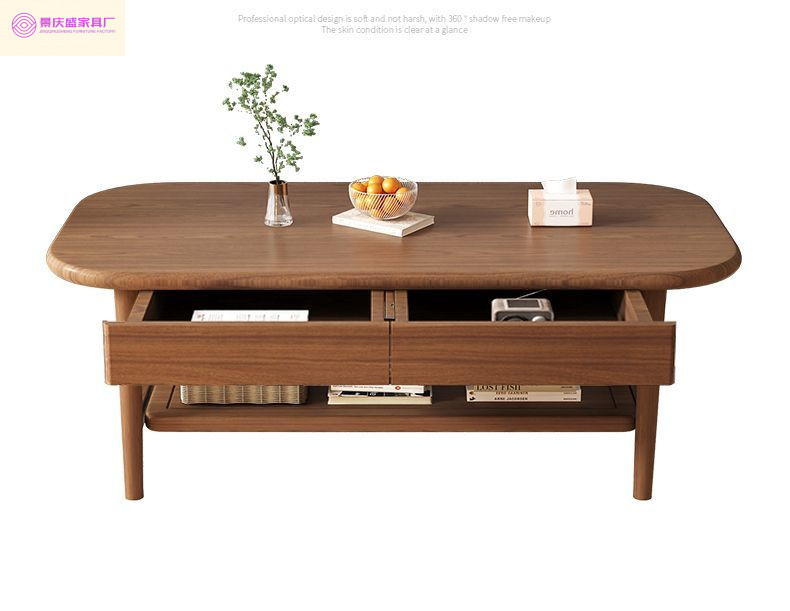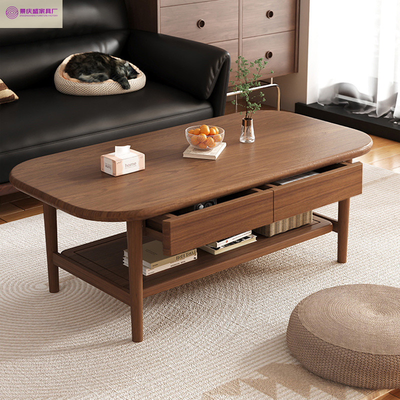 거실 홈 티 테이블 북유럽 스타일 전체 단단한 나무 커피 테이블 수납 낮은 테이블 작은 아파트 간단한 서랍이있는 더블 레이어 커피 테이블