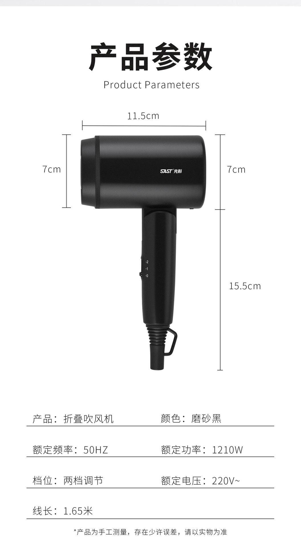 1210W 접이식 헤어드라이어(매트블랙)