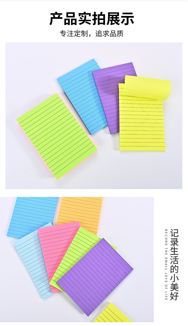 점성 라이닝 노트 노트 학교 용품 라인이있는 포스트잇 노트를 라이닝하는 자체 접착 성 대형 포스트잇 노트