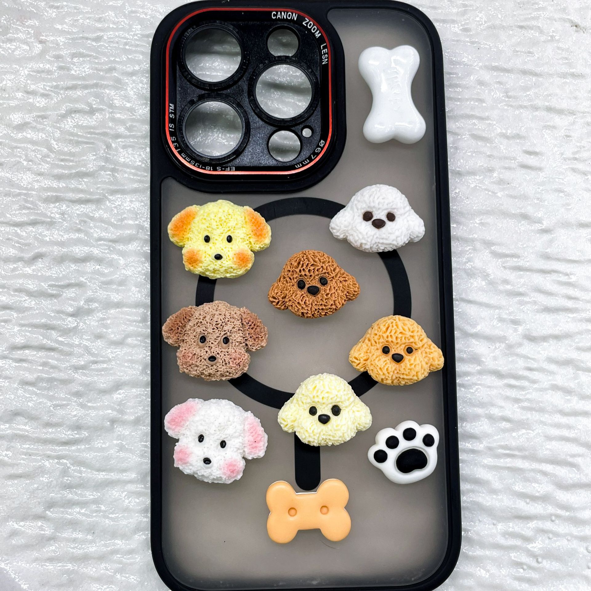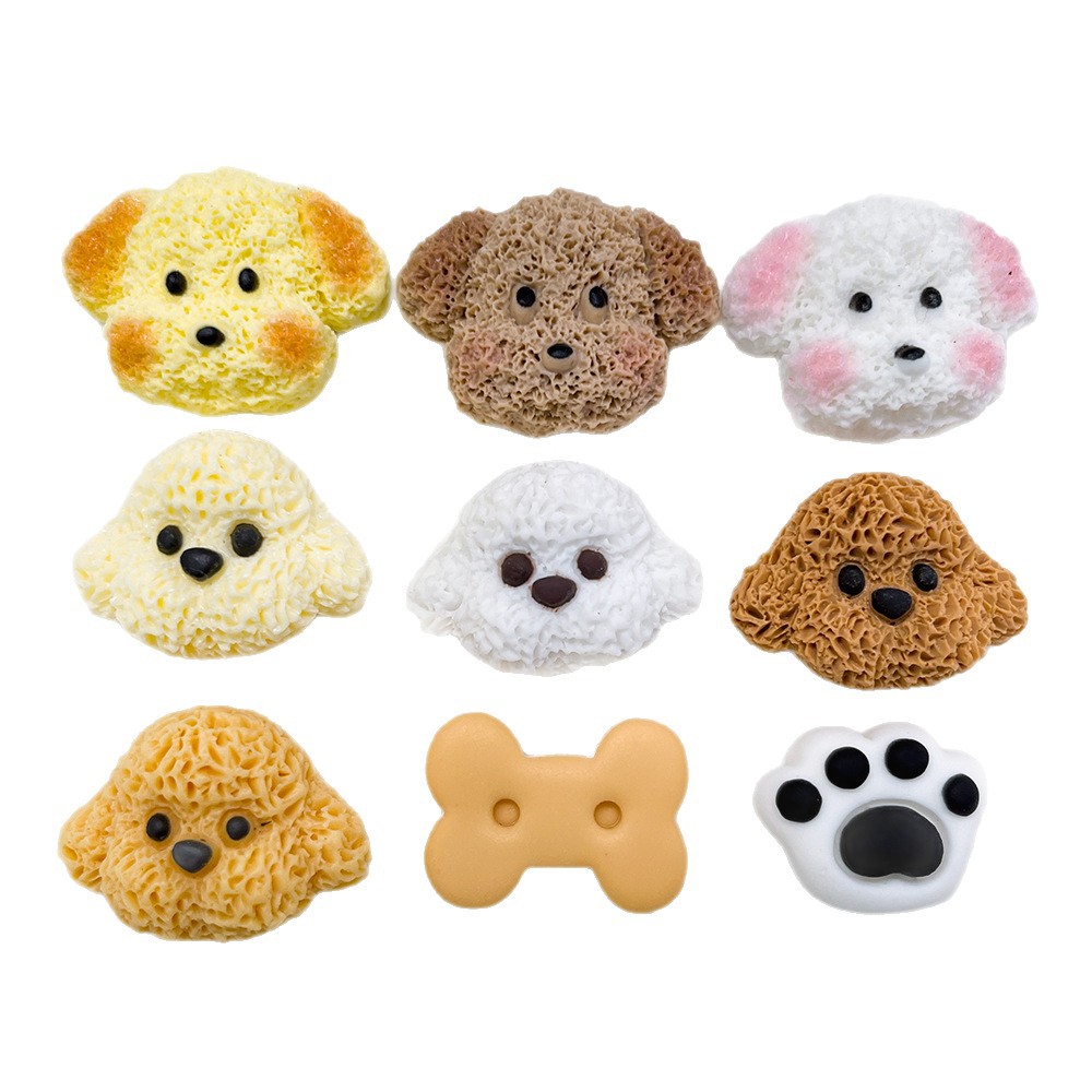 시뮬레이션 플러시 만화 강아지 머리 수지 액세서리 diy 크림 접착제 휴대 전화 케이스 신발 버클 머리핀 냉장고 자석 재료